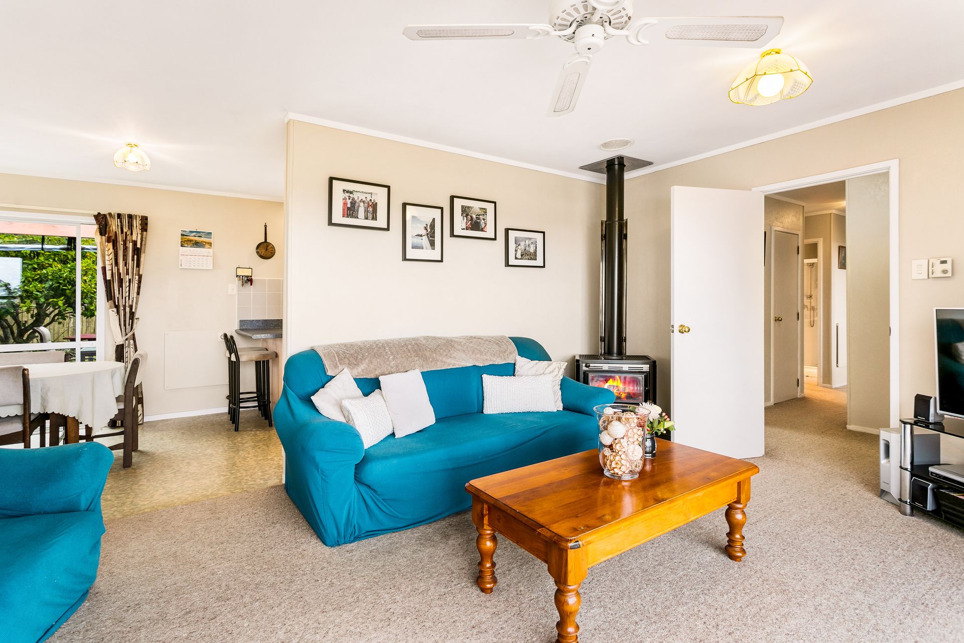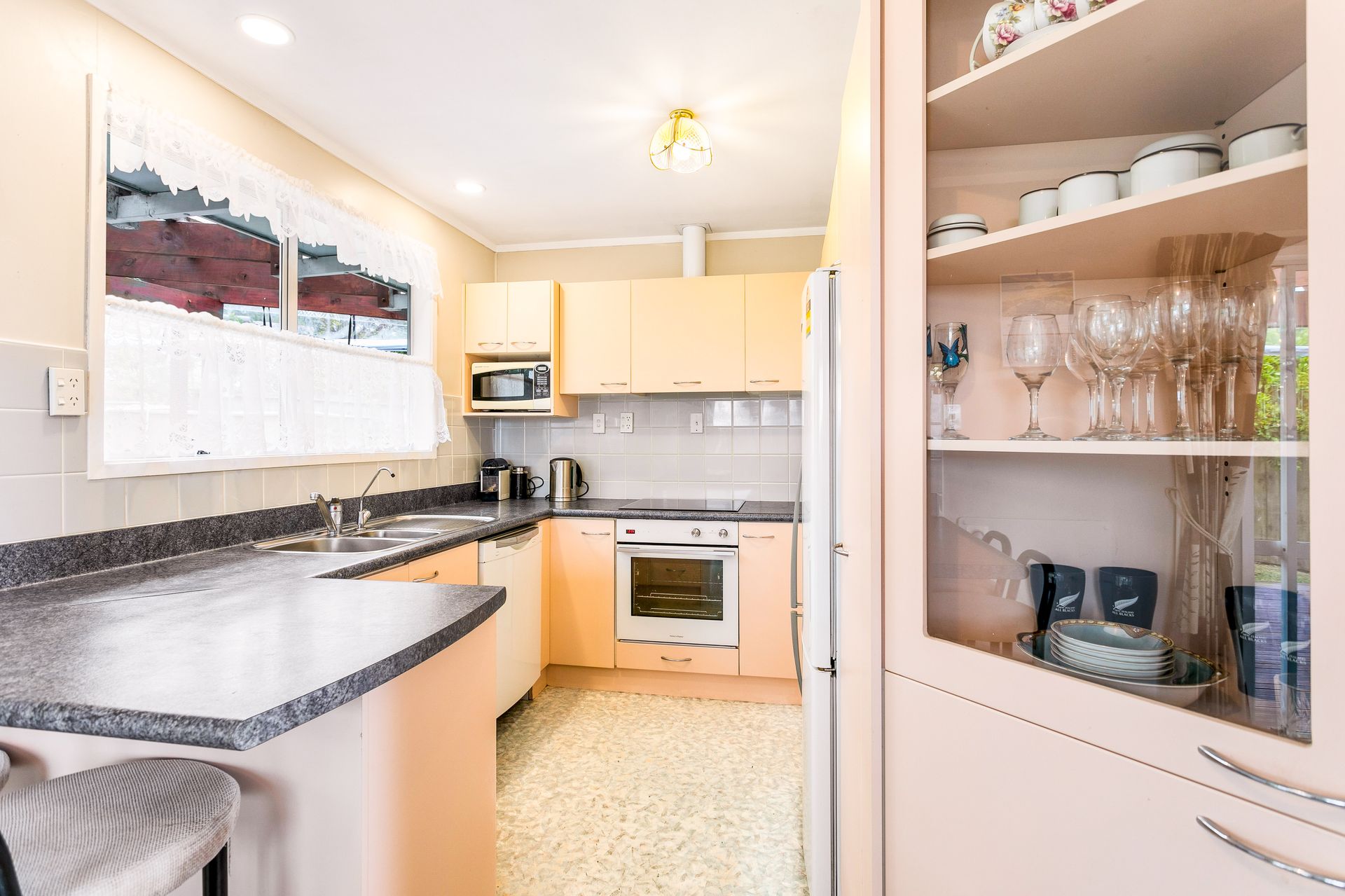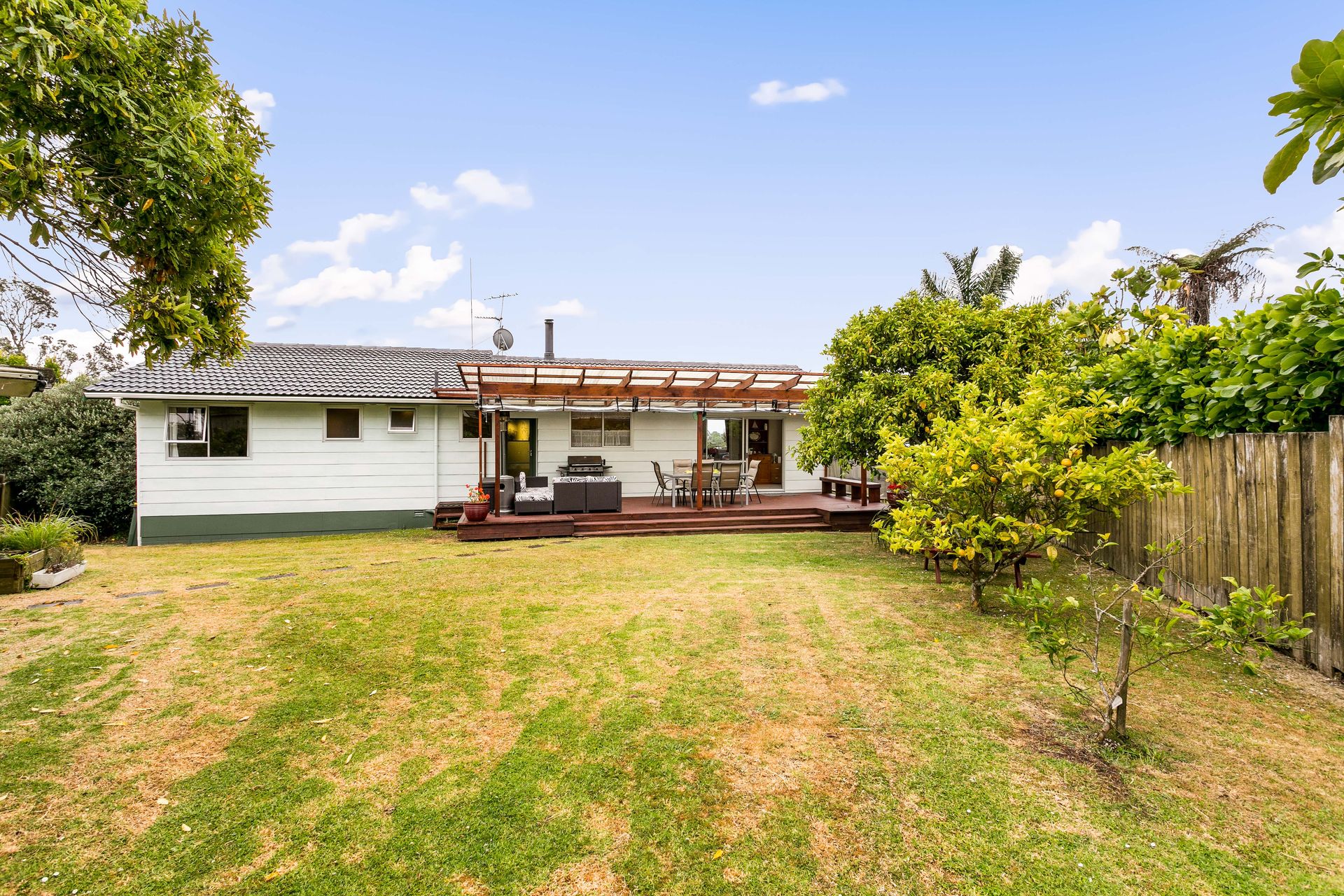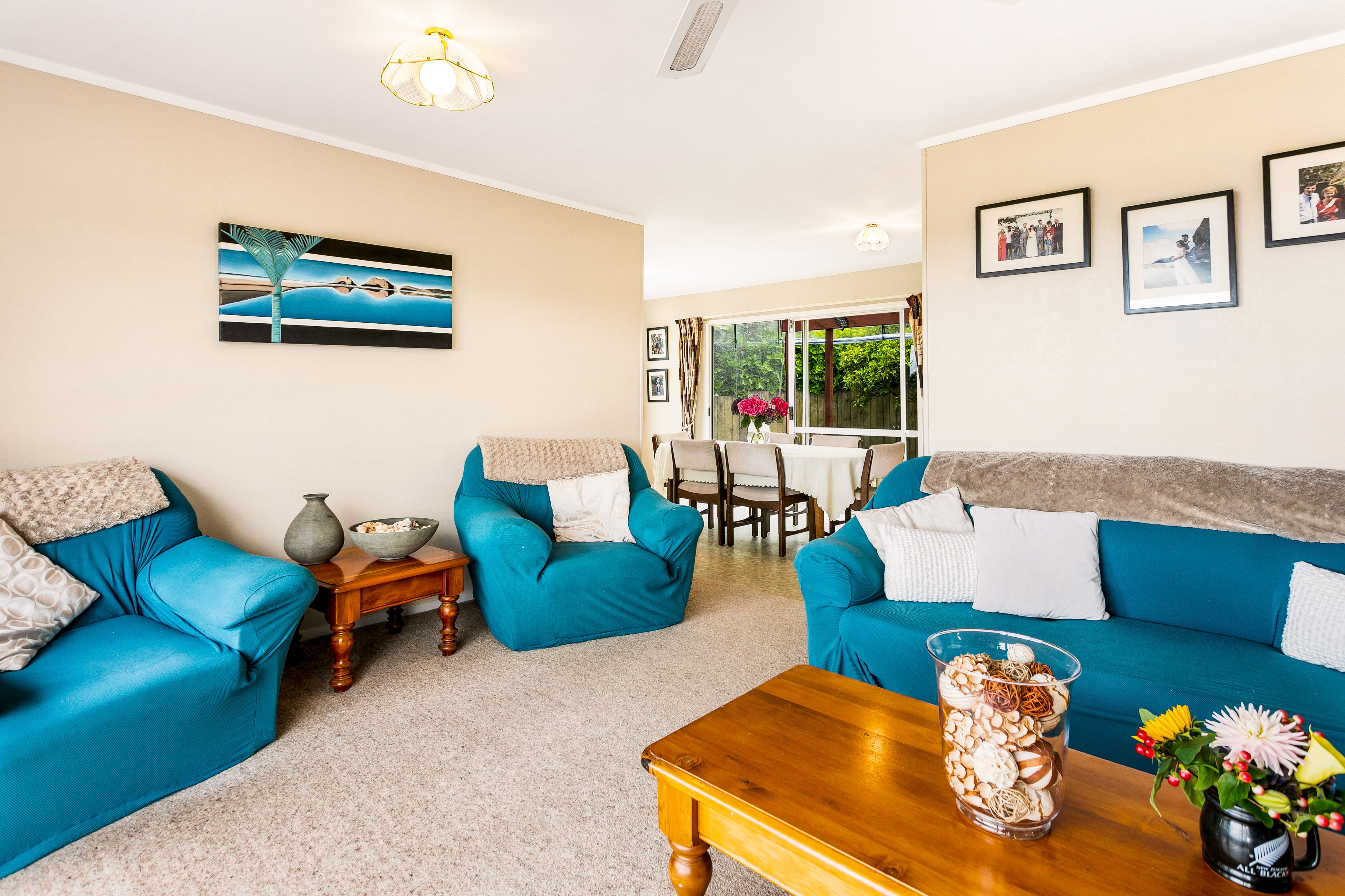 Seamless indoor outdoor flow to an ample size deck that is level with the grass giving a perfect flow to entertain on. There's even cafe drop down blinds to extend your outside living over the cooler months.