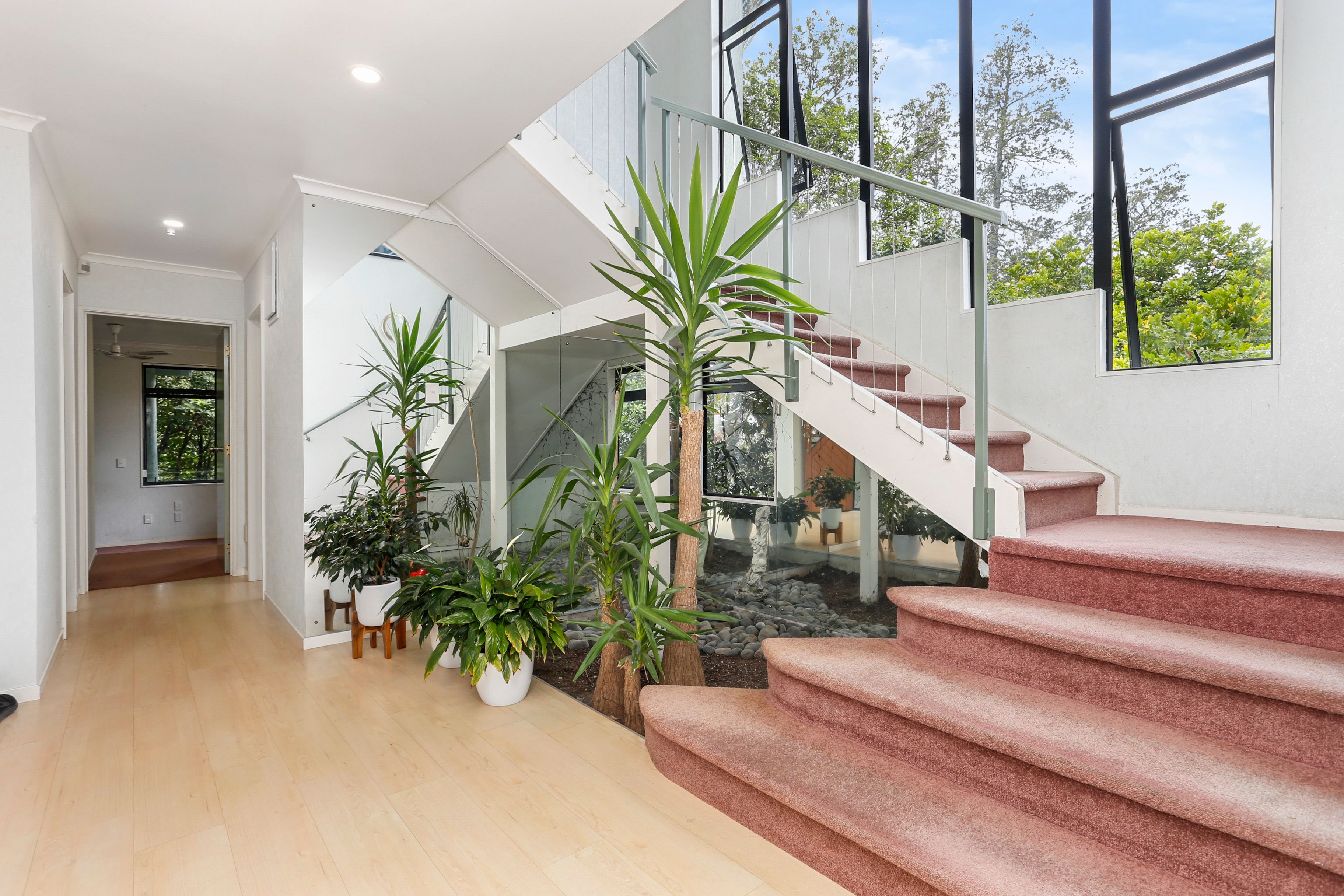 Located on a premium site, amongst grand old kauris and boasting an abundance of sunshine and privacy stands a four-five bedroom home of pure potential. Enter the home over a walkway that once would have been a gorgeous water feature with lilies and goldfish, and discover a foyer with internal gardens that will spark the imagination.