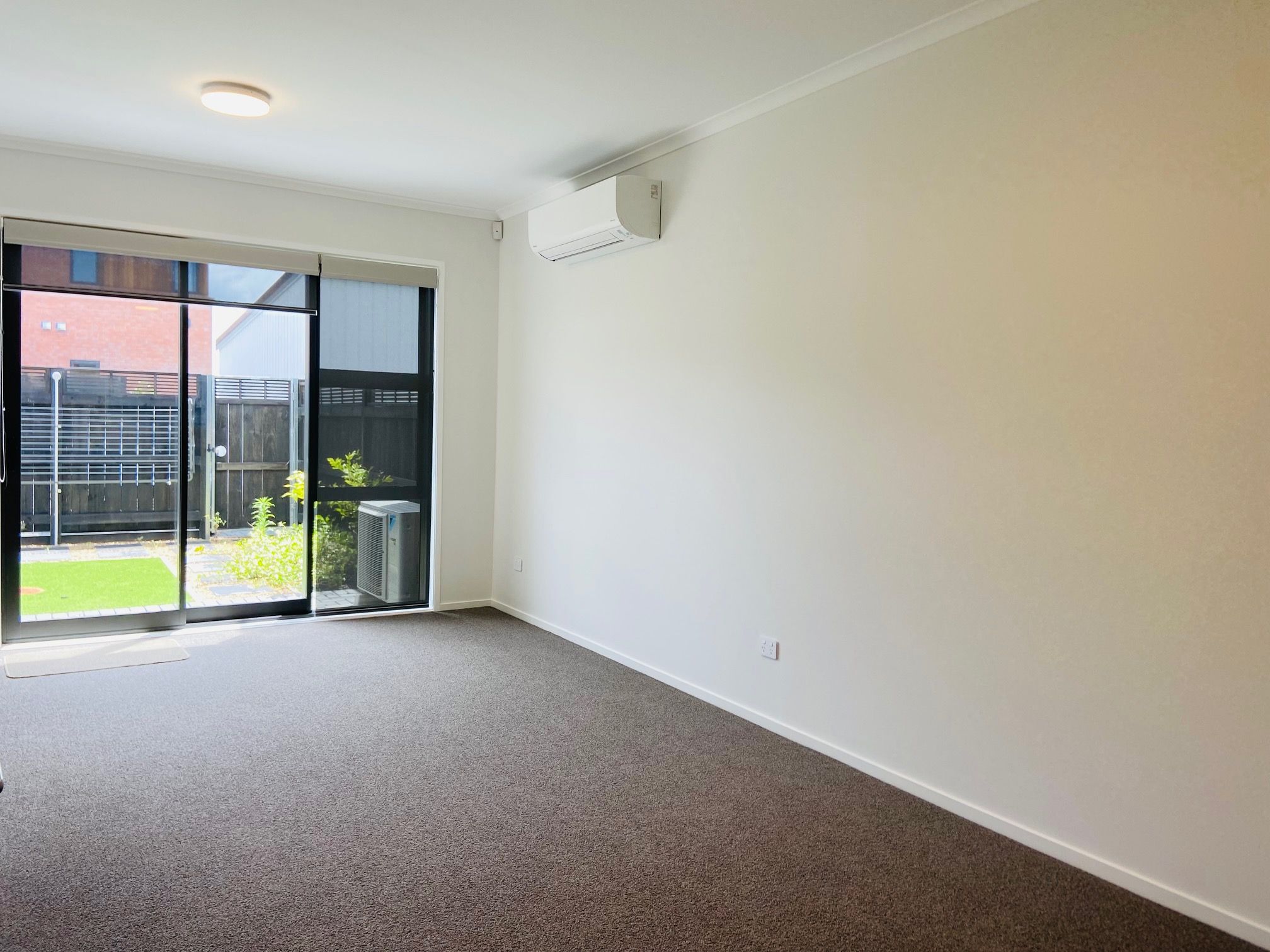 It has open plan kitchen/dining/living on the ground floor, with sliding door leading to a fully fence yard, adjacent to an allocated parking space, and two double bedrooms with a decent bathroom upstairs. Property is facilitated with double glaze, dish washer, heat pump, security alarm, and double shade roller blinds.