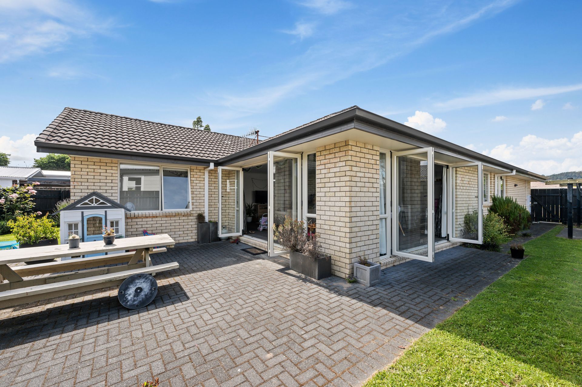 Put your feet up and enjoy life in this easy, one-level, brick and tile home in a handy location. Presenting a lovely light and modern interior with two sets of bifolds to bring the outdoors alive, a heat pump for winter warmth. Offering four double bedrooms, two bathrooms and open plan living - step out to the sunny patio which is a good size for alfresco family dining or entertaining. A double garage and a fully fenced section, walk to town and schools, bike to the forest. A modern, easy family home, rental or airbnb.