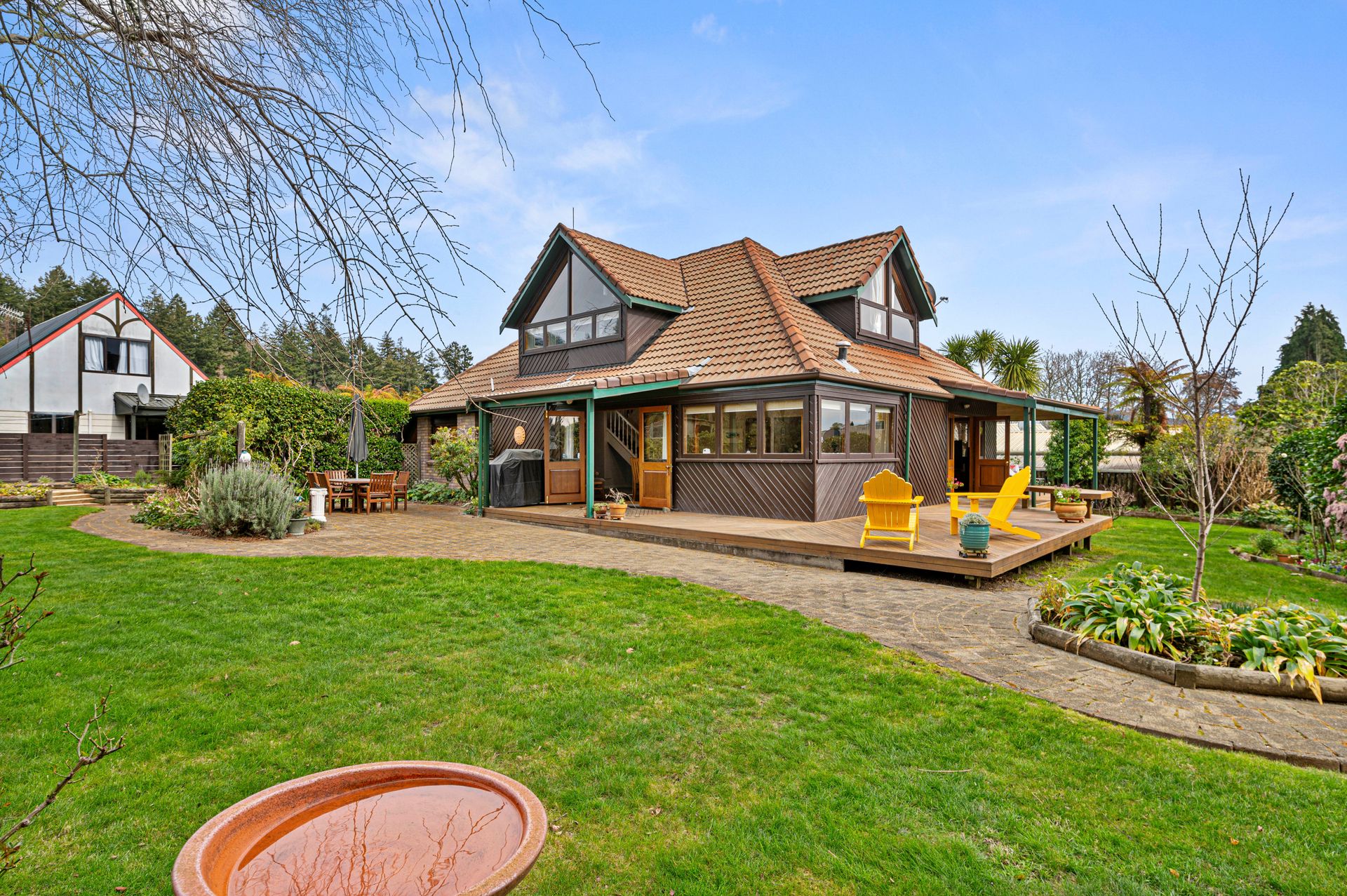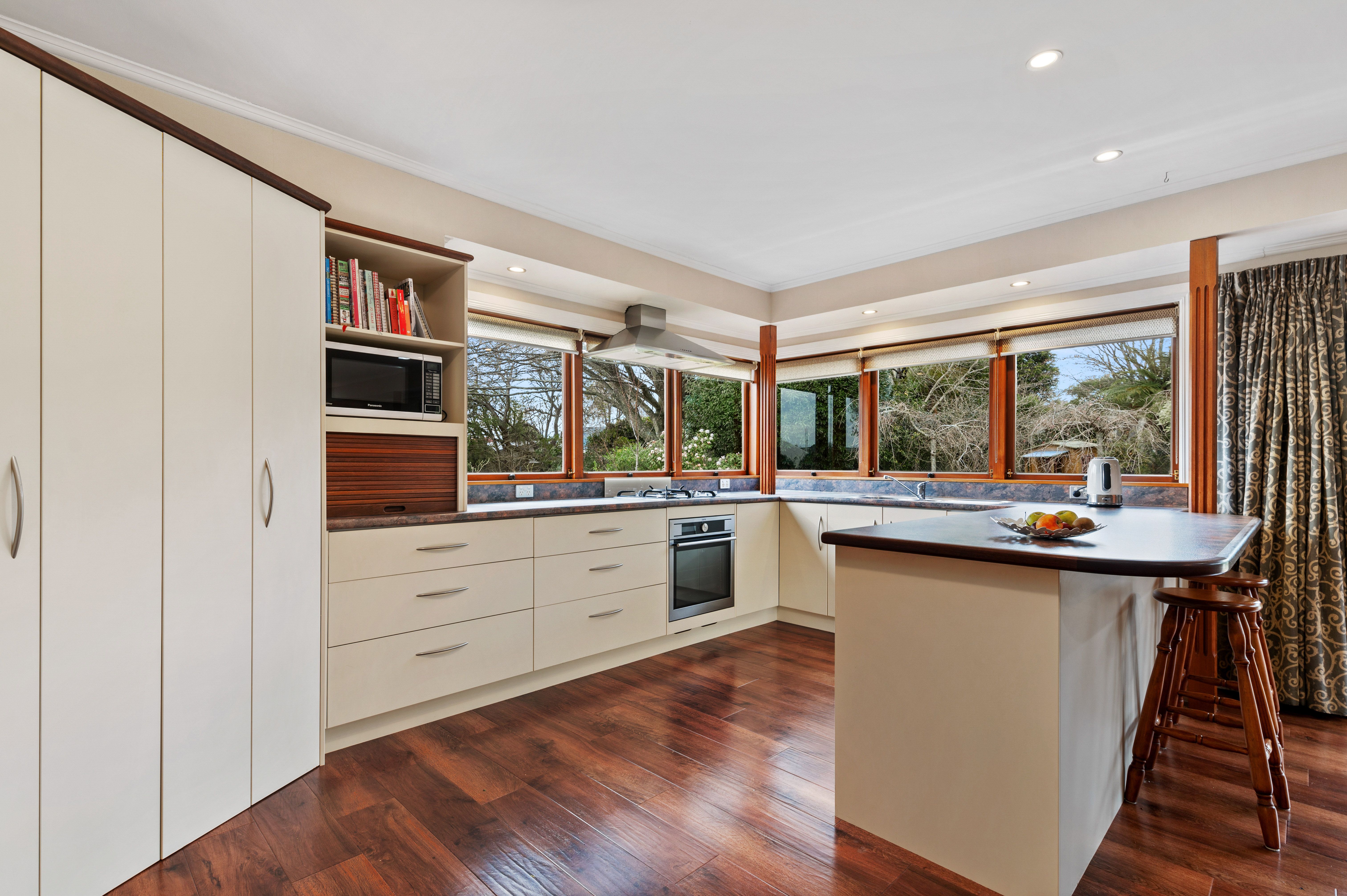 This stunning bespoke home deserves the heading "One Of Lynmores Finest". The impeccably maintained and modernised home is graced with wrap around decks overlooking a magical 1400m2 wonderland of lawn, gardens and stunning specimen trees. Every season paints a different picture with green, gold, and amber leaves, new bulbs raising their heads or the local Tuis and Kererus playing in the birdbath. The indoors opens to this vista with multiple french doors and a stunning wrap around kitchen window that makes the most of the morning easterly sun. Split over 3 levels this home caters perfectly to families from tiny tots through to teenagers - testament to this is the 15 years plus that the last two owners have lived here.