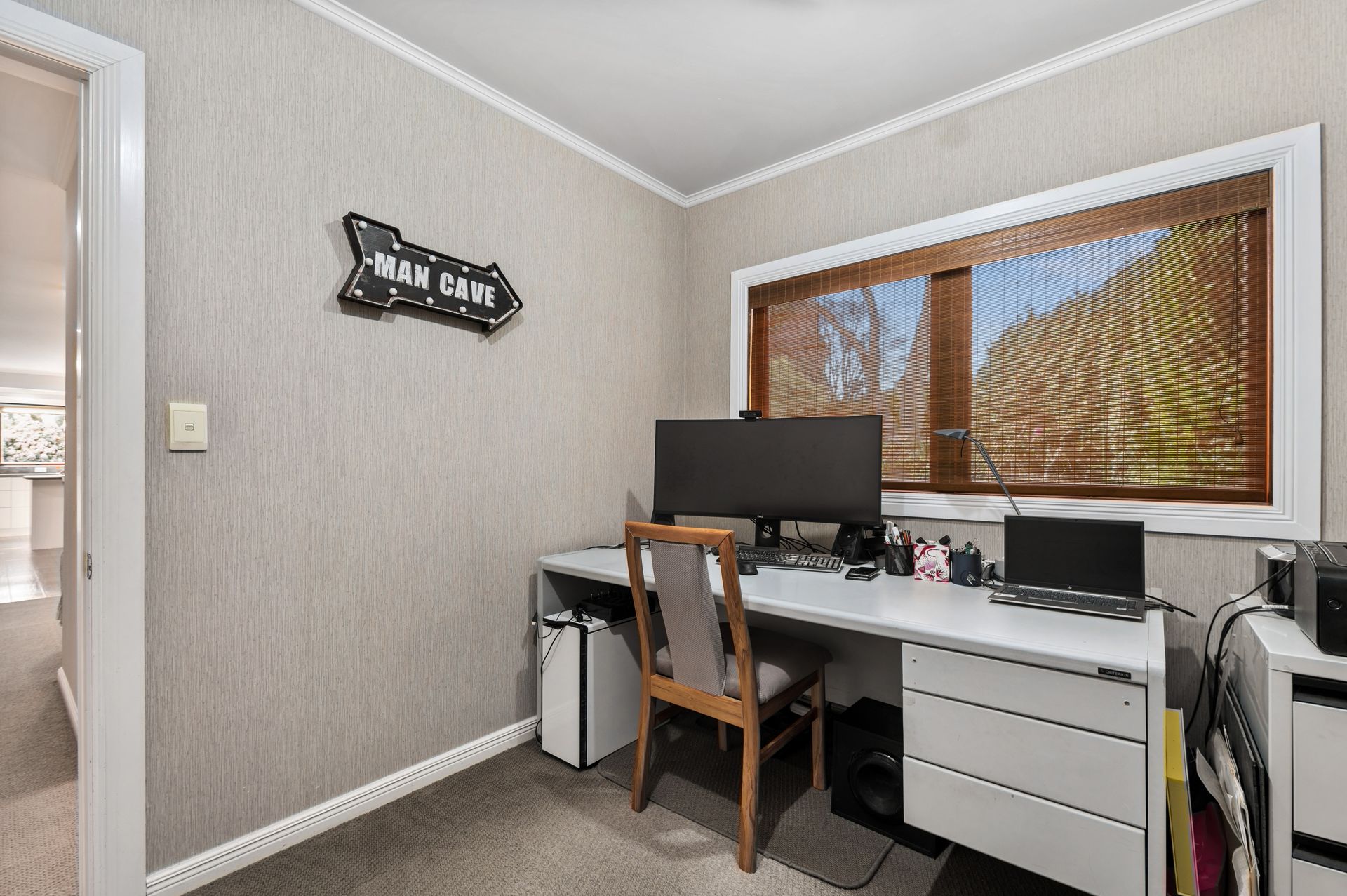 There are two well proportioned living spaces, both of which flow to the outdoors, 4 great size double bedrooms, 1 single bedroom, 2 bathrooms and ab office. There is a choice of heating, plenty of attic storage, internal access garaging and a tandem carport.