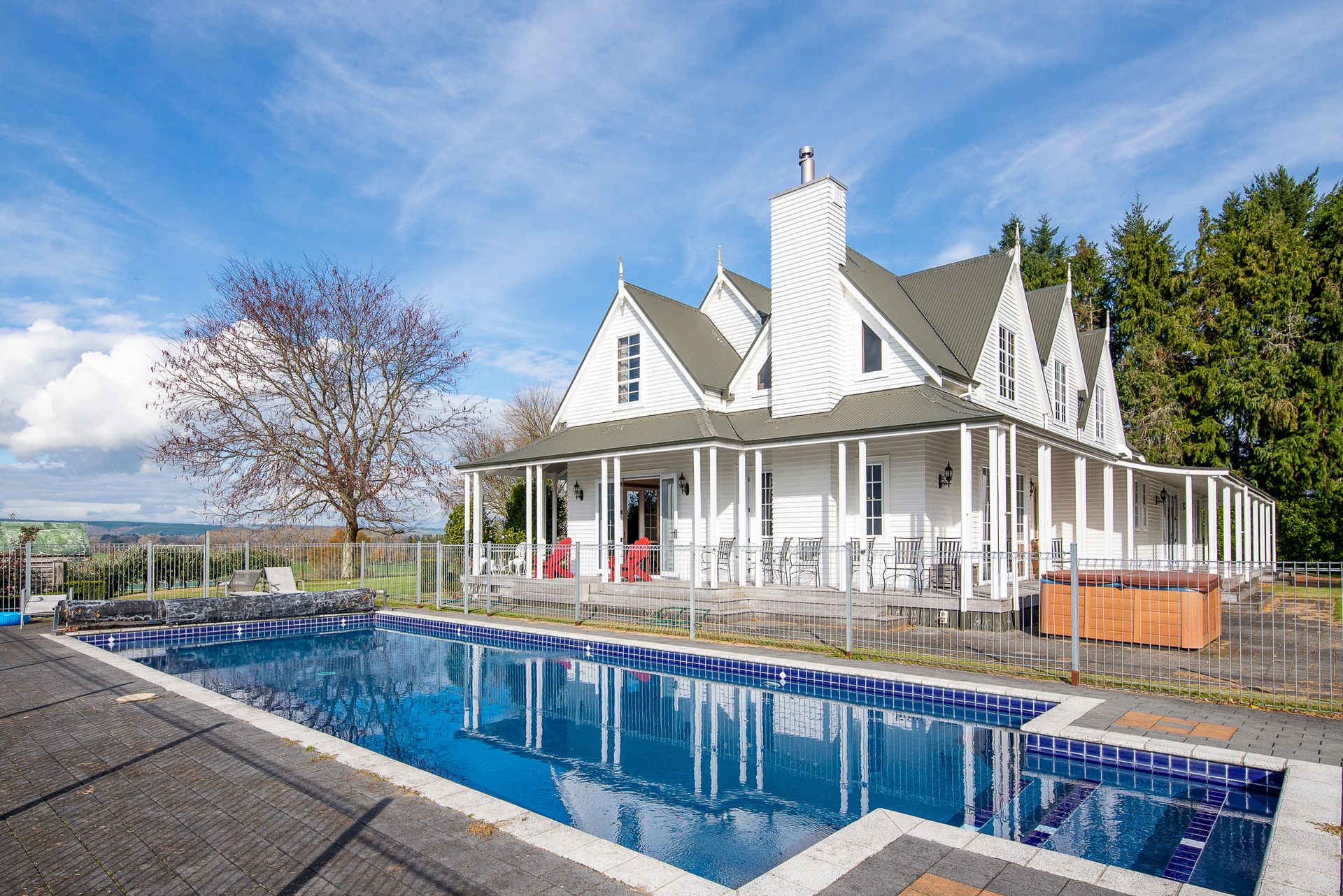 Overlooking the pastoral country-scape of Reporoa this impressive colonial inspired home outshines for quality, character and grandeur.