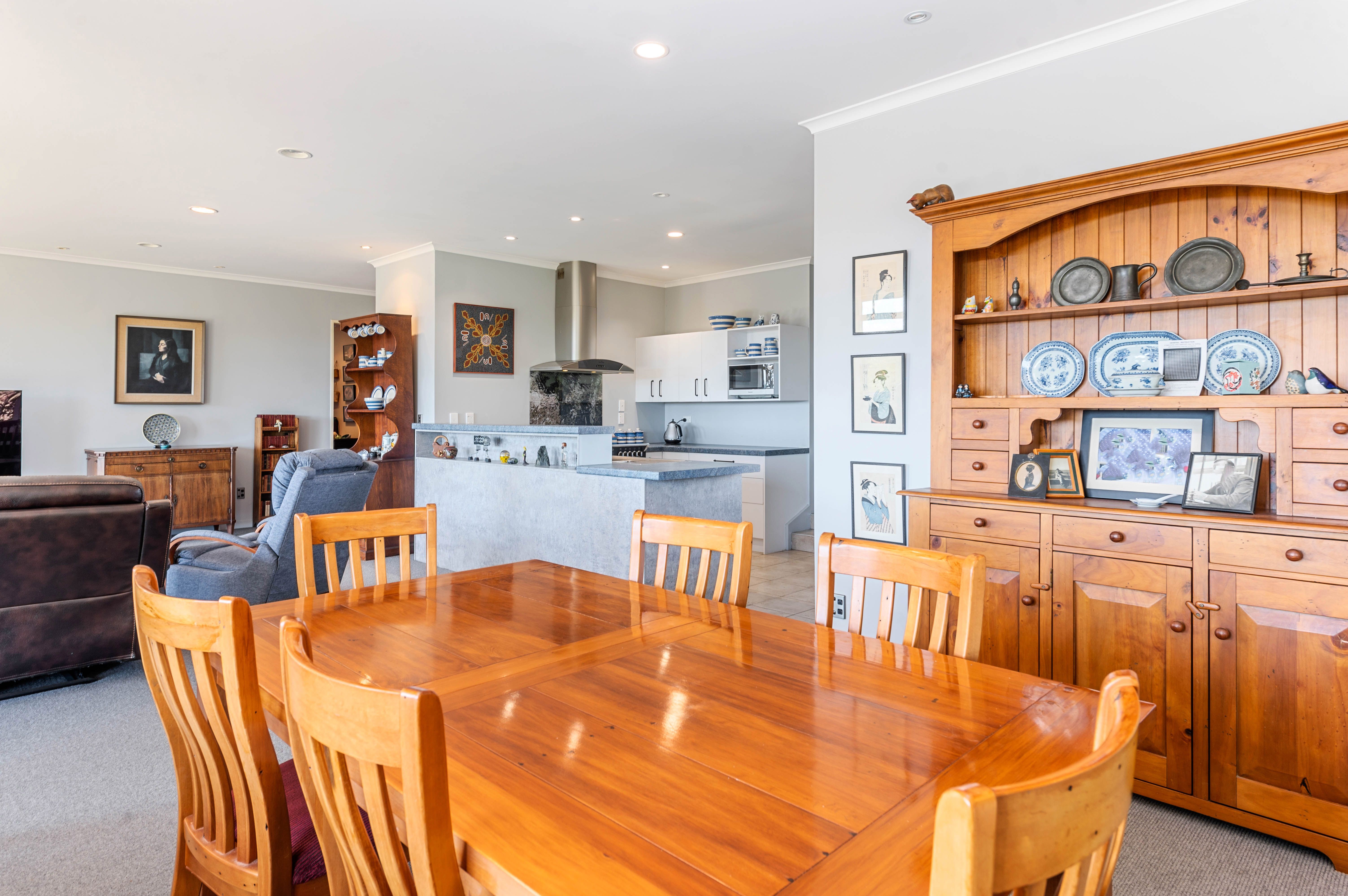 At the opposite end of the foyer, the main living area includes an updated kitchen with a feature Belling oven- the dining area in particular is one of the home's favourite places for guests to linger and enjoy the amazing lake & landscape views and gorgeous sunsets. A gas fire and a heat pump add a pleasant warmth. Tucked above is the master suite with its own walk in wardrobe, ensuite and a sunny balcony to provide the ultimate retreat.