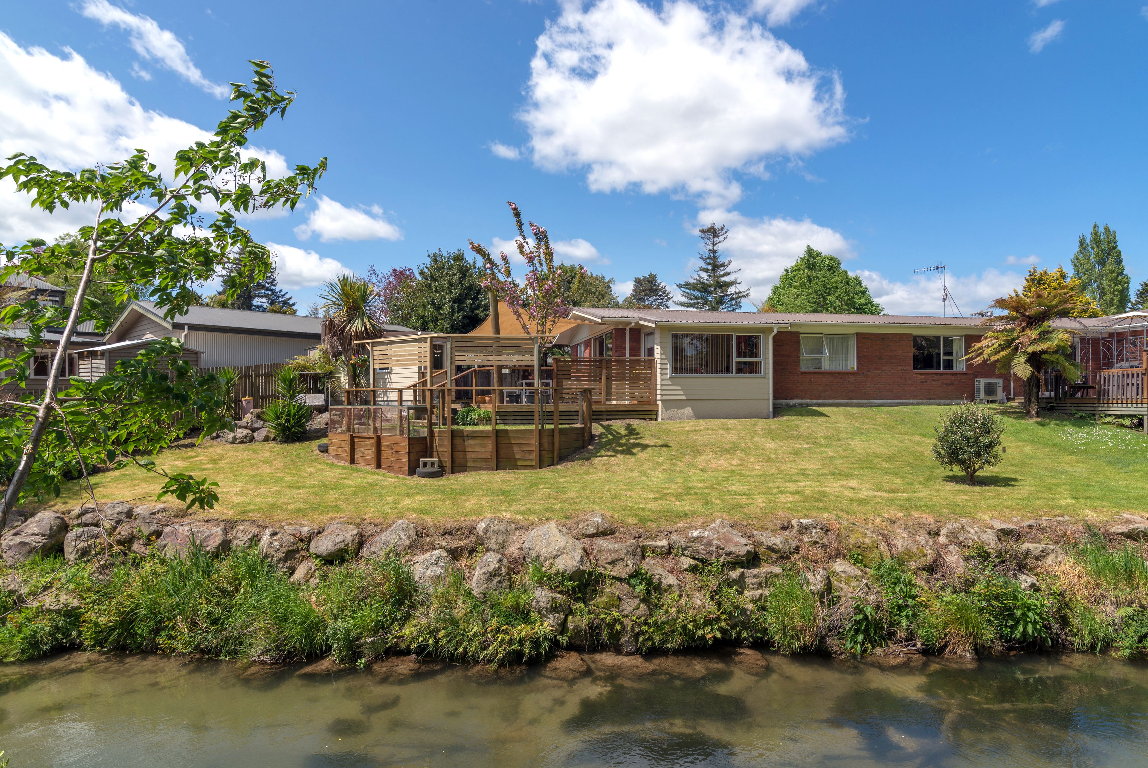 Located near the city, this tidy rear unit, one of two, offers a unique and affordable home with a wonderful outlook and a park-like setting. Facing the best of the light and landscape, the home offers an idyllic hideaway, where the sun streams onto the deck. Relax under the shade of the large sail, picnic on the lawn, gaze at the stream as it glides by. Nicely landscaped, the lawn steps down from the home towards the water, trellis screens give privacy and there's a view across to Mt Ngongotaha. Very tidy throughout, the home comprises two double bedrooms and a modernised bathroom. The living area is an easy open plan, opening to the sunny deck that overlooks the stream beyond. A light and airy feel prevails throughout the lounge and dining area and extends to the modernised kitchen. There's a heat pump and some double glazing to keep the home cosy. The property includes a double carport with the bonus of a handy walk-in storage cupboard and a separate lockable office.