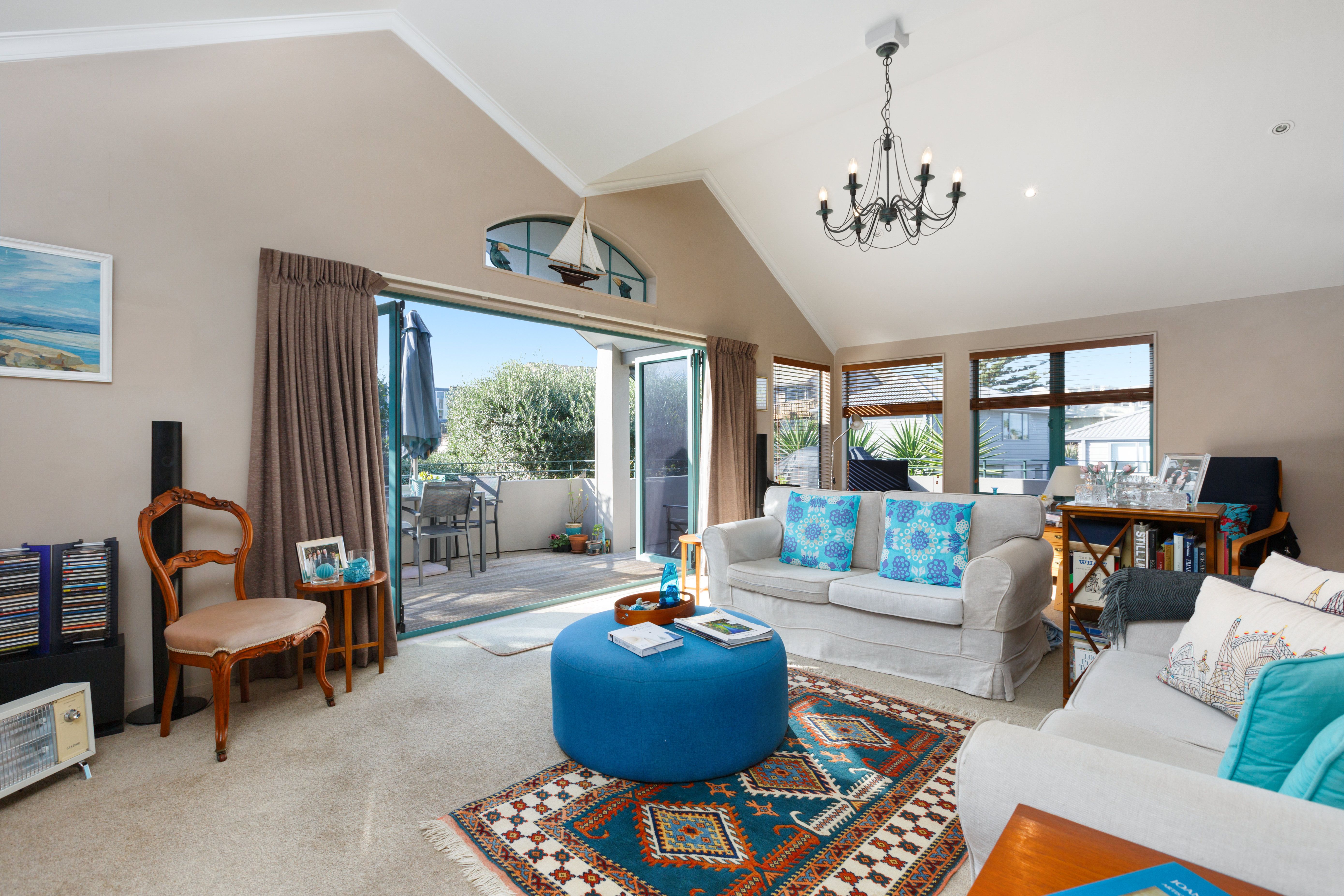 The master bedroom and ensuite are upstairs, enabling one level living once up, and flowing to a sun filled balcony with views of the ocean.