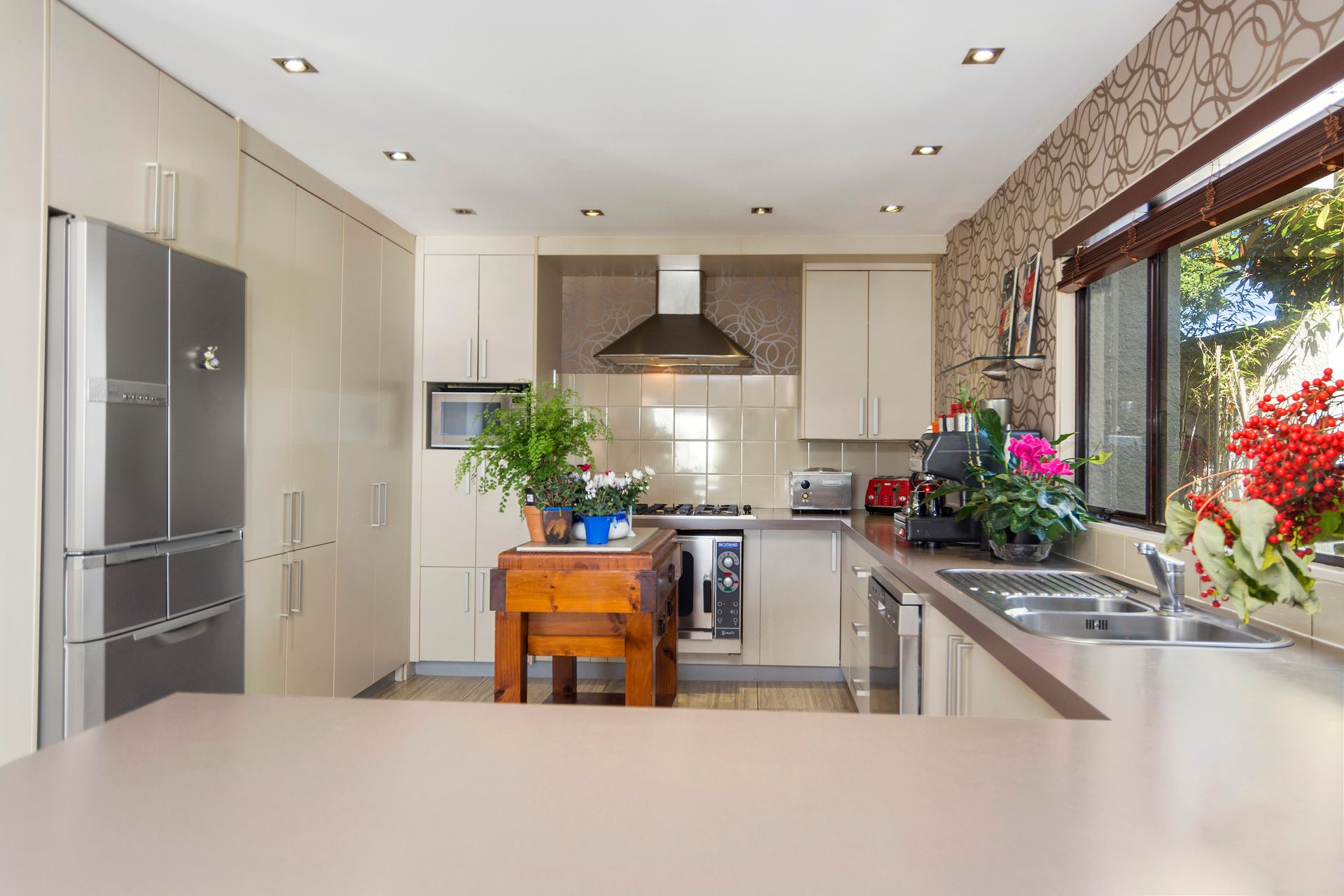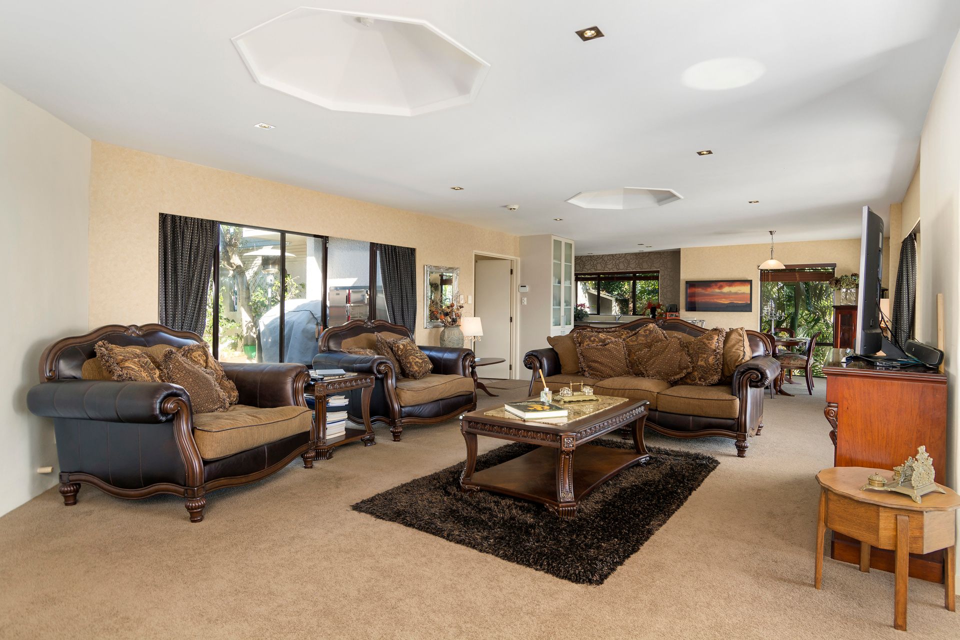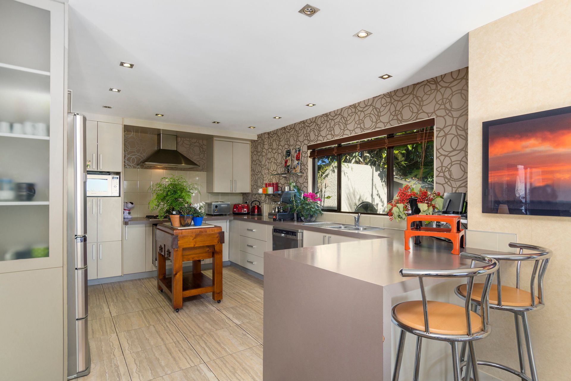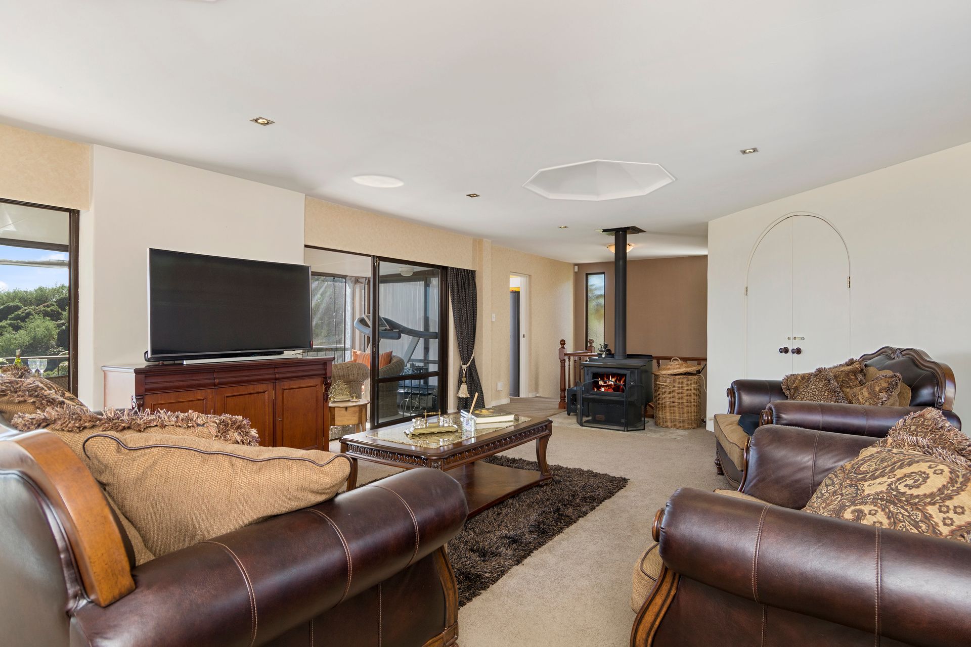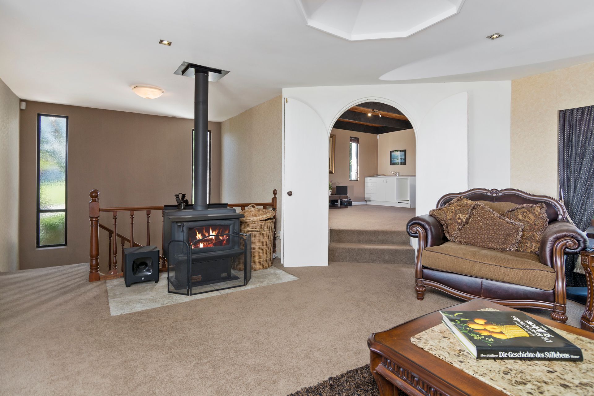 The three bedrooms all have bathrooms. Two bedrooms have kitchenette's and there is a huge separate family room as well as the large open plan living. The kitchen is "funky" and in immaculate shape with a commercial oven. (The oven has secret cleaning habits!)