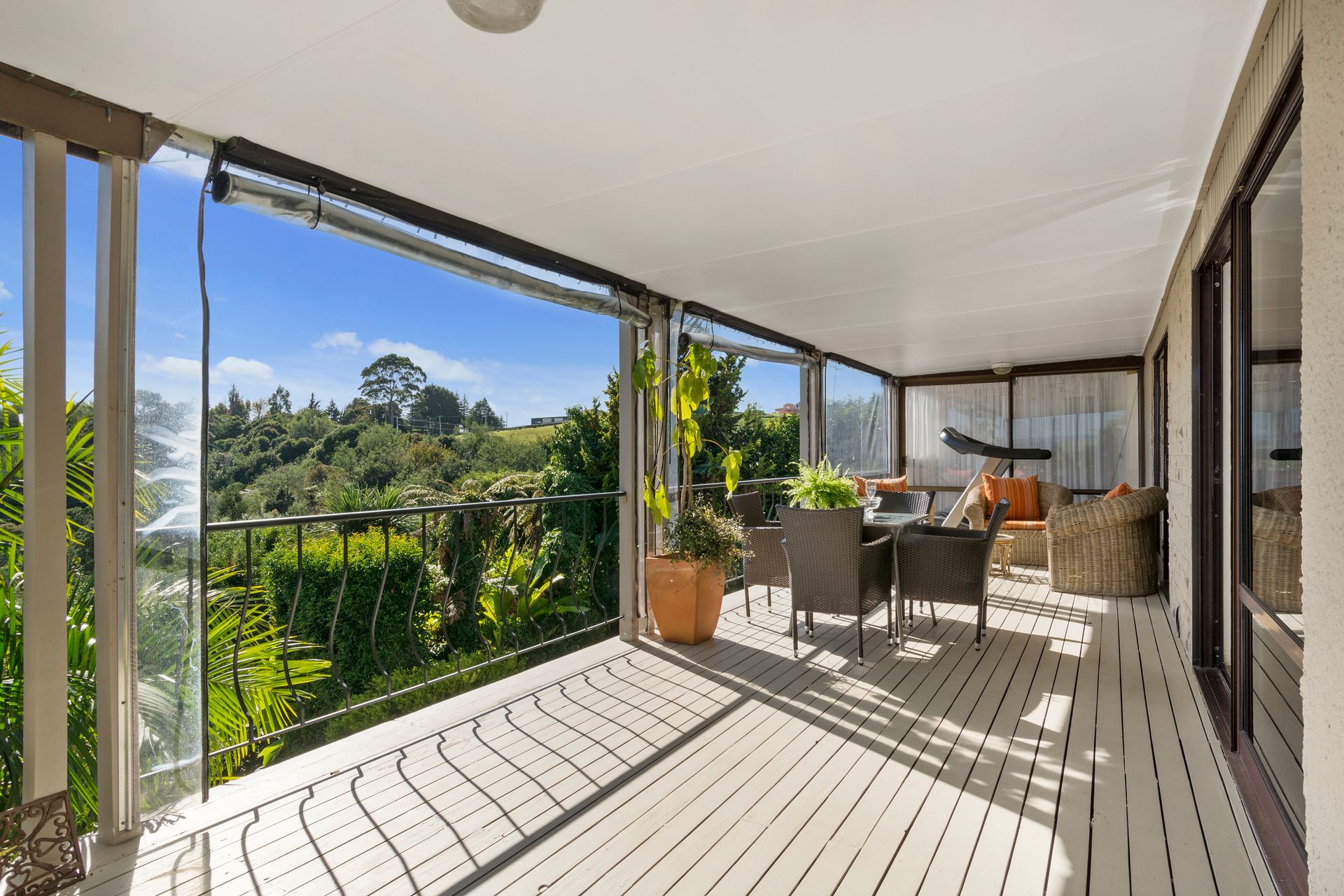 Solid concrete with a 70's Stucco render all freshly painted. New Internal guttering 7 years ago. The sellers have looked into building "up" with no height restriction this is a no-brainer!