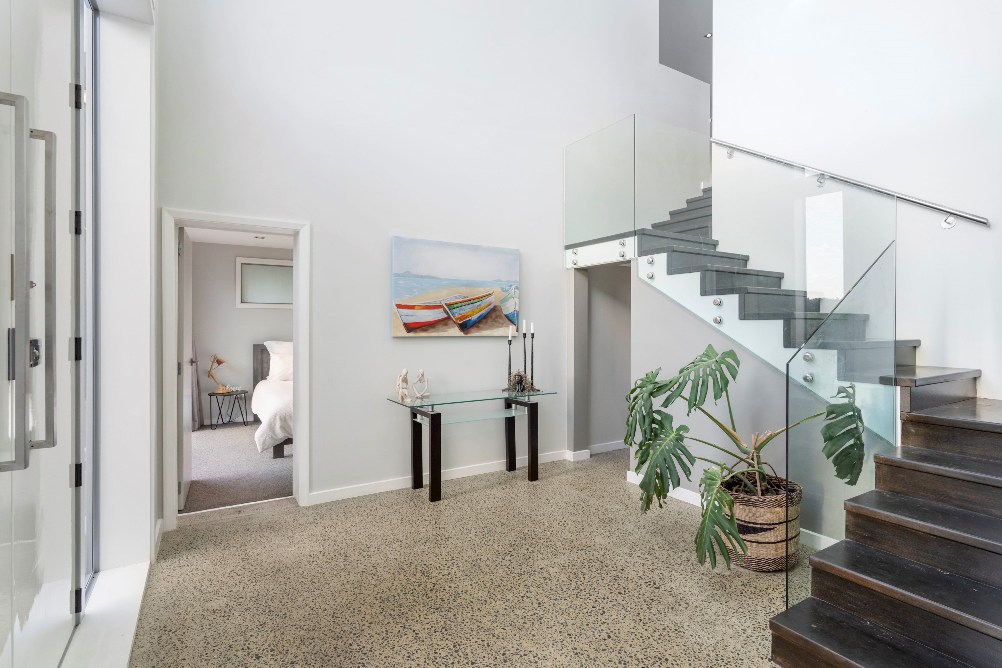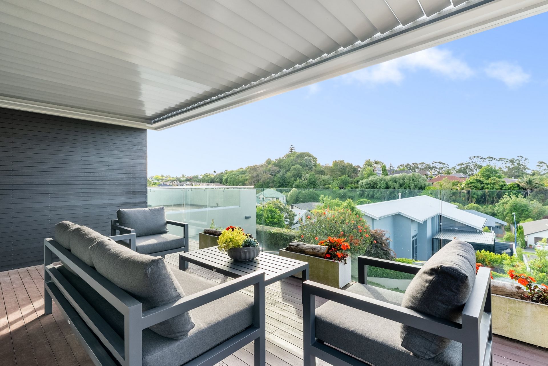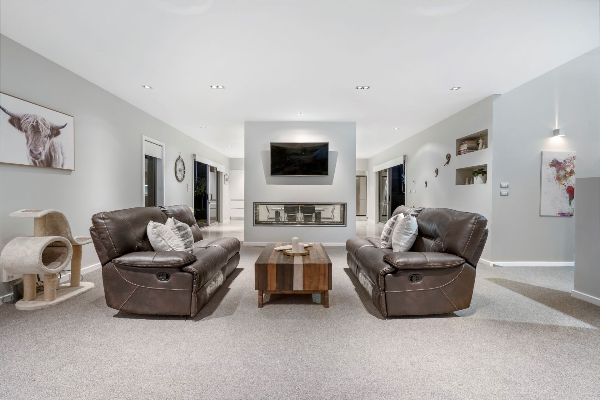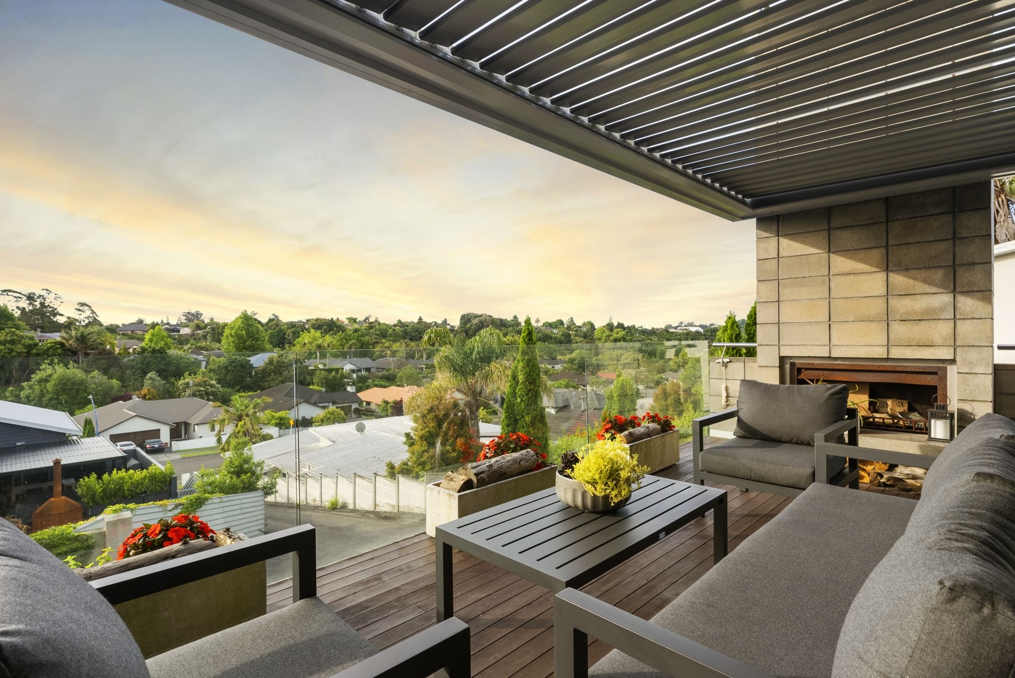 The main living space surrounds a feature fireplace and a superior gourmet kitchen to bring your deluxe culinary skills to life. These spaces instinctively flow outside to multiple, outdoor living zones for your all year round entertaining with an additional outdoor fireplace and covered spaces. The elevated position faces Northwest and soaks up the sun throughout the day and a vista across the surrounds.