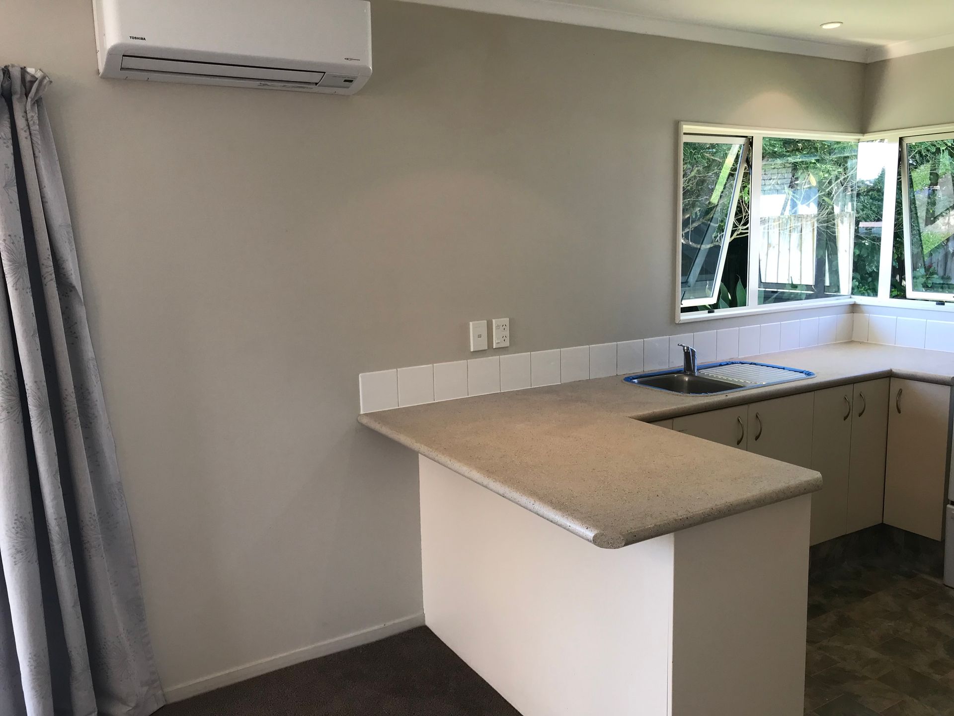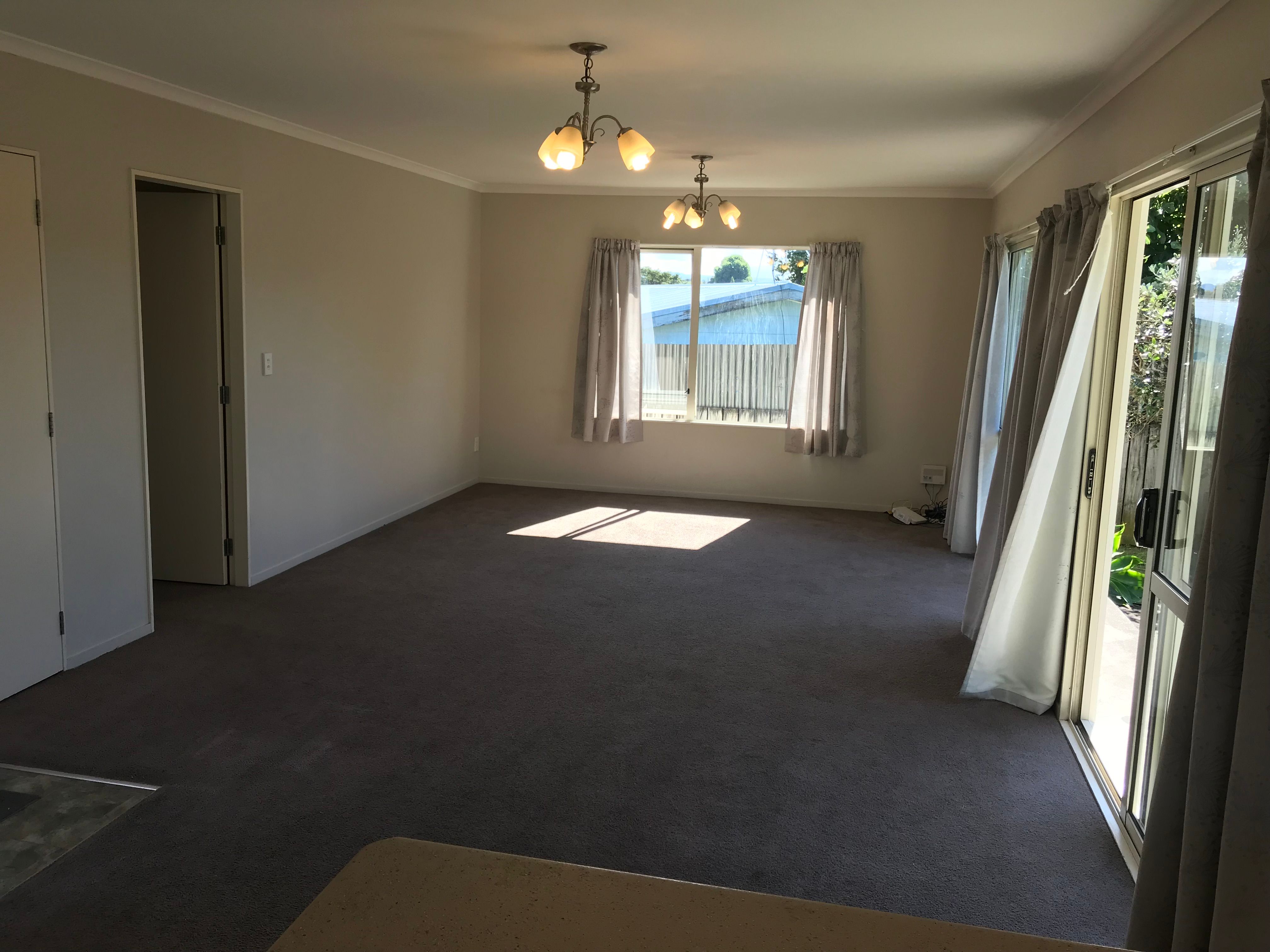3 bedrooms, 1 bathroom (seperate bath and shower), seperate toilet, internal single garage with automatic door, laundry located at the end of the garage, external back exit to clothesline and rear of property. Great off street parking for extra vehicles, low maintenance gardens and lawns, private courtyard area off the lounge/living area with open plan kitchen/dining/lounge area. Heatpump/air conditioning in lounge, shower dome over shower in bathroom. Not suitable for pets sorry.