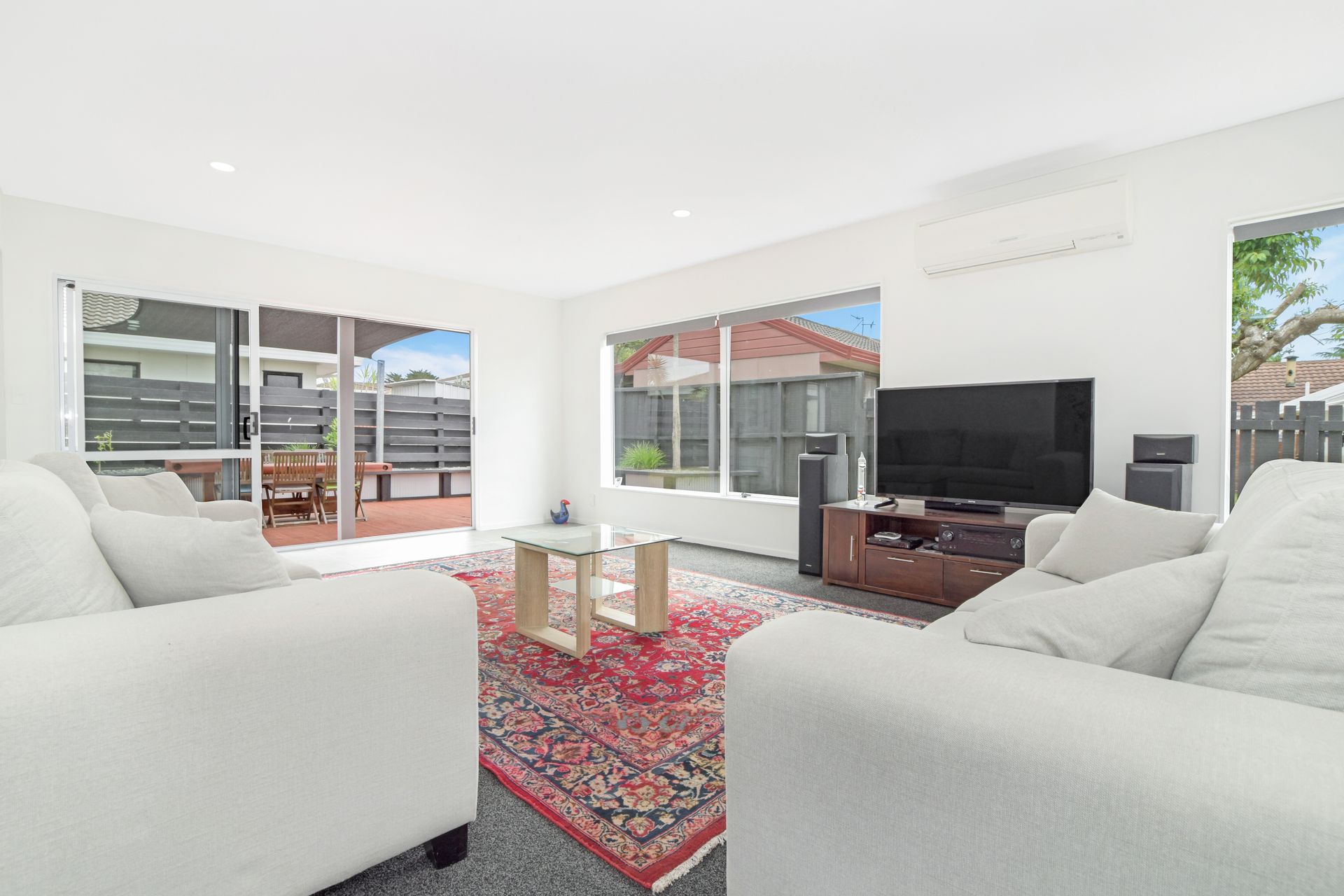 Fantastic outdoor private courtyard area with outdoor table and shade sail, low maintenance section. Heatpump/air con in the lounge area.