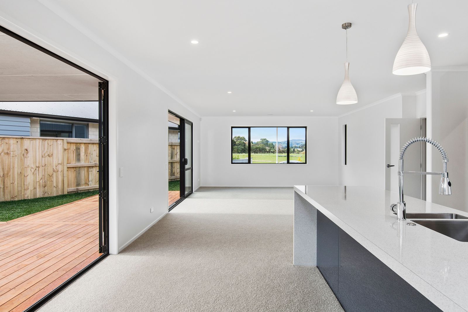 Located at The Lakes, completed and looking magnificent. Notice first the brick cladding then as you walk into this home you will notice the fabulous feature wall in the entry. Then moving into the sunny family room you get the feeling of space and easily imagine having family and friends enjoying the open living which flows out to the wonderful covered deck and sunny yard. Complimented by a well-appointed designer kitchen and a scullery to please the fussiest of cooks. The separate lounge has a cosy gas fire and there are three large bedrooms, and the modern bathrooms need to be seen. Separate laundry and a large garage completes the list. Quality fitments throughout. To see the home call in to an open home Sunday or Wednesday 2.00 to 2.45. Or call for an appointment to view.