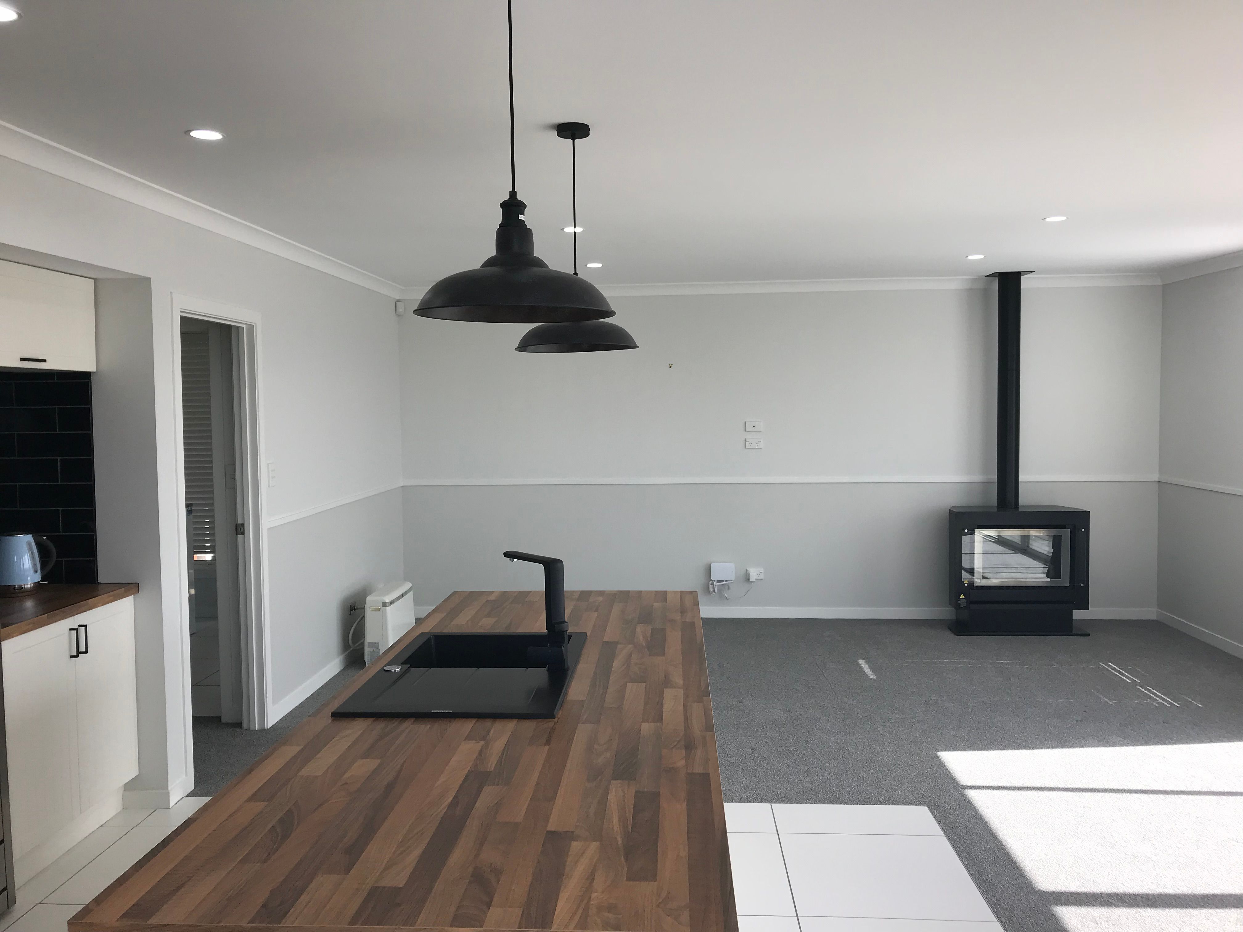 * Generous living area with gas fireplace & a large open plan living area and a modern