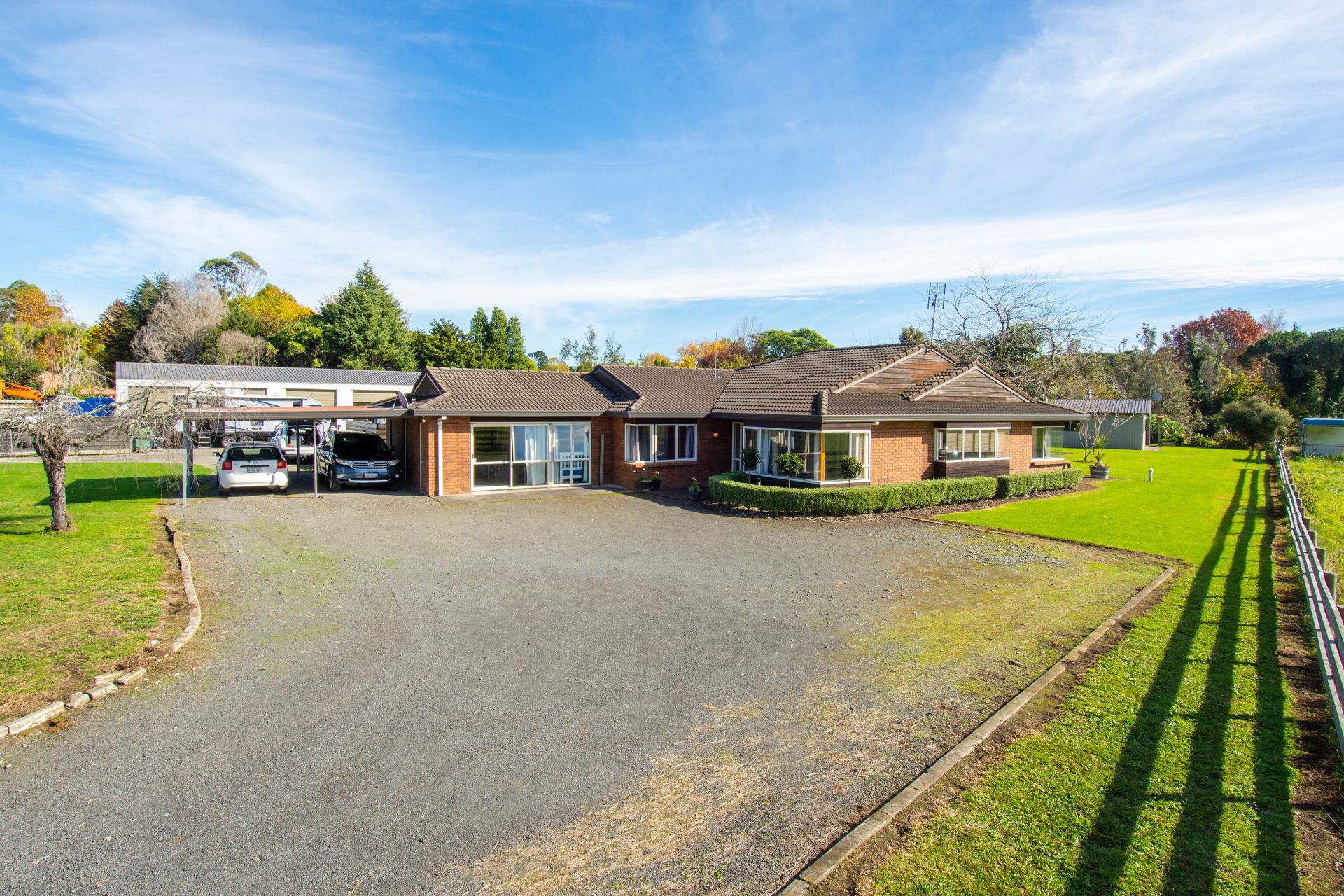The twist here comes with two large sheds. The six-bay shed is currently leased to two businesses and the second five-bay shed is utilised by the current owners.