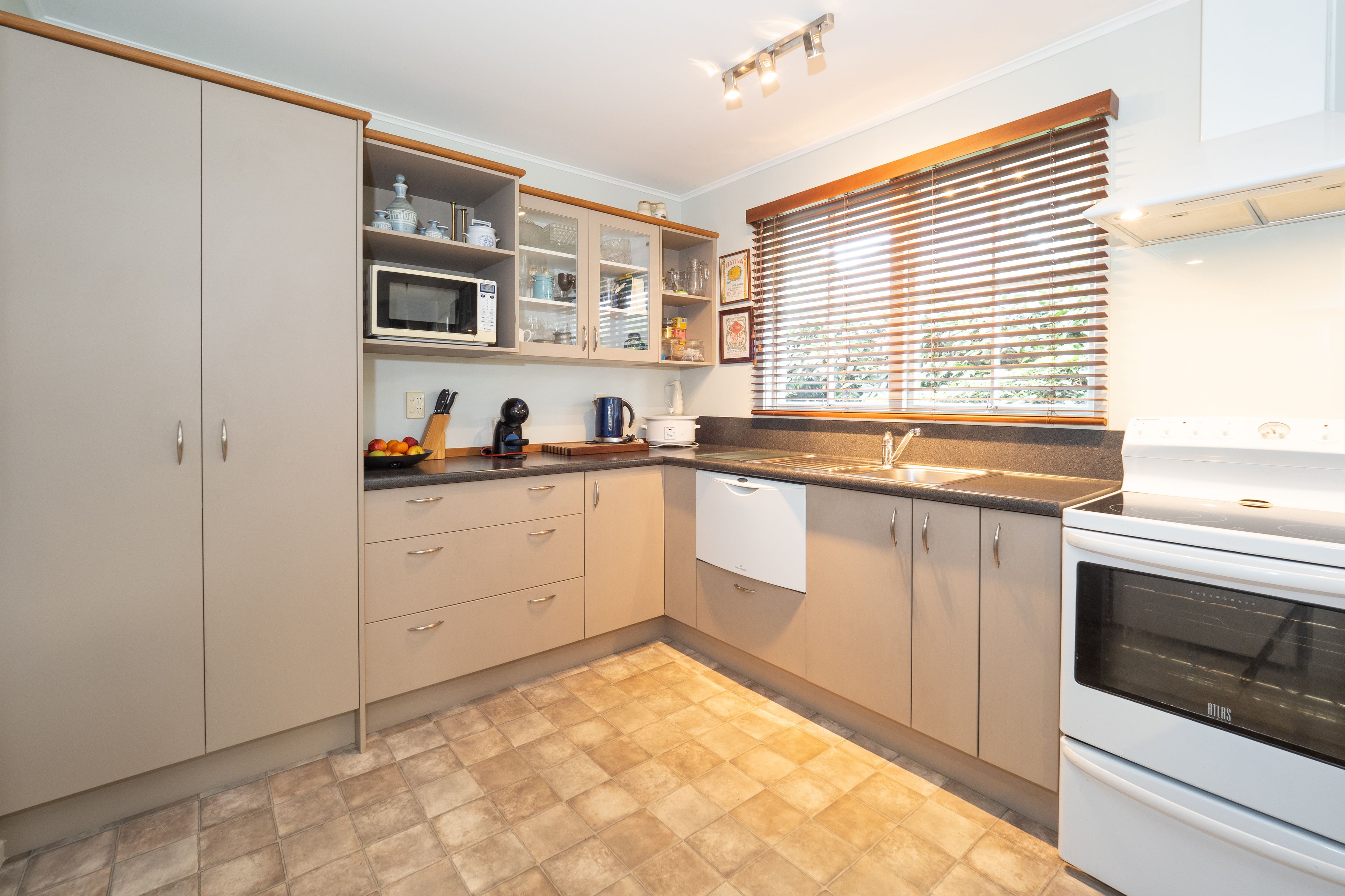 The present owners have lived here for over 40 years and love the layout of the living areas which open-up for entertaining guests. Built to capture all day sun the lounge room leads through double doors to the kitchen/dining/living area where you will be kept cosy warm in the cooler months with a compliant log fire and heat pump. This functional area has direct access through double doors to the conservatory where you can relax and enjoy private garden views. This beautifully maintained home has an effective and ambient gas fire in the lounge, fresh paint, near new blinds, and good carpet ready for you to move in and enjoy.