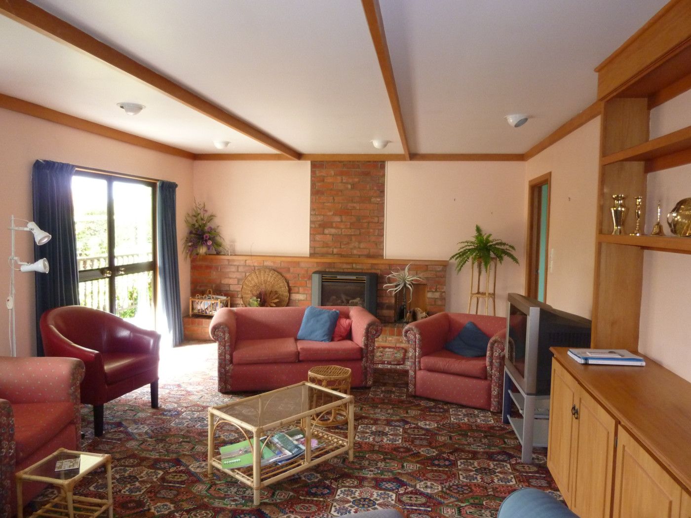 Sunny lounge with gas fireplace (doors opening to decking