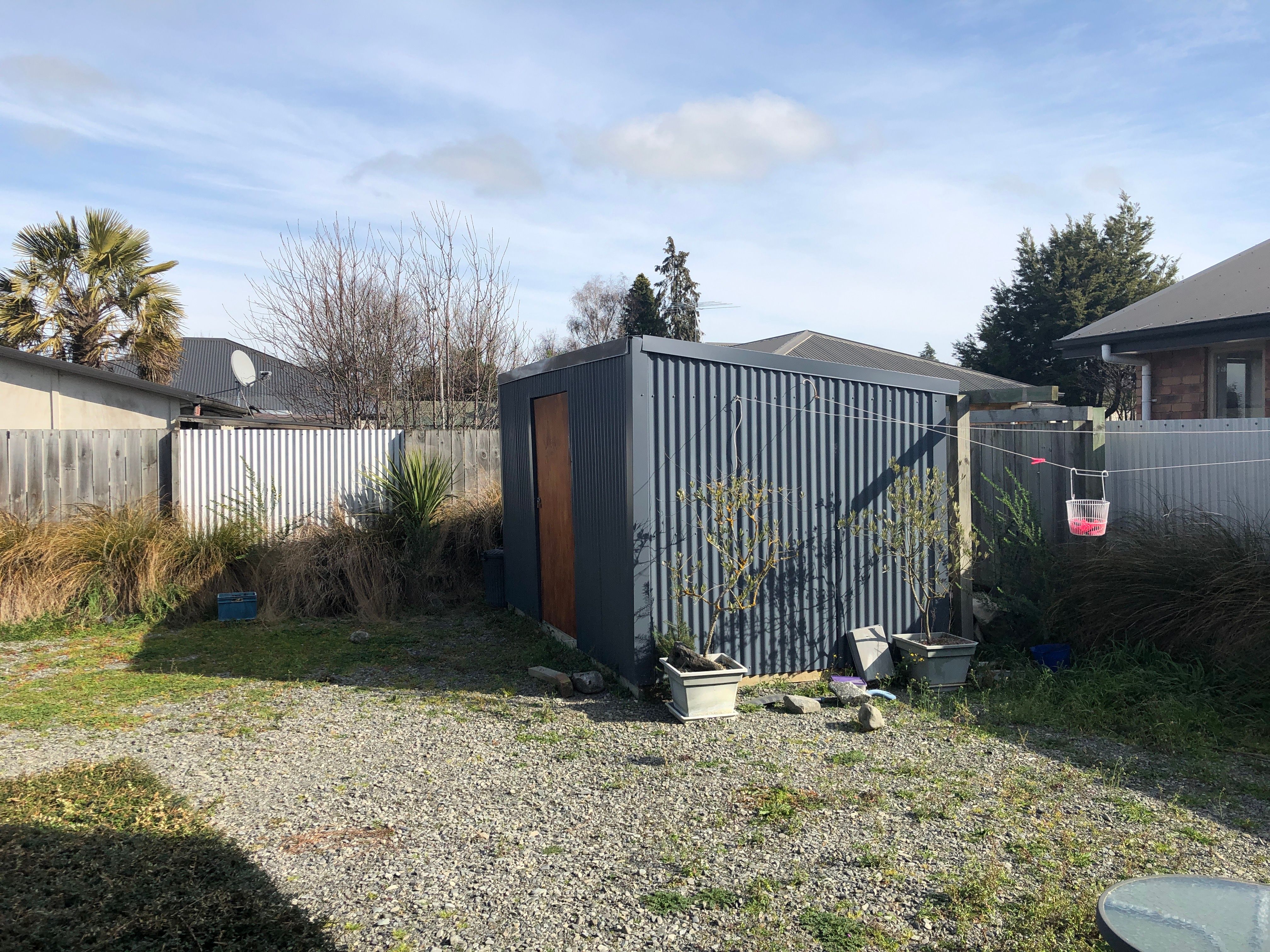Good storage shed outside with plenty of parking space. The property is not fenced for dogs.