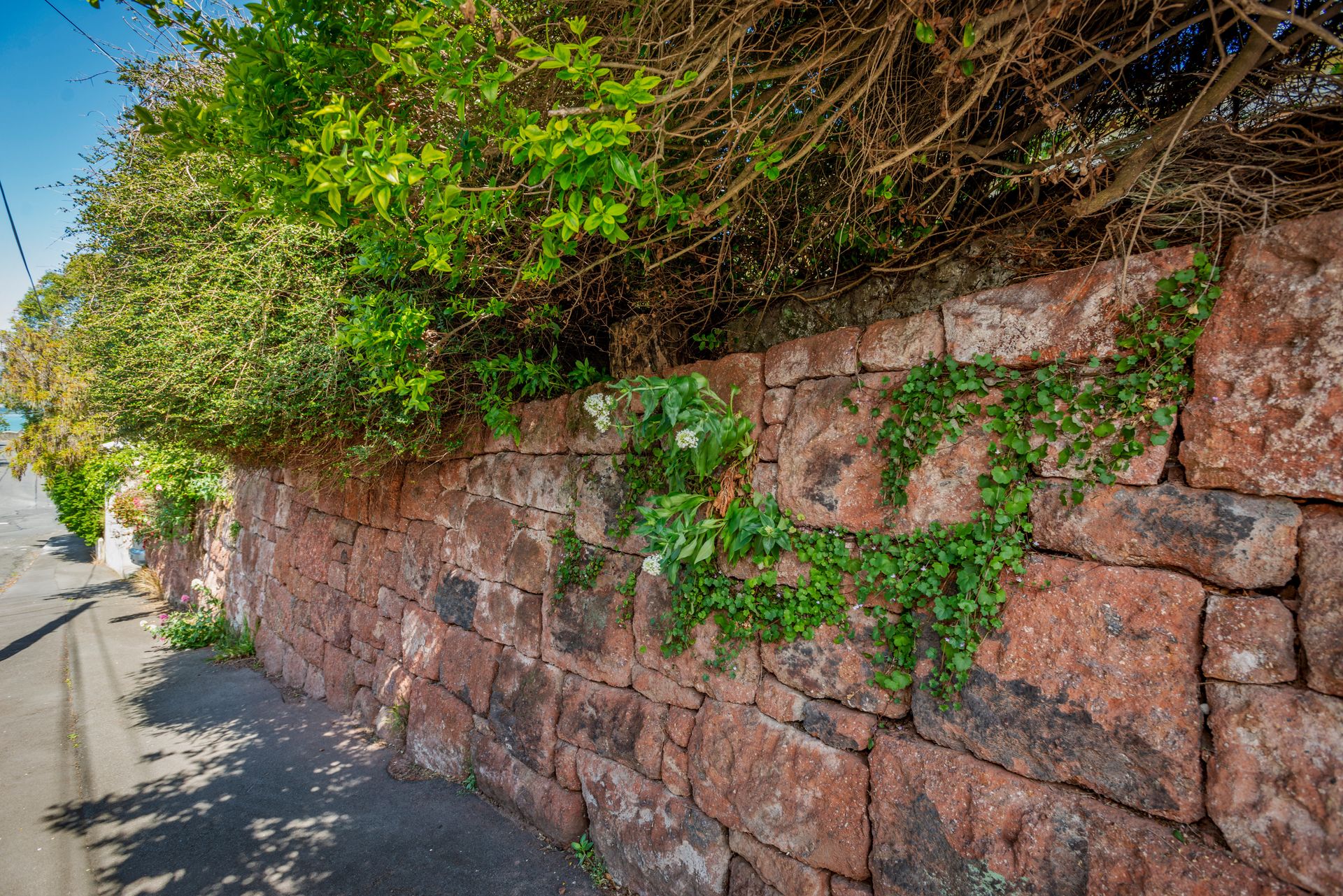 Classic volcanic stone walling of the property frontage extends a warm welcome. It has been rebuilt and emphasises its historic orgigins. There is more feature retaining walling across the rear of the property.