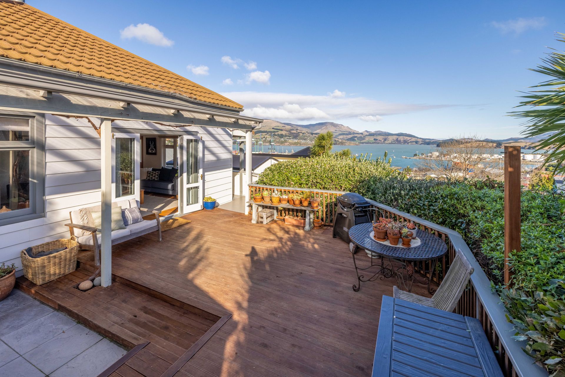 Comfort levels are maintained by a log burner, heat pump, insulation and an HRV system. Also overlooking the deck, the dining area adjoins a creatively designed, well-specified kitchen that has skylight natural lighting. The main bedroom has a port outlook and good wardrobe storage. Bedroom two, also with a built-in wardrobe, has an easterly garden outlook. It also features attic ladder access to ceiling cavity storage space complete with lighting. The cleverly designed bathroom has a shower over bath, toilet alcove and hideaway laundry. Other features include raised gardens and a separate storage shed.