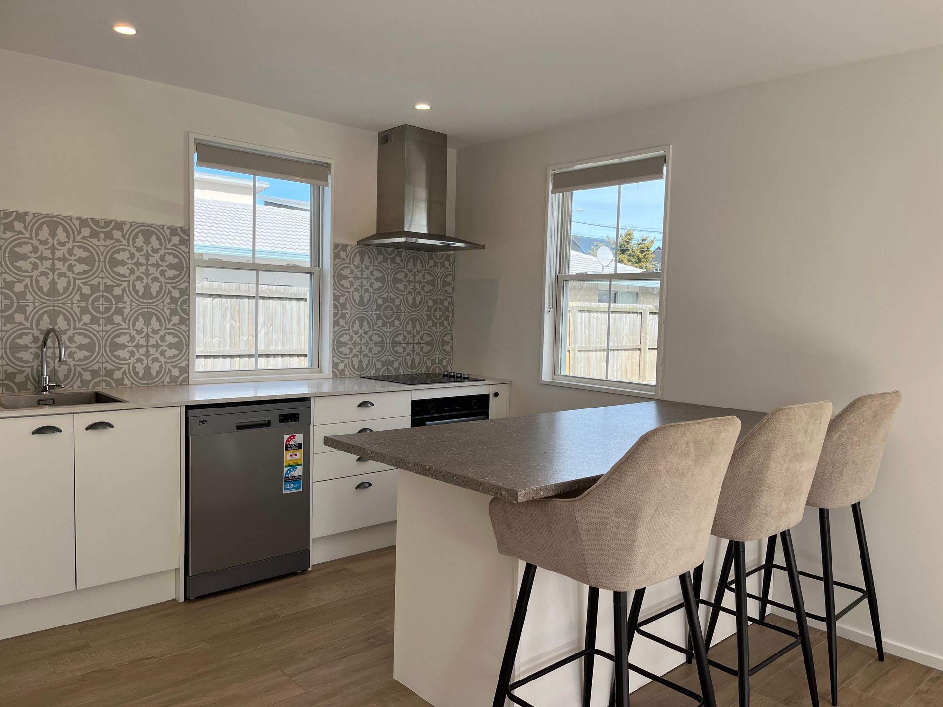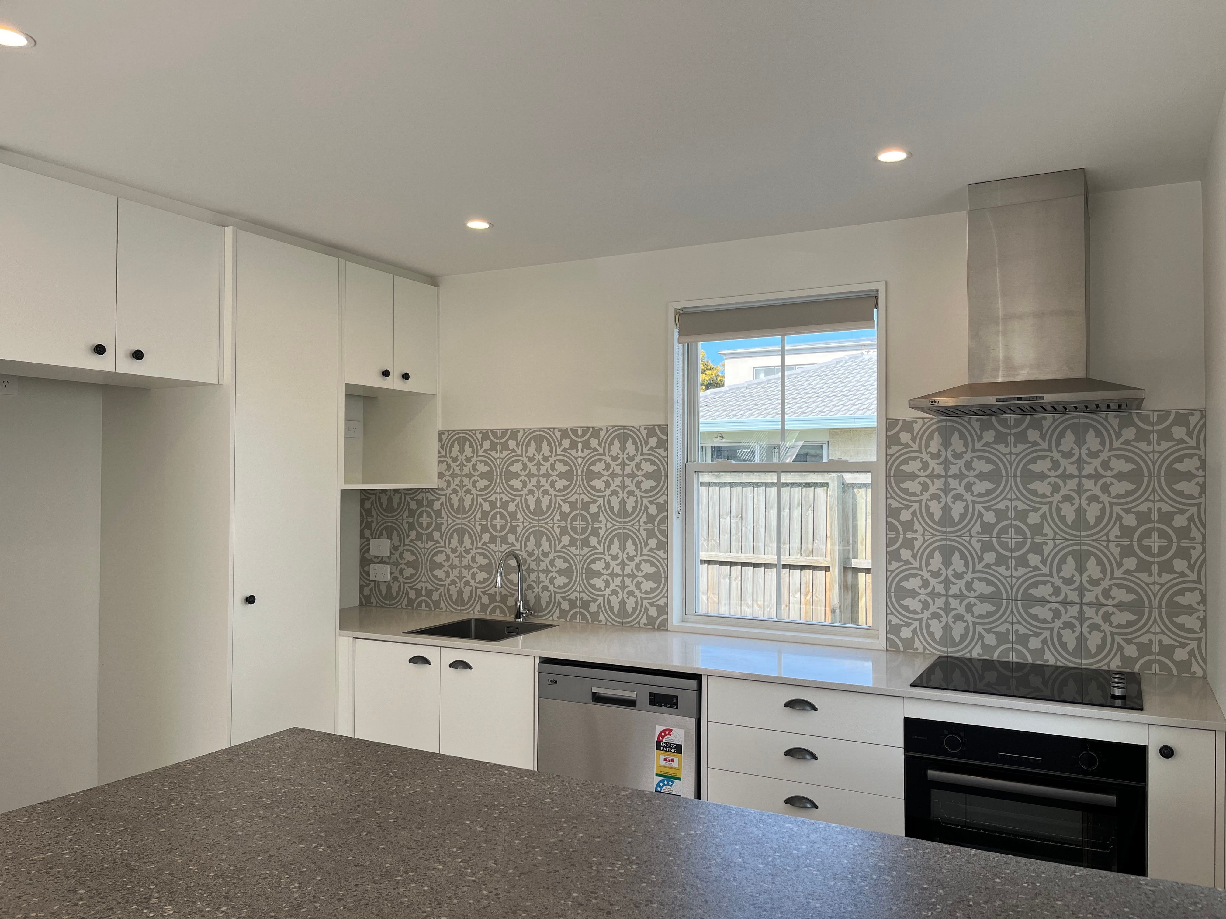 • Well-thought-out kitchen includes a dishwasher, under-bench oven, hob, and rangehood