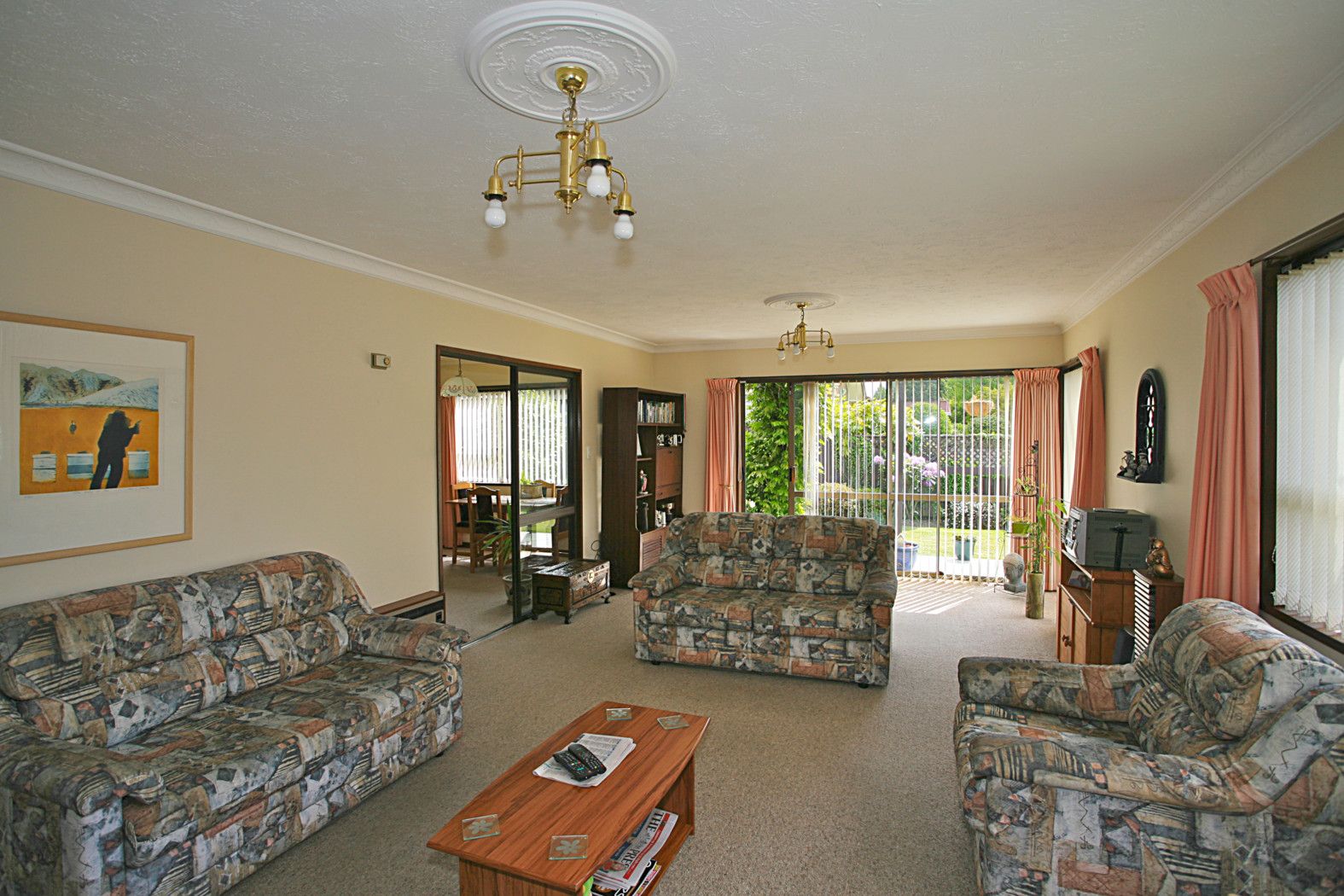 Open plan kitchen/dining/living plus separate spacious adjoining living with doors to patio and garden.
