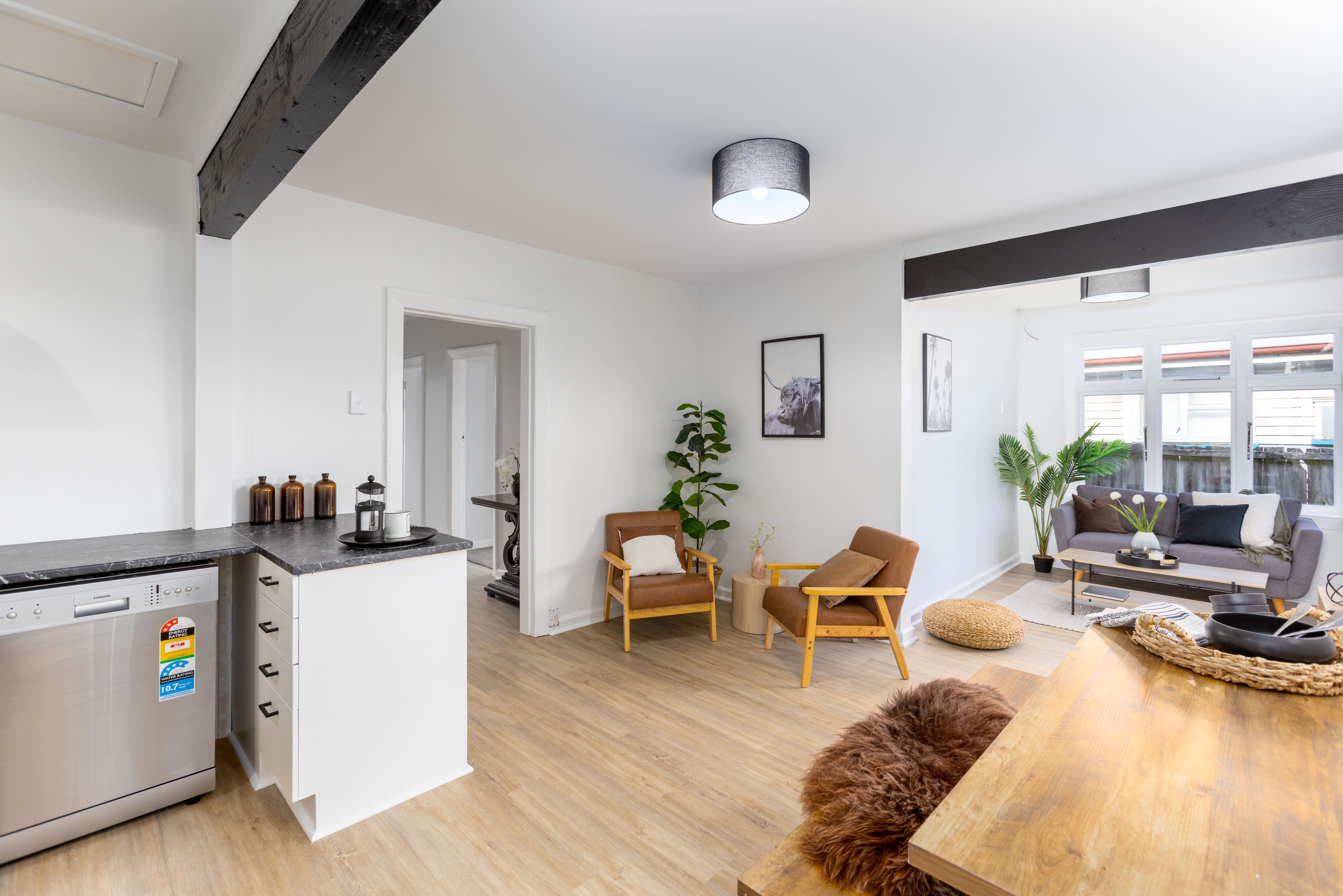 - Open plan kitchen and living