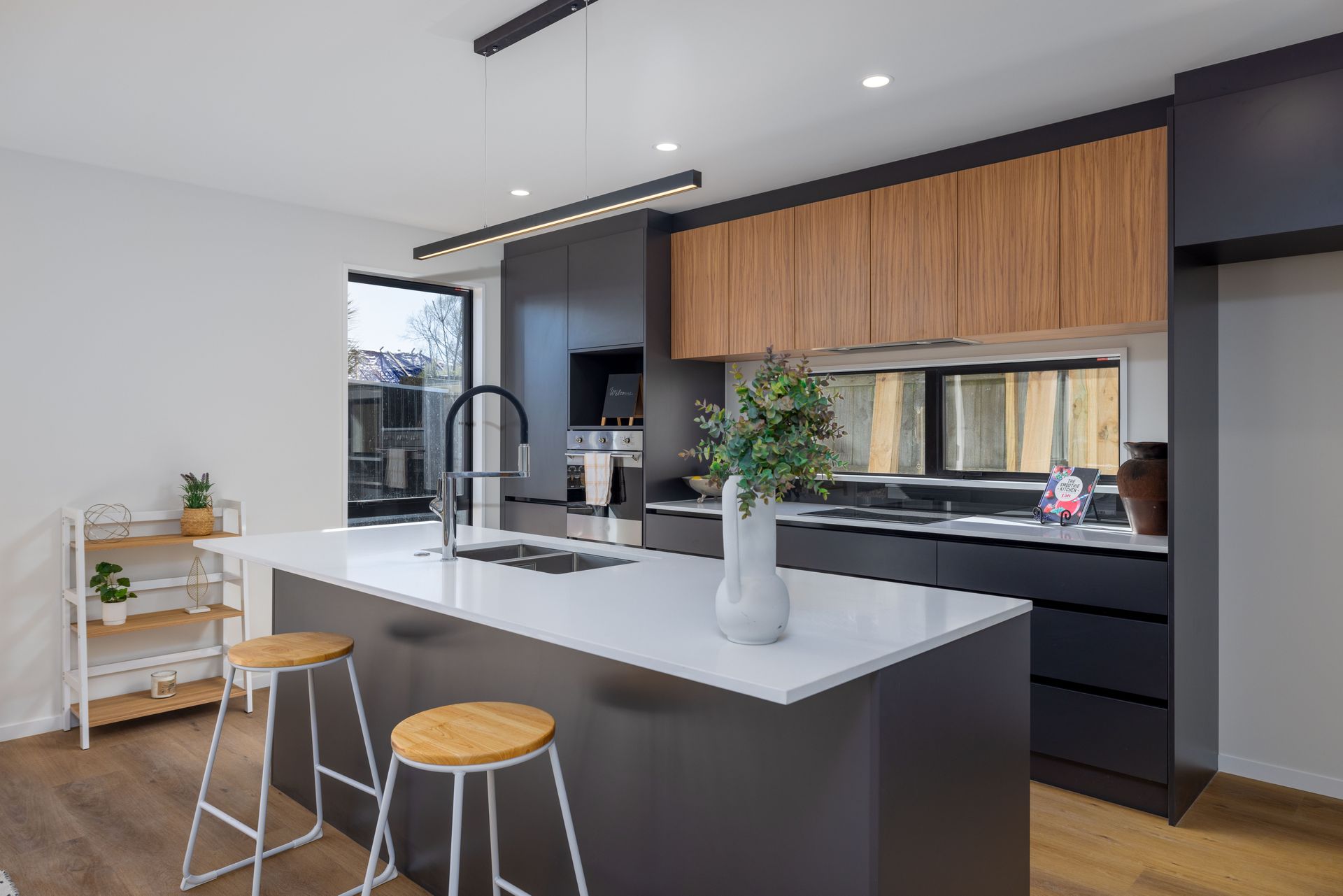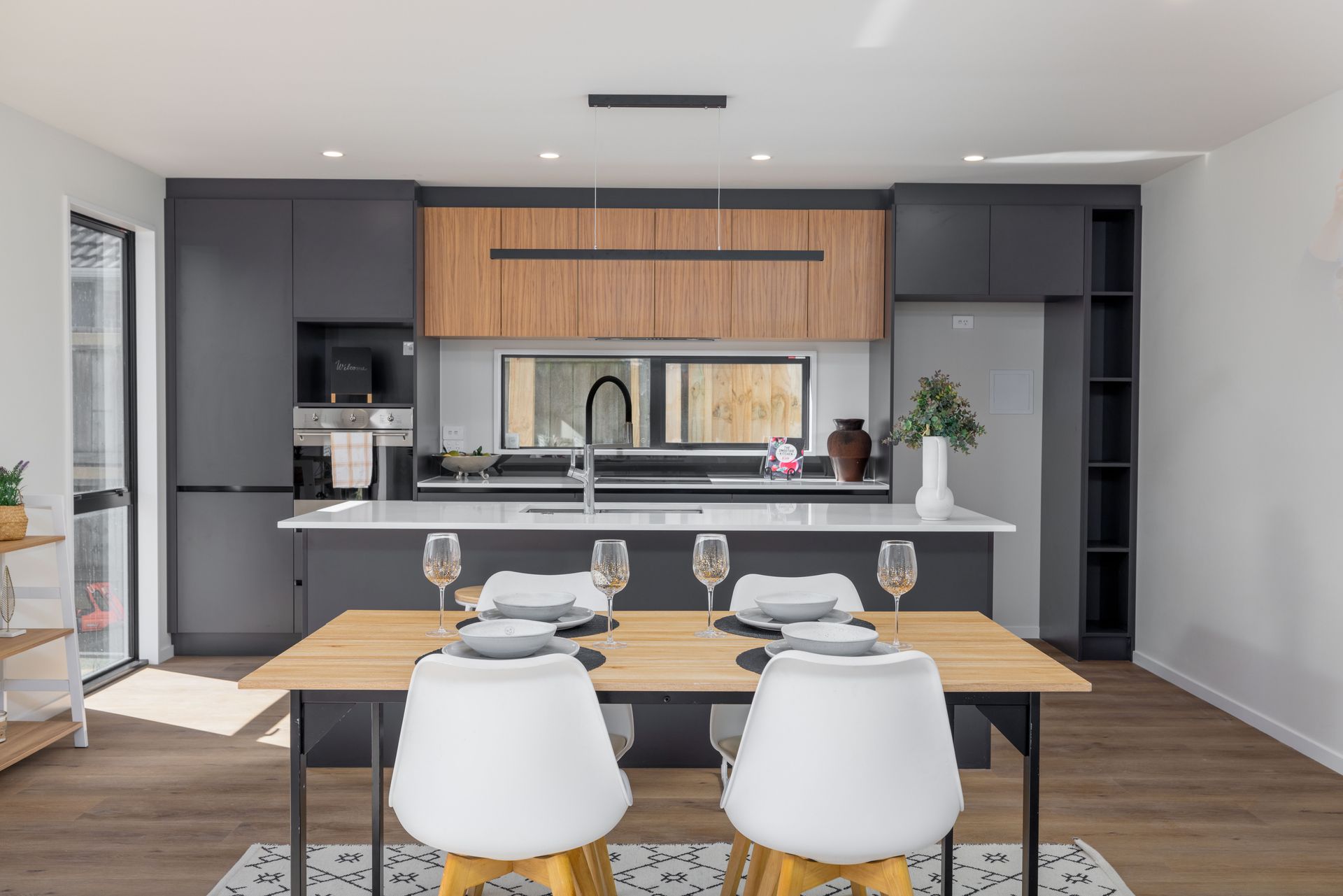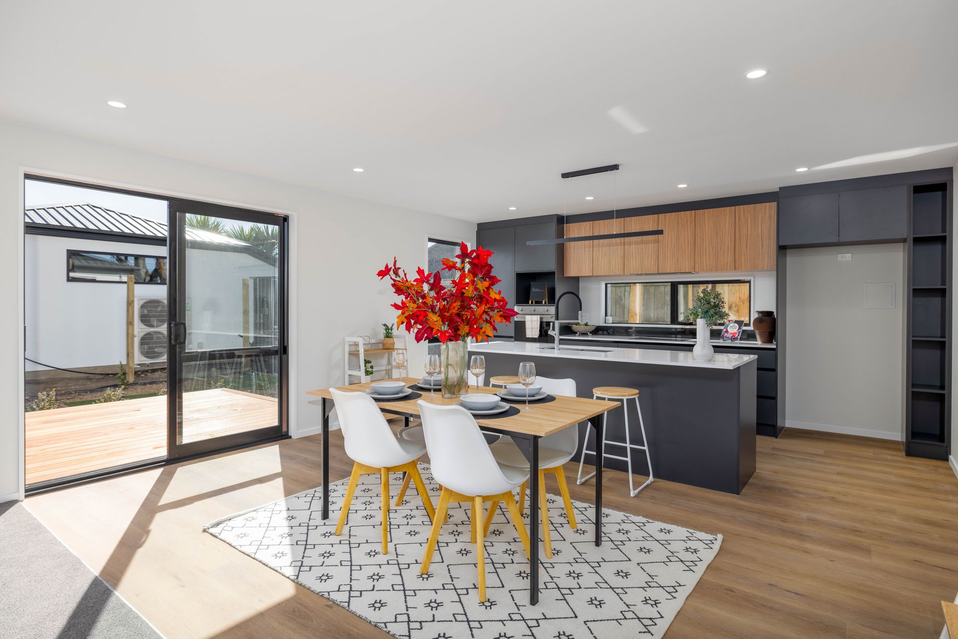- Modern open plan living and kitchen with access to deck