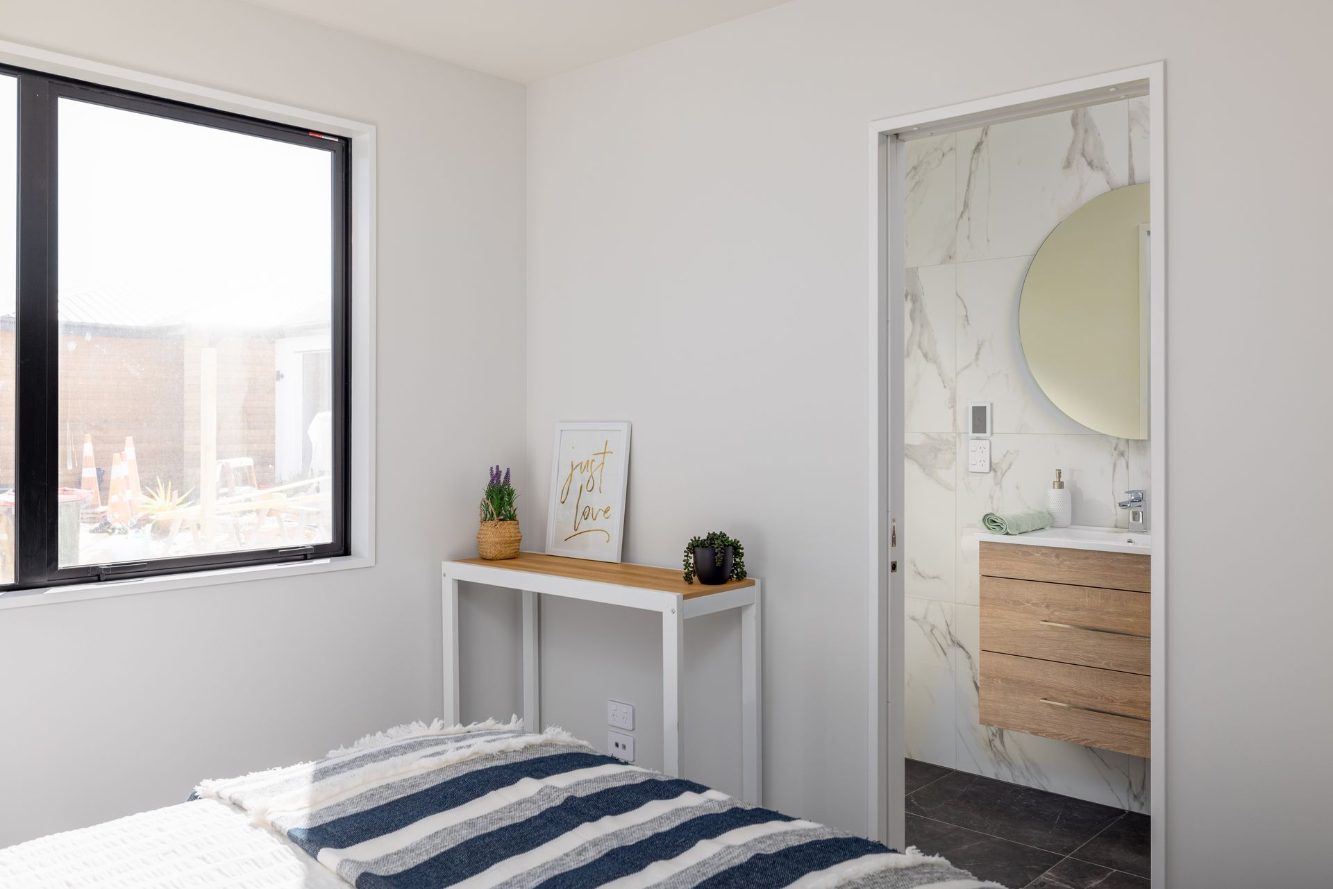 Introducing the epitome of contemporary living in a brand new, state-of-the-art modern house! This stunning residence seamlessly blends the indoors with the outdoors, featuring an open-plan living room and modern kitchen with breakfast bar that effortlessly flows out to a spacious deck, perfect for entertaining and enjoying the fresh air. With three generously sized double bedrooms, each boasting built-in storage. The master bedroom comes complete with a sleek modern ensuite. The family bathroom is equally luxurious, with a separate bath and shower for your comfort and convenience. You'll appreciate the elegant touch of ambient lighting behind the backlit led mirror which features a demister, three brightness levels, and a convenient dimmer.