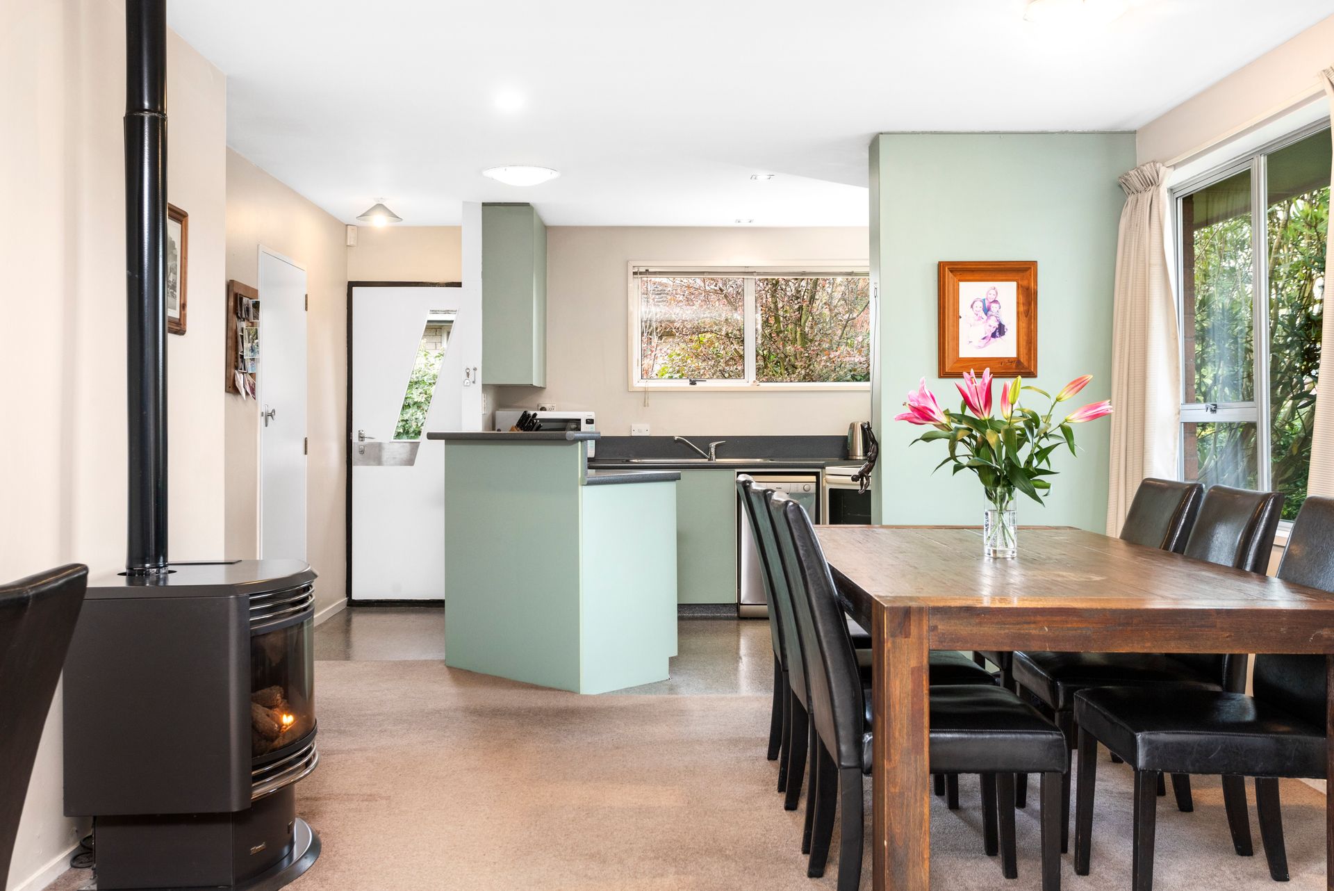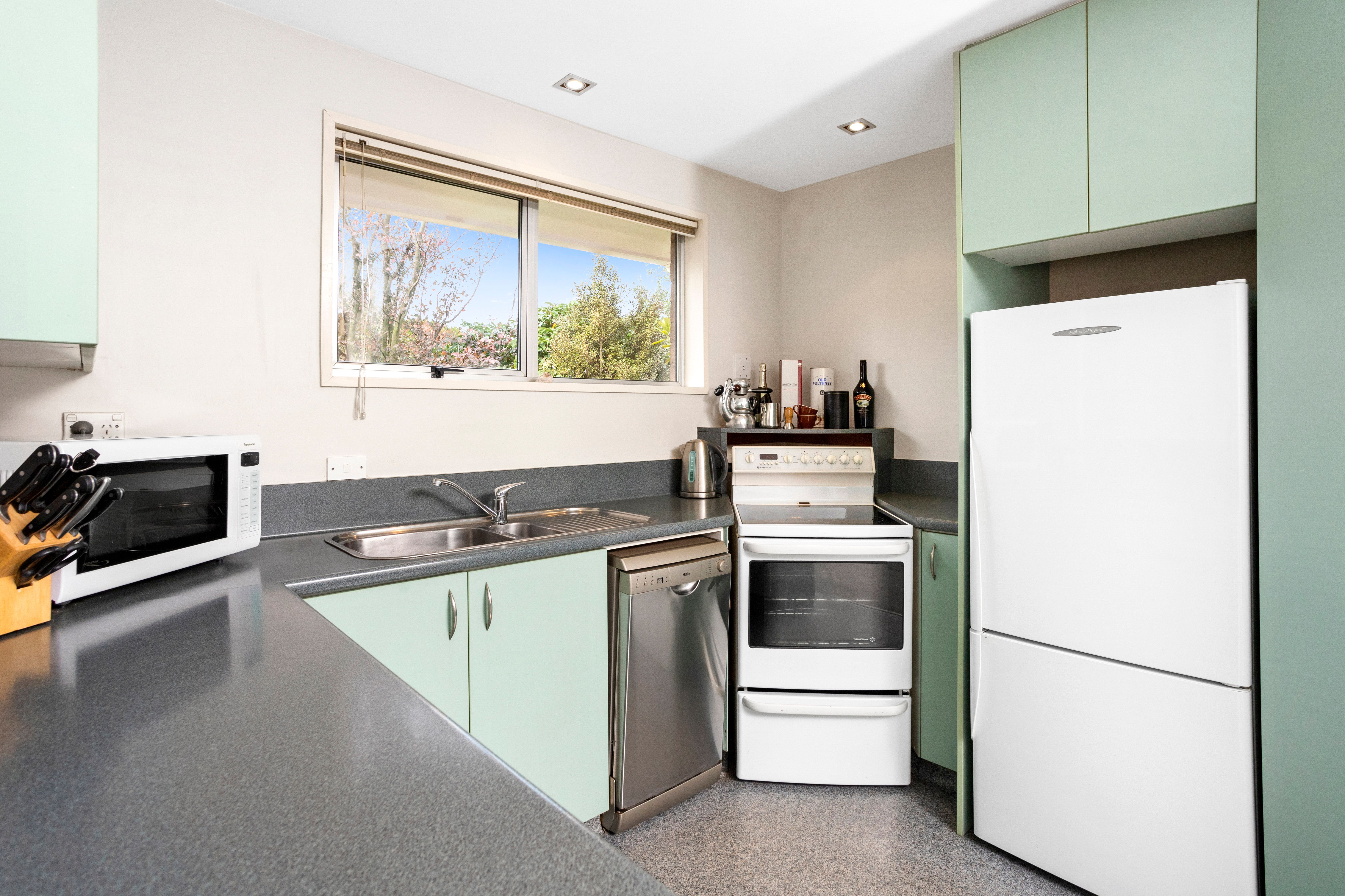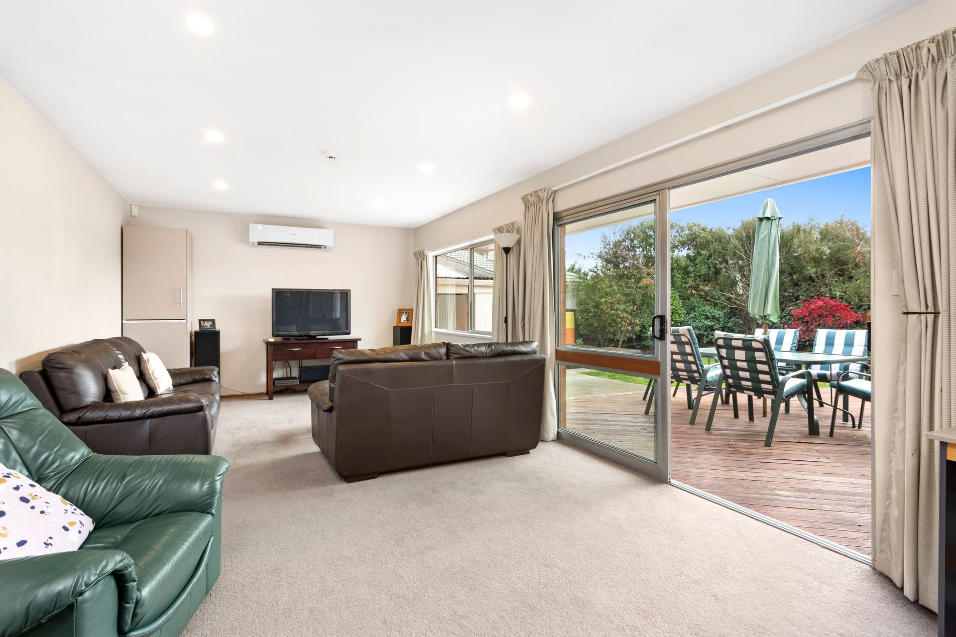 Consisting of three generously sized sunny northwest facing bedrooms, the master bedroom has an ensuite plus a large ranch slider that opens out onto the decked area. Partial double glazing, a gas fire, and heat-pump will help keep the winter chills at bay.