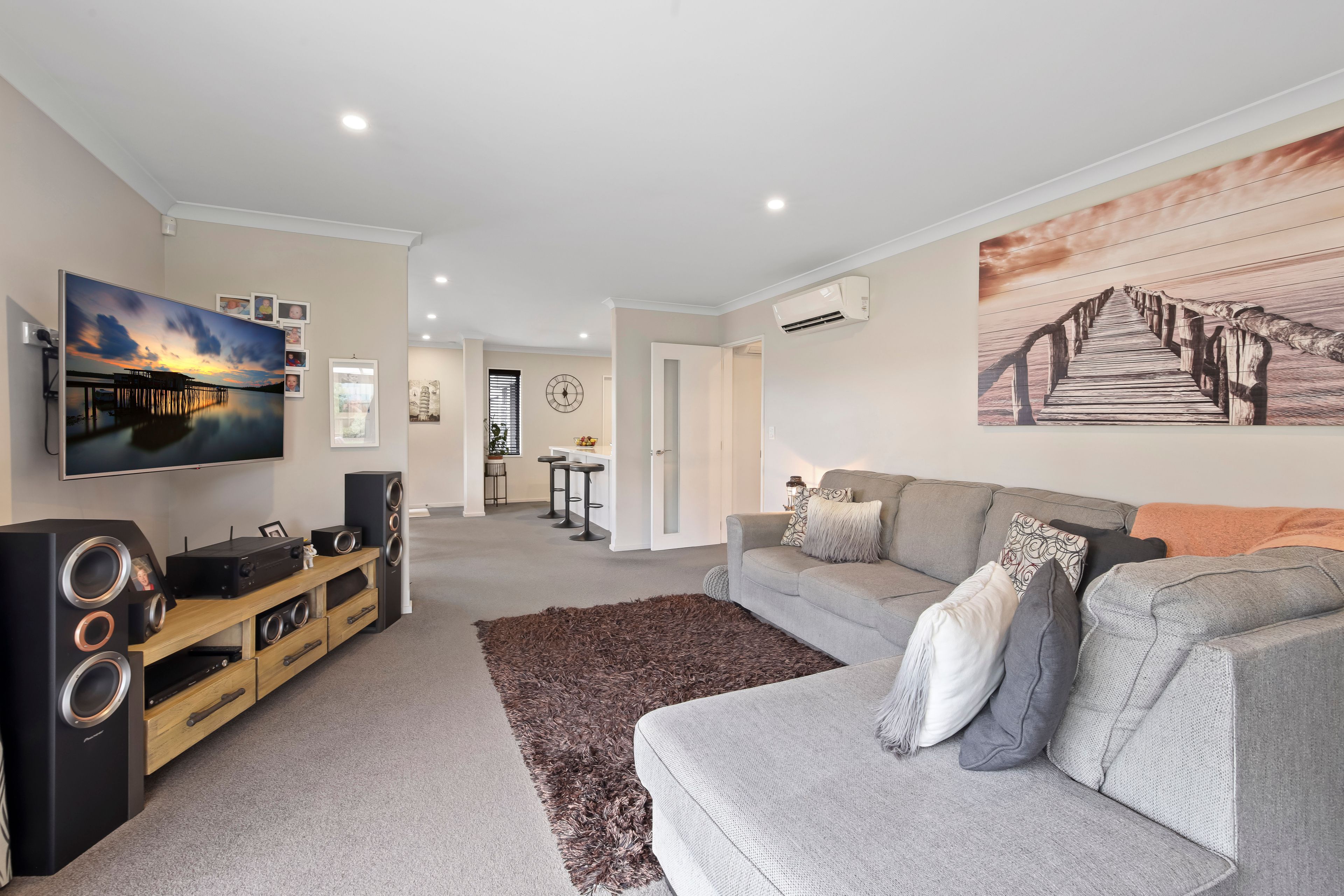 The property features a modern kitchen, flowing to a spacious dining area, opening to the lounge and outdoor entertaining area. The house also boasts three generous double bedrooms, separate bathrooms, including an ensuite, and a separate toilet for added convenience.