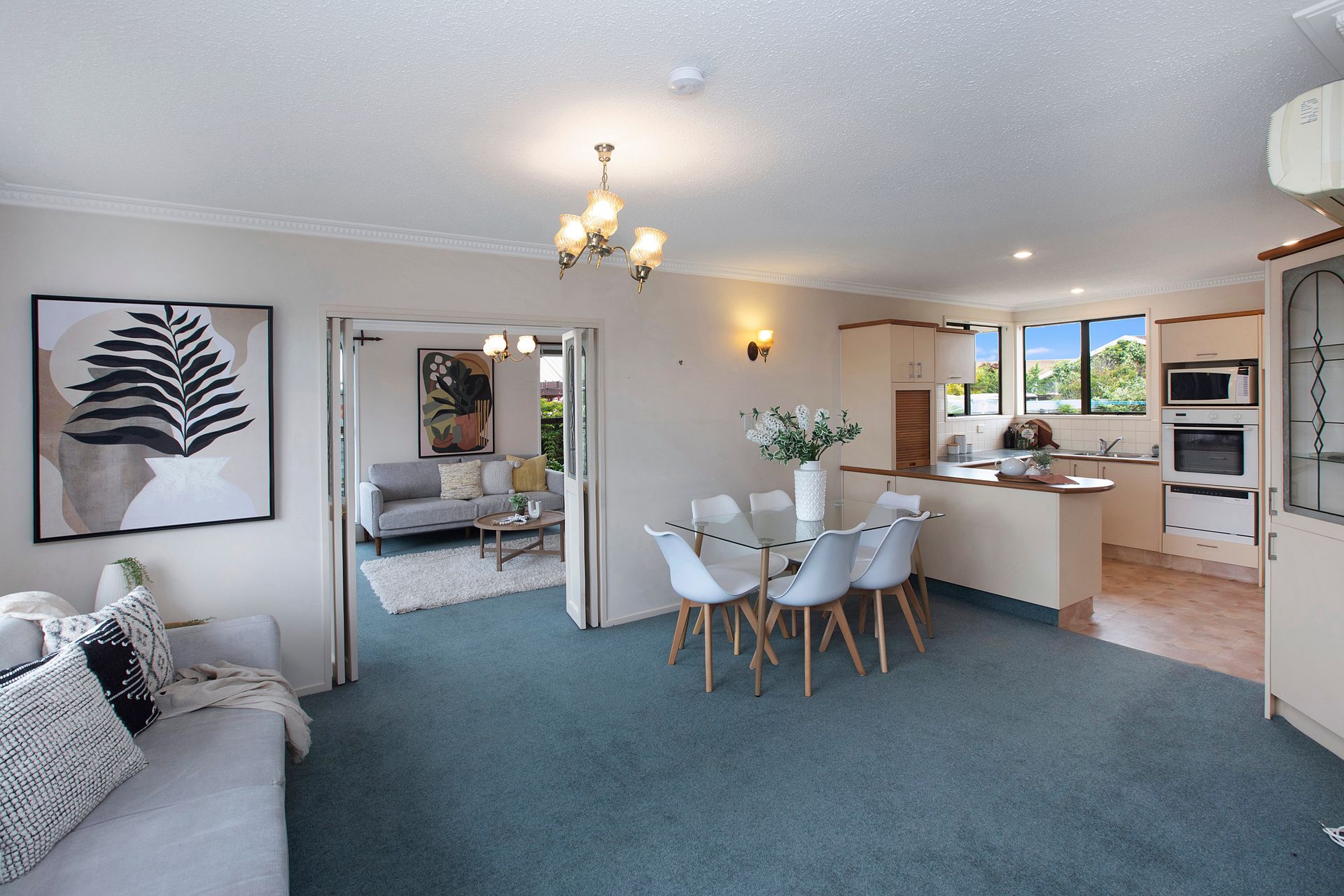 * Open plan kitchen/dining/family living area with heat pump