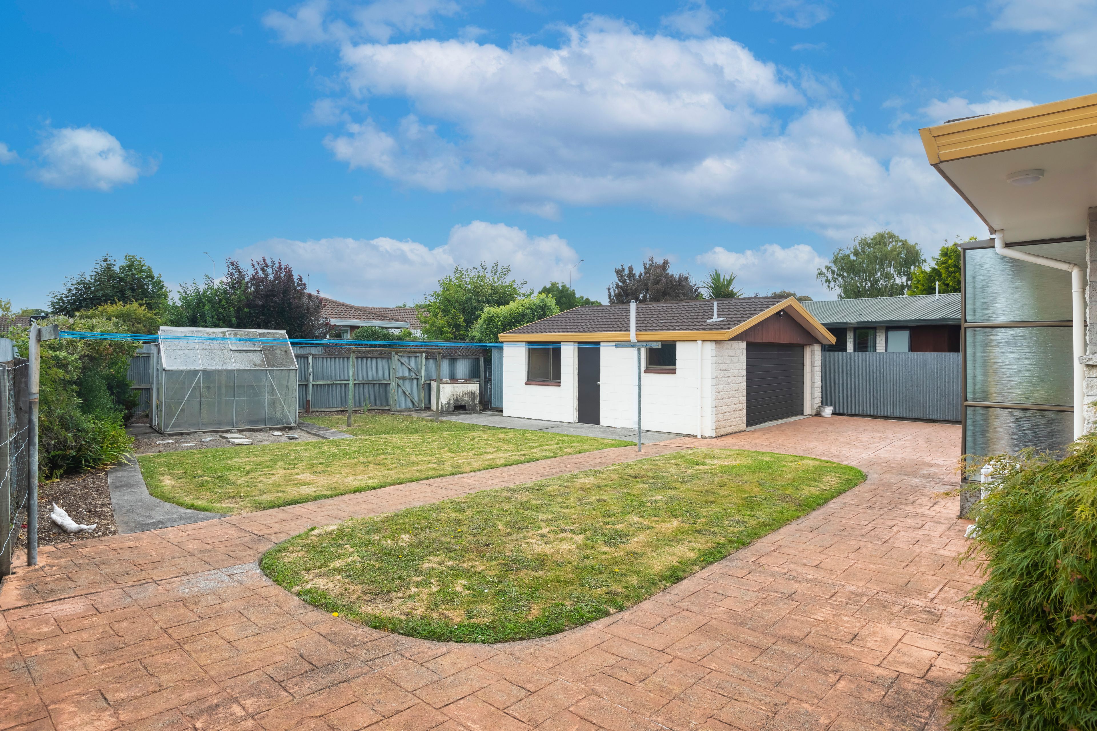 * Secure back yard with glasshouse, garden shed and plenty of space to play, relax or grow veges