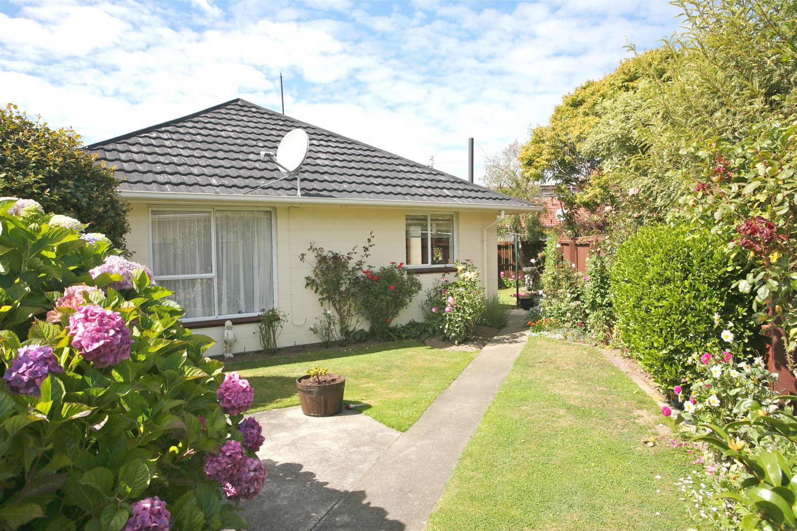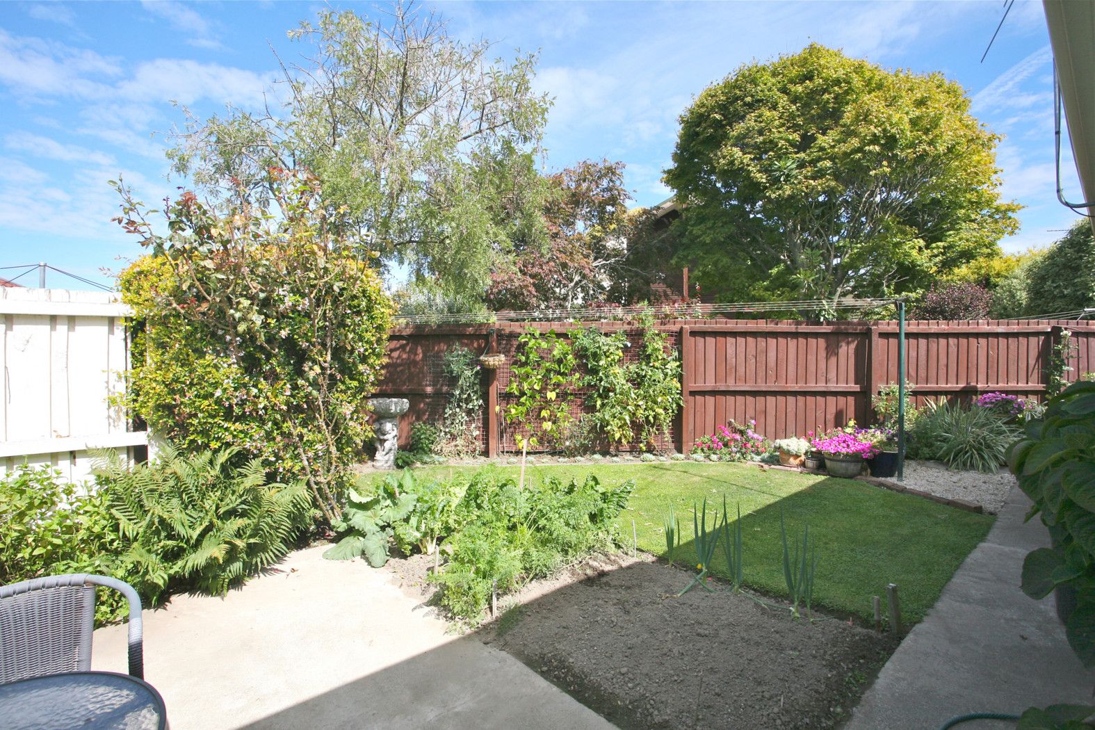 This single storey townhouse is set back off the road in an established cul-de-sac. Fully fenced and constructed of permanent materials, this lovely home is north facing, well insulated and secure. The kitchen and dining room are combined and open into the sun-drenched separate lounge. The kitchen looks out over the private west facing garden and a second garden at the back of the house contains a super vegetable patch. The two double bedrooms are roomy with built-in wardrobes. The bathroom has recently been modernised and comprises shower, toilet and vanity. There is a separate single garage which has an automatic door and is close to the front door of the home.