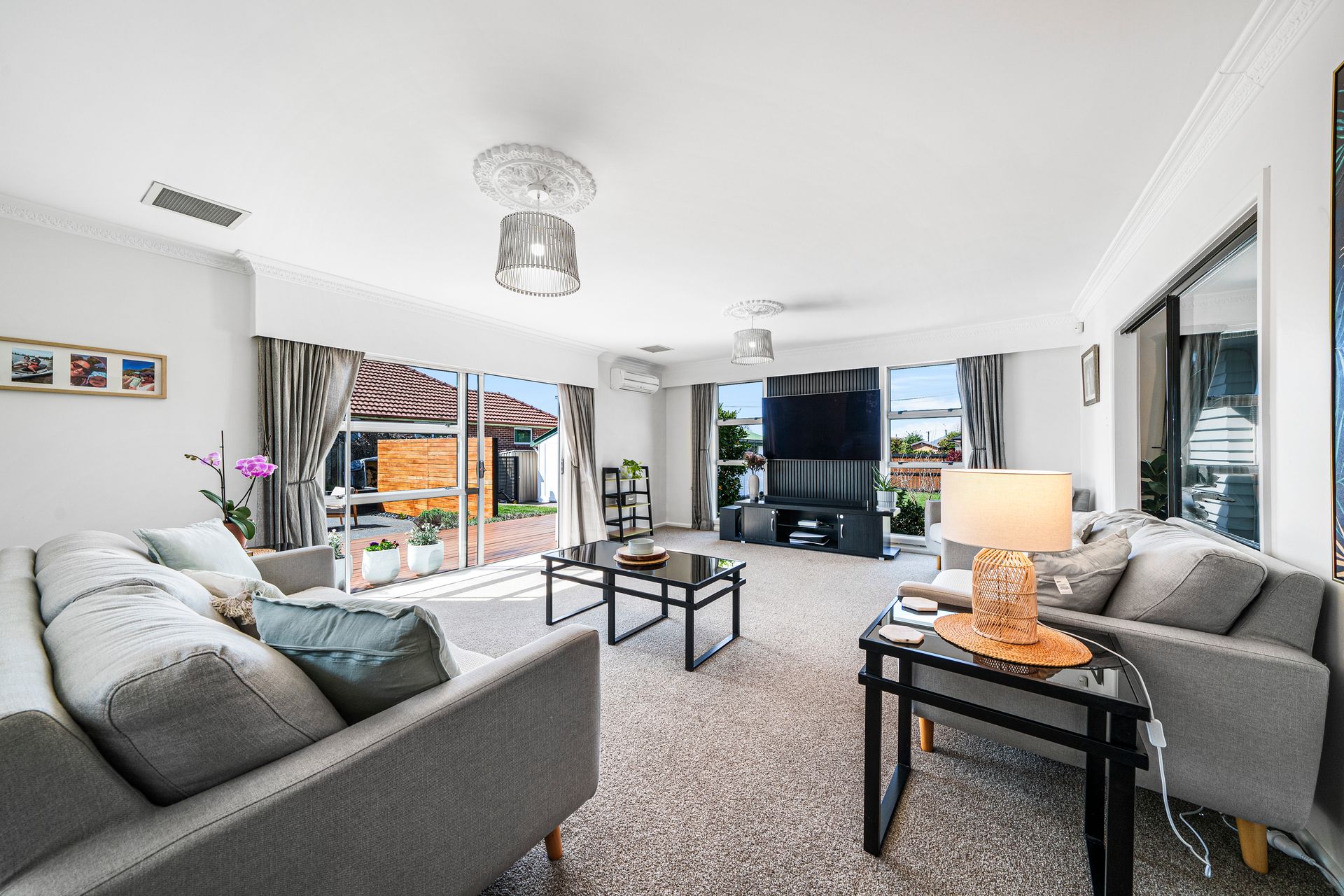 Step inside to a light-filled, spacious lounge complete with a heat pump and seamless access to the expansive north-facing deck - the perfect spot to gather with friends, unwind with family, or simply soak up the sunshine. The dining area connects effortlessly to the modernised kitchen, with a second heat pump providing year-round comfort. A separate laundry and toilet add practicality, while three comfortable bedrooms with ducted air conditioning, including a master with a walk-in wardrobe complete the picture of easy family living.
