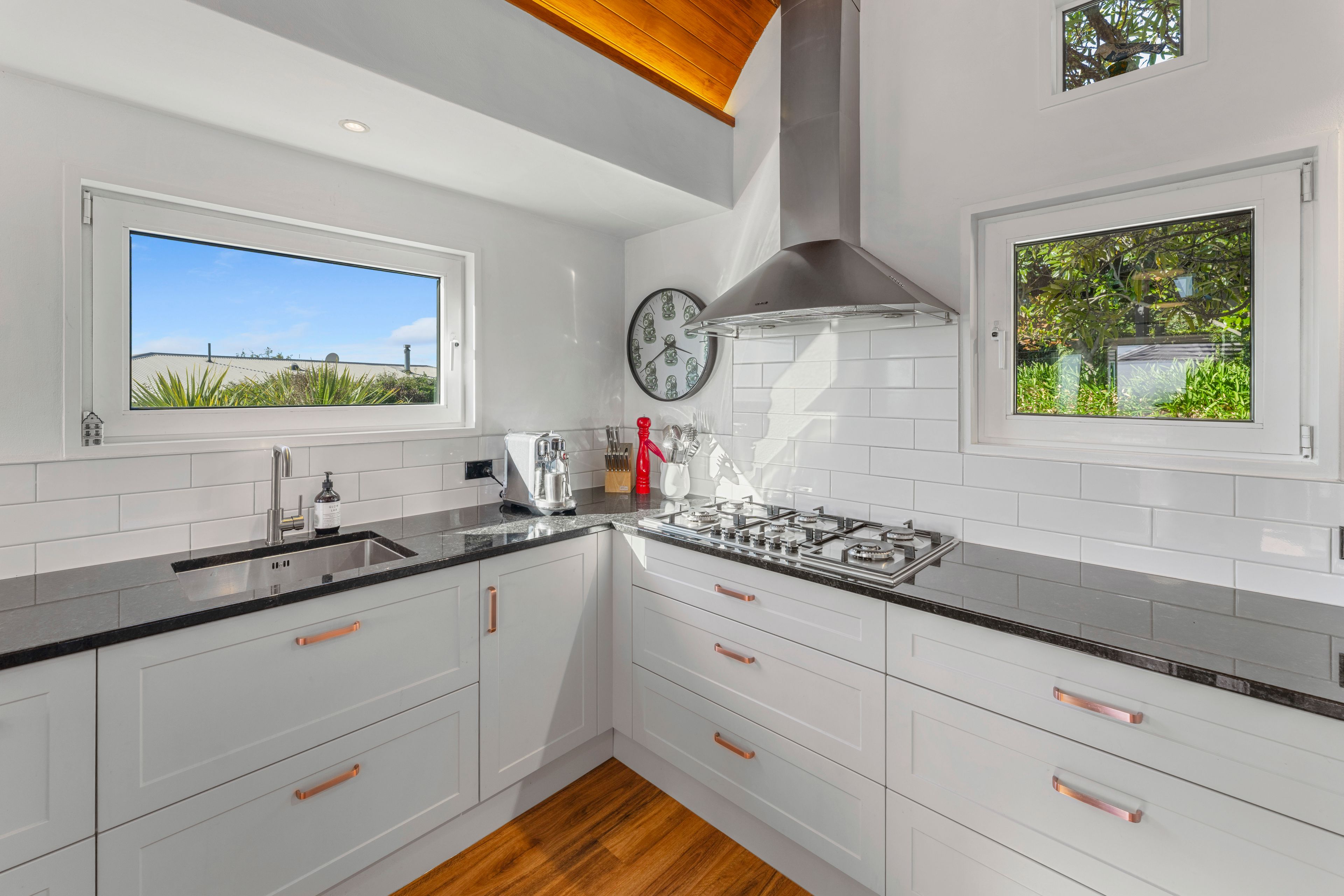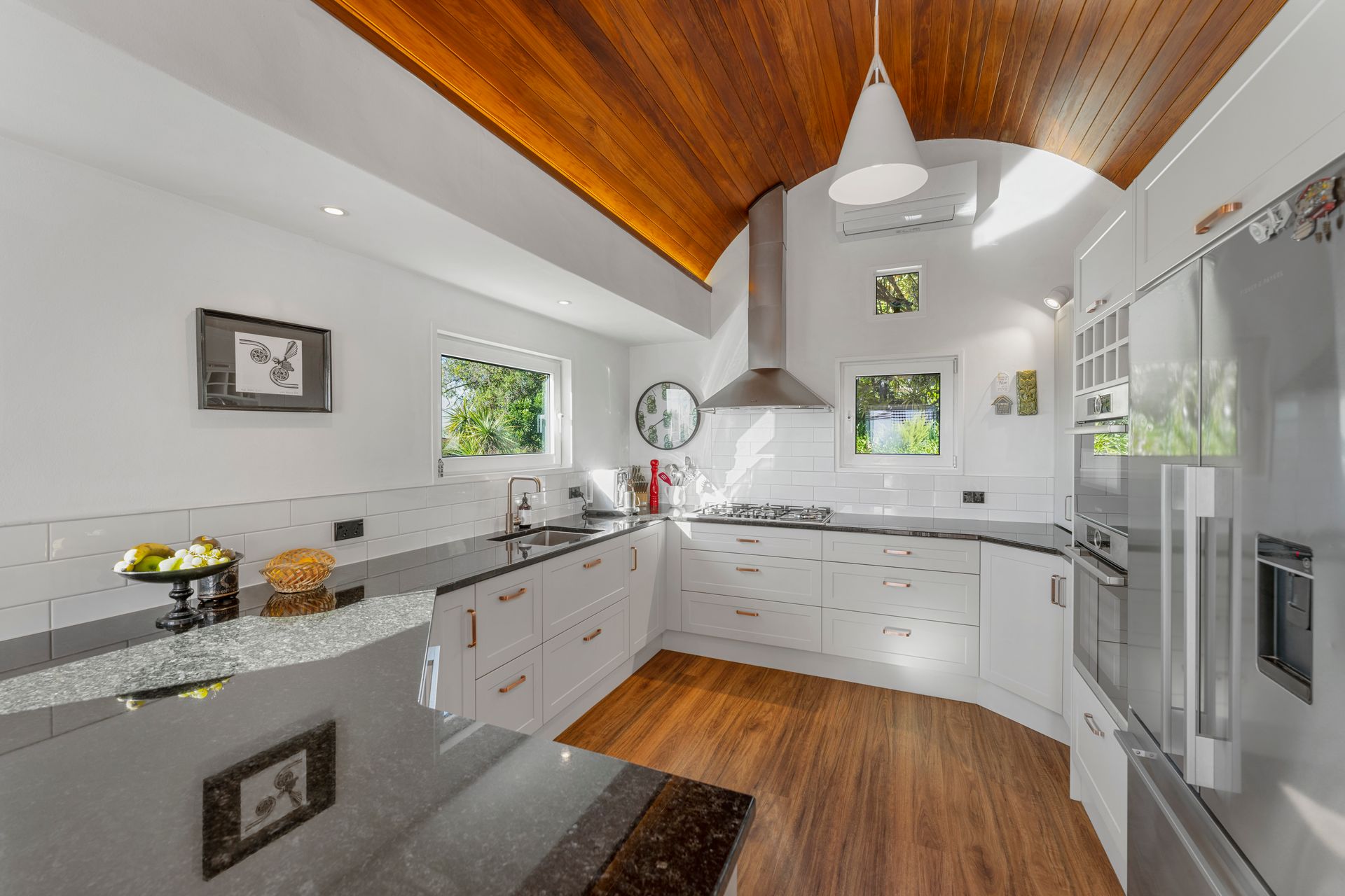 - The expansive Kitchen and living areas flow seamlessly to the upstairs deck.