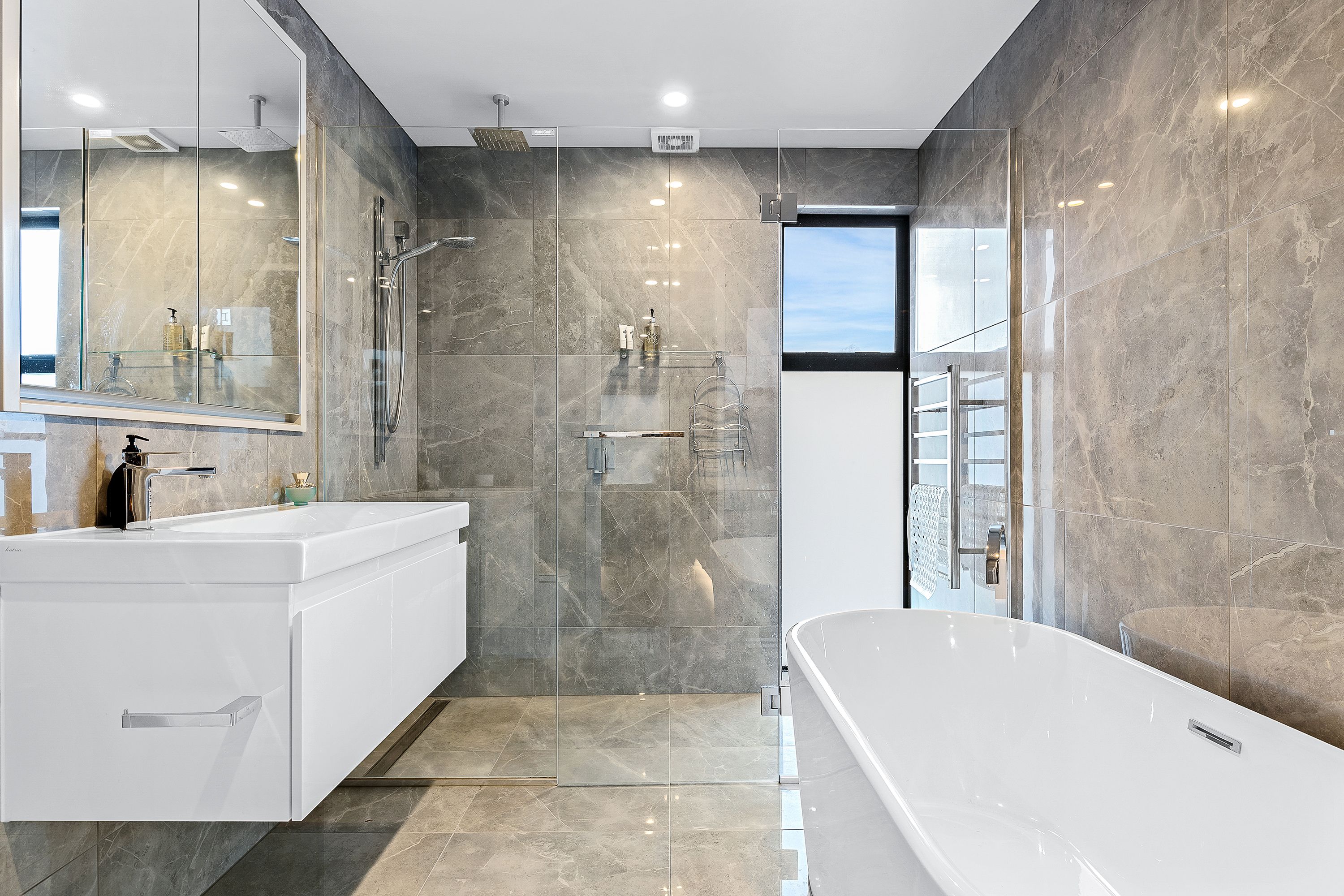 Ascending to the second floor the master bedroom suite reigns supreme with its own stylish ensuite and fantastic walk through wardrobe.