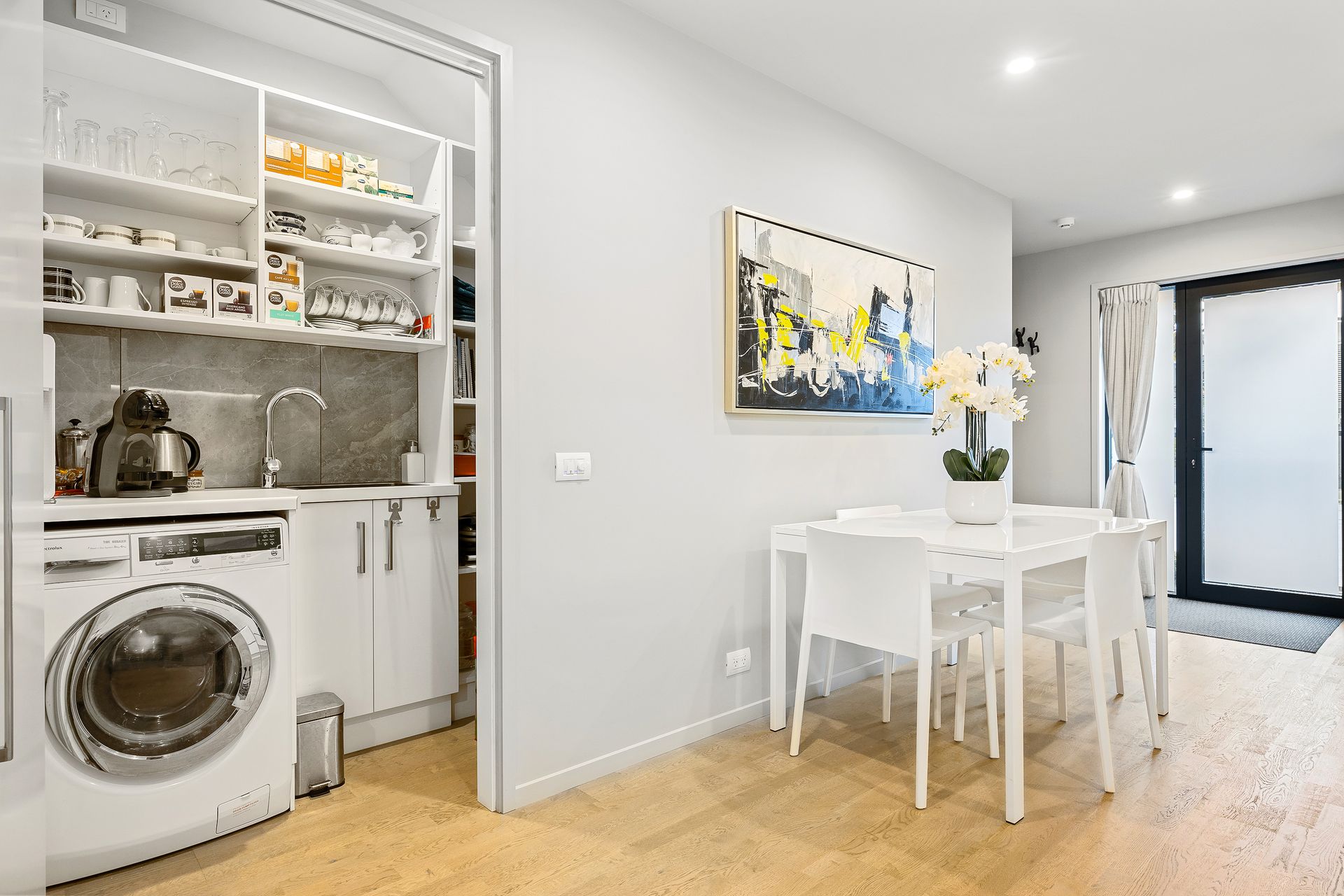 Double garaging leads you through to a private courtyard, then as you step into the apartment you'll be greeted by an air of sophistication and elegance. The open concept living area on the first floor boasts ample space for relaxation and entertainment whilst the living room seamlessly transitions into the dining area and a modern, fully equipped kitchen where sleek appliances and polished countertops invite culinary exploration.