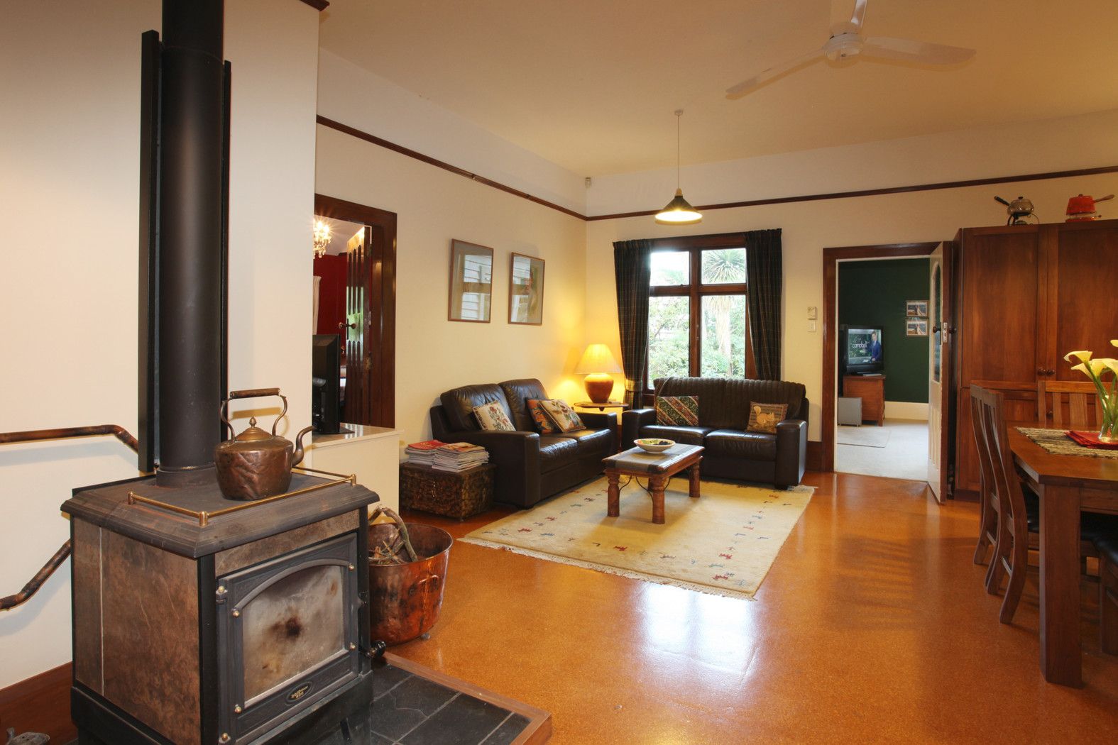- For warmth: heat pump, clean air approved log burner (with wet back), night store heater, ceiling and partial wall insulation.