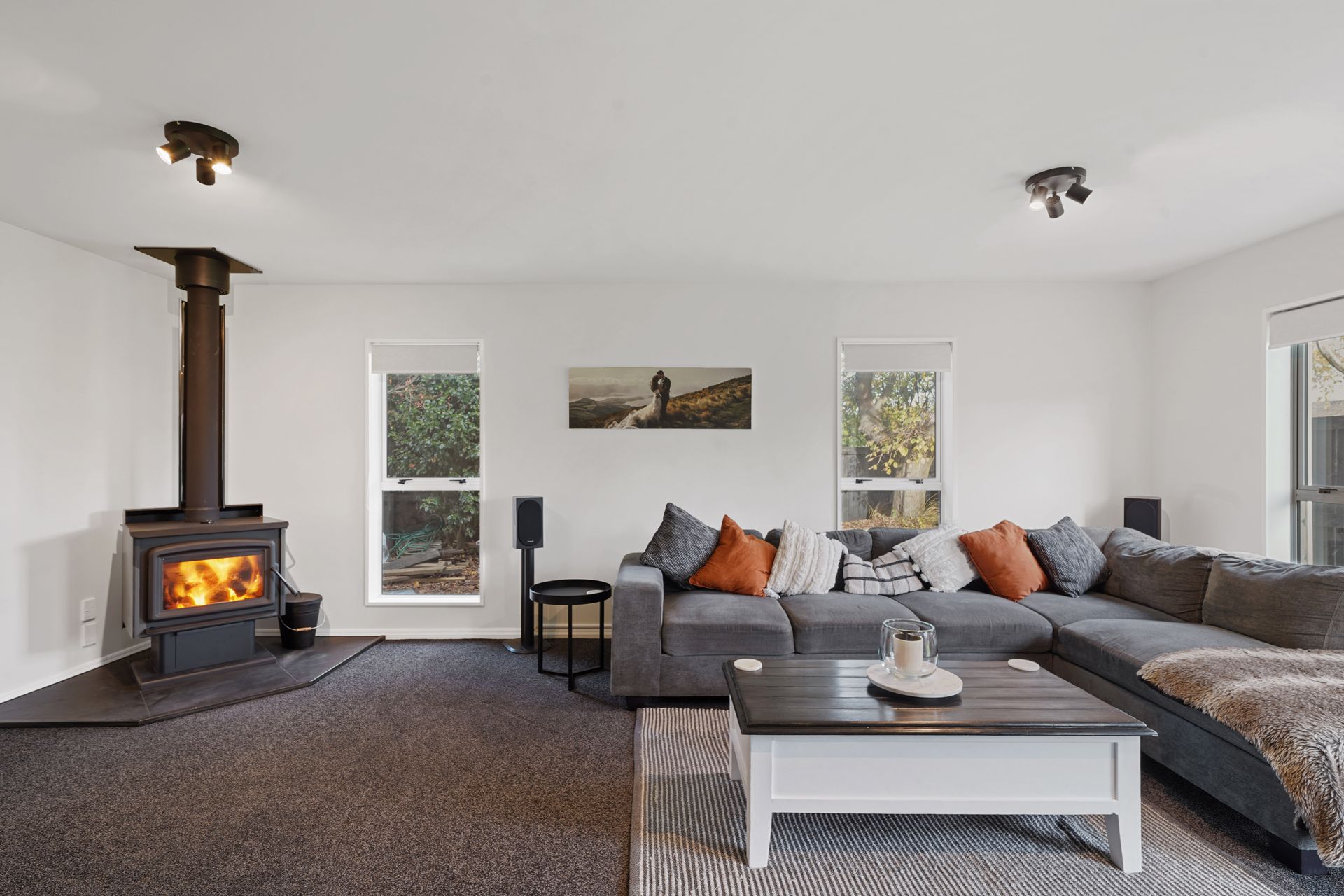 Crafted with attention to detail, this house showcases new carpet throughout, and a separate laundry room, adding another layer of convenience. The house is a haven of warmth during cold nights, heated by a log burner fire and two heat pumps to ensure year-round comfort.