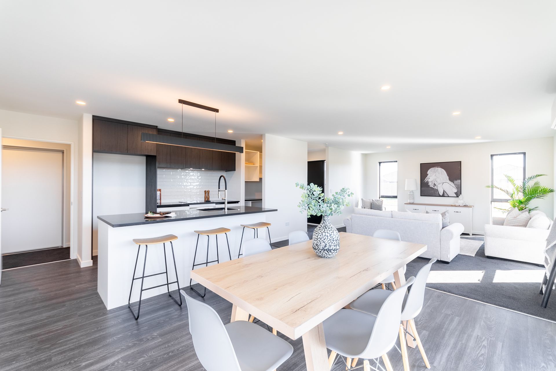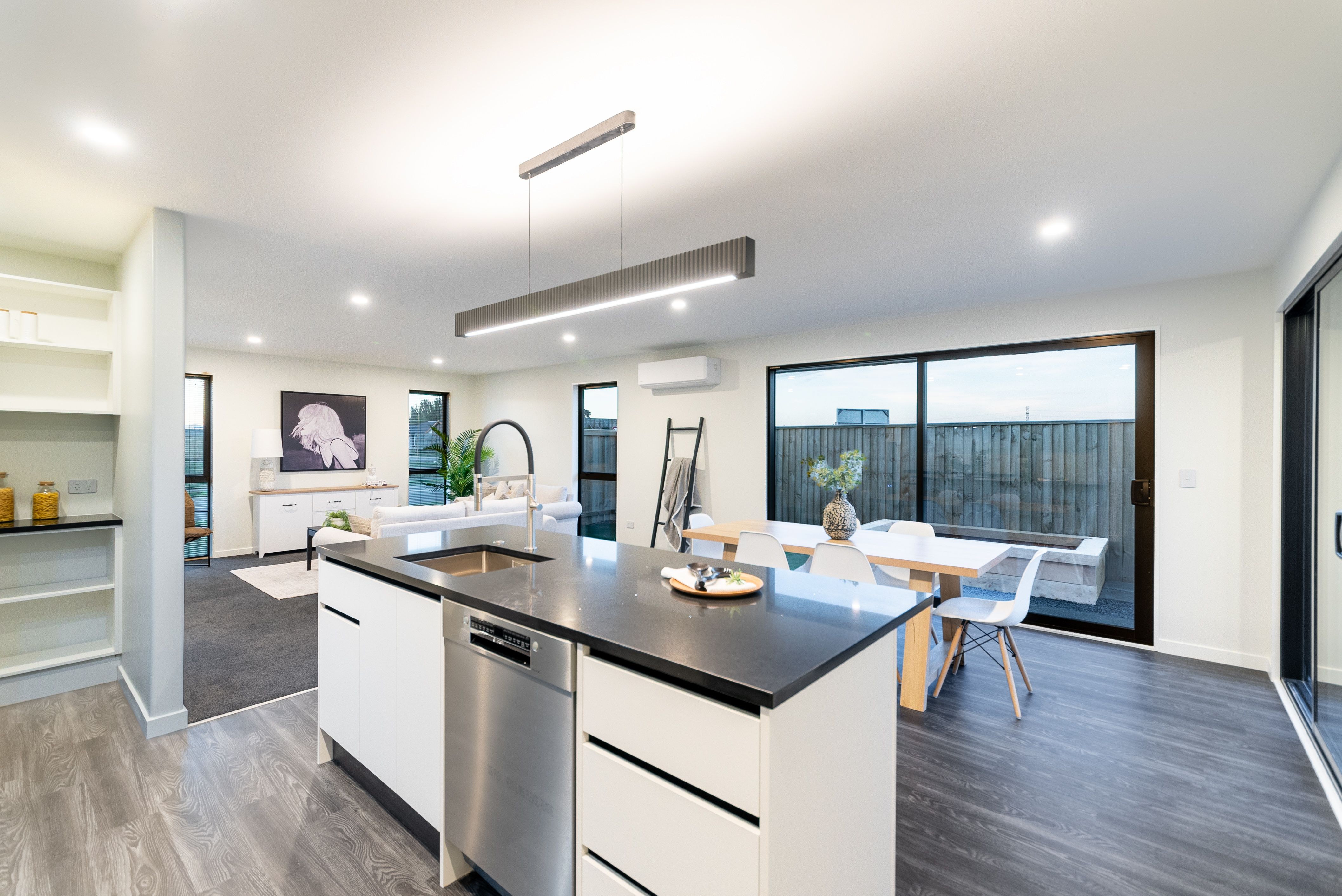 Relax or entertain in the light and bright open plan living area, overlooked by the contemporary designer kitchen complete with engineered stone benchtops and walk-in pantry. Move effortlessly outdoors to the easy-care yard through two large sliding doors. To top it all off is the double car garage with a laundry nook.