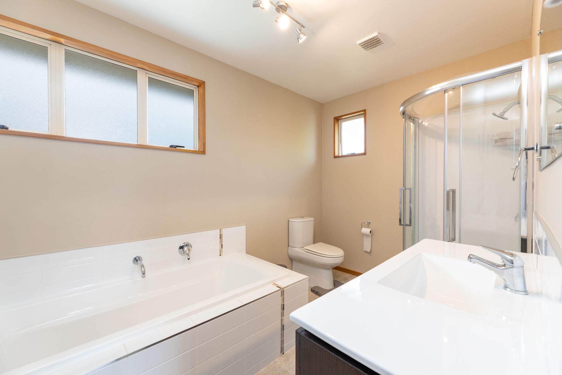 - Second bathroom downstairs has been cleverly included into the laundry area with built in cabinetry