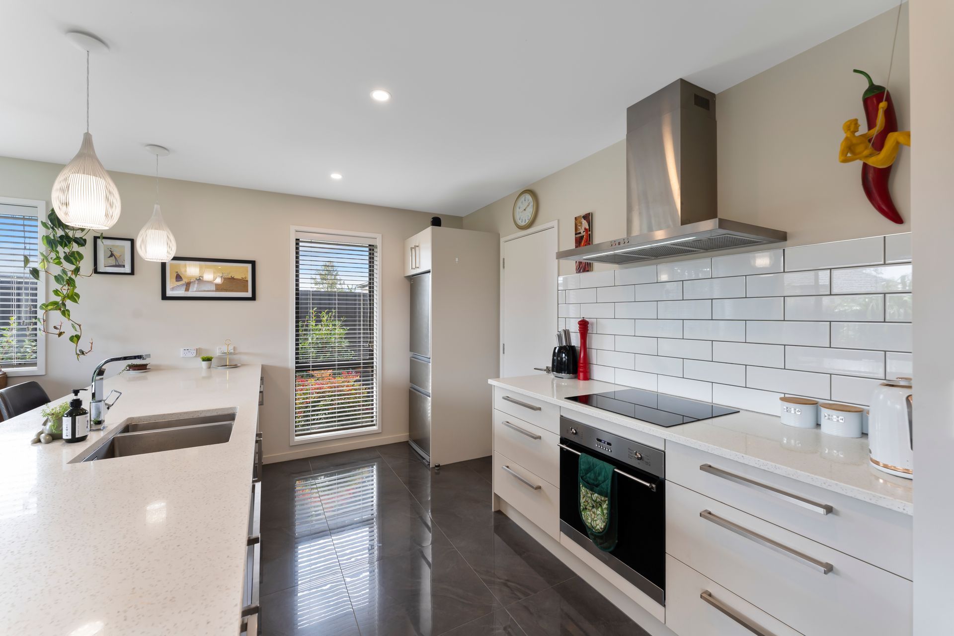 The spacious, well appointed kitchen will appeal to the chef of the family with stone bench tops, a walk in pantry and quality appliances. It's complemented by an open plan dining and living area with ranch slider access to a private, well landscaped backyard overlooking the neighbouring green space.