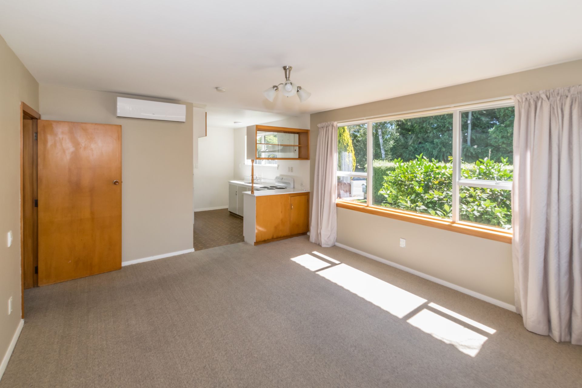 Open plan kitchen, dining, living with a heat pump.