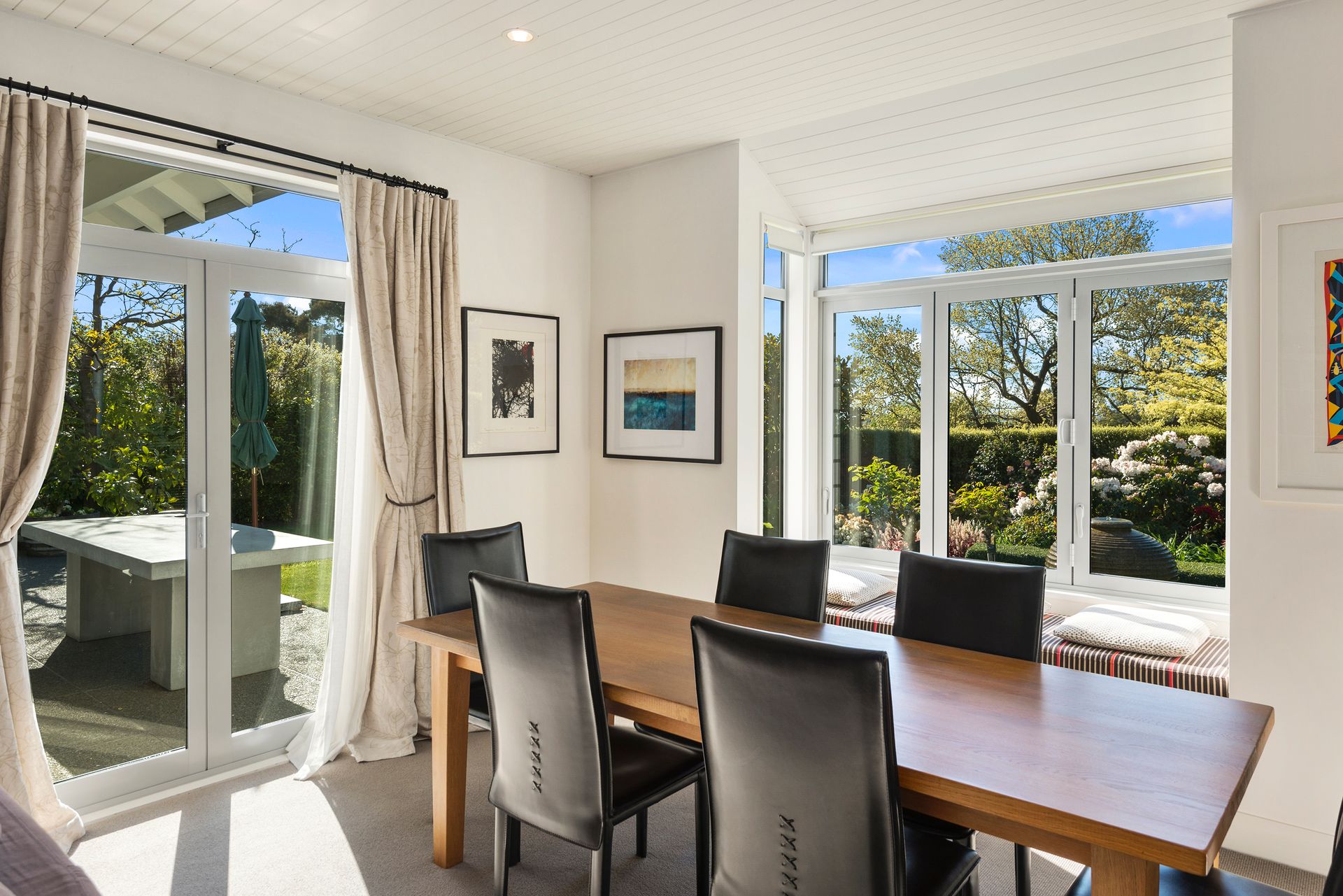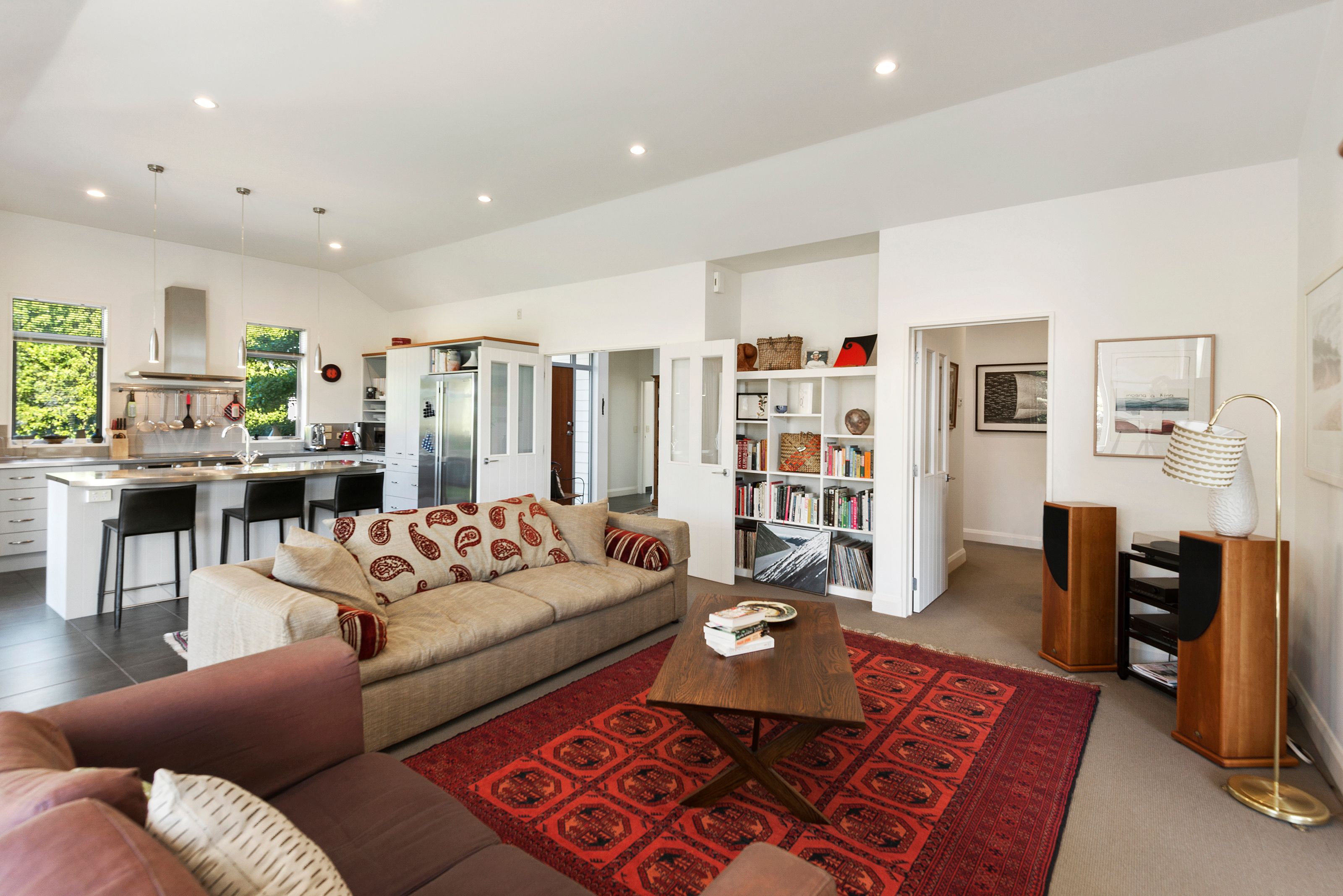The house welcomes you with its harmonious balance of light, comfort and space as soon as you step in the door. The cleverly designed open plan kitchen, living, dining is generously sized, bathed in all day sun and kept warm in winter with under-tile heating. Perfect for easy entertaining, the kitchen has two side-by-side ovens a large cook-top and plenty of bench space.