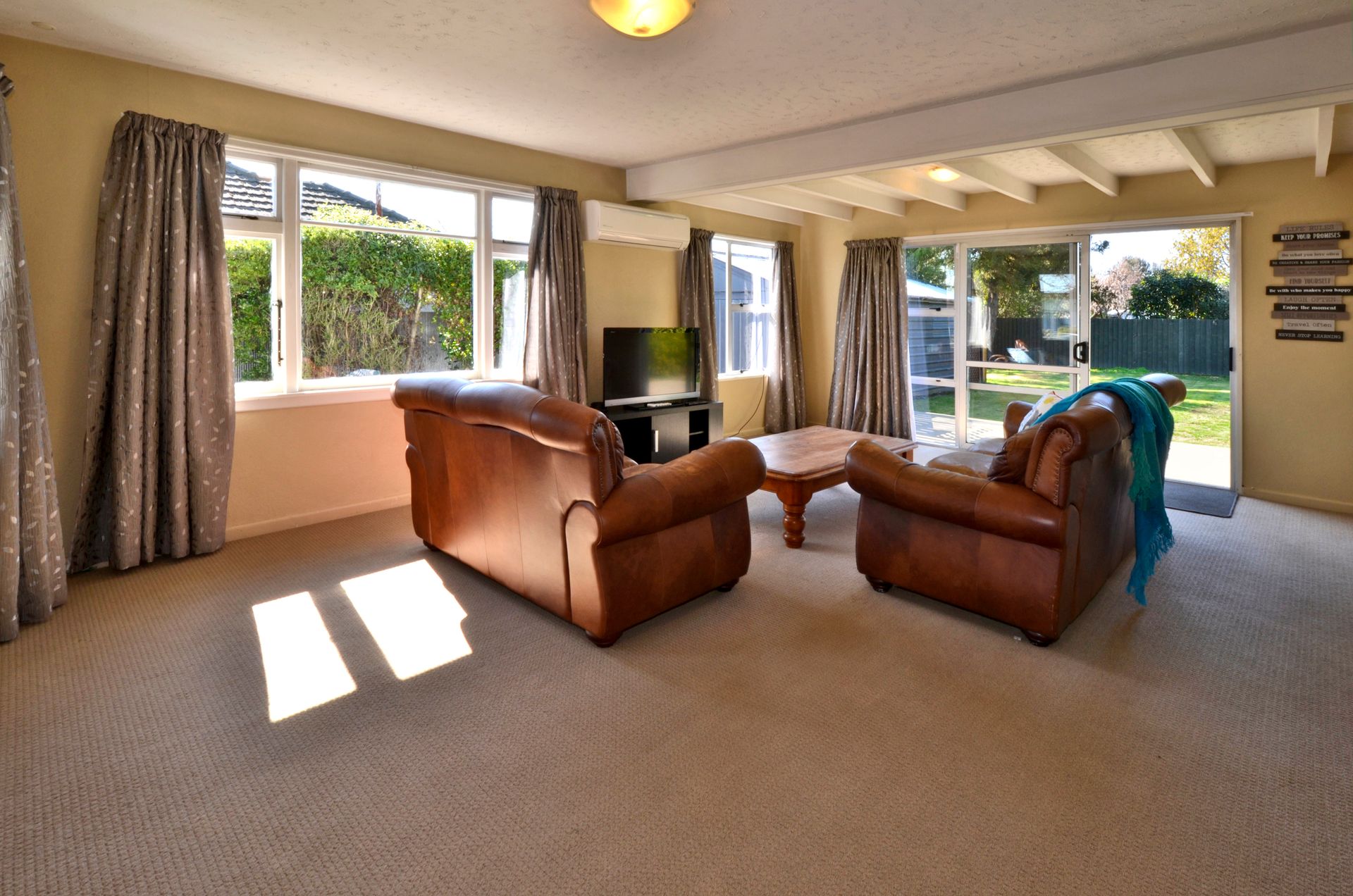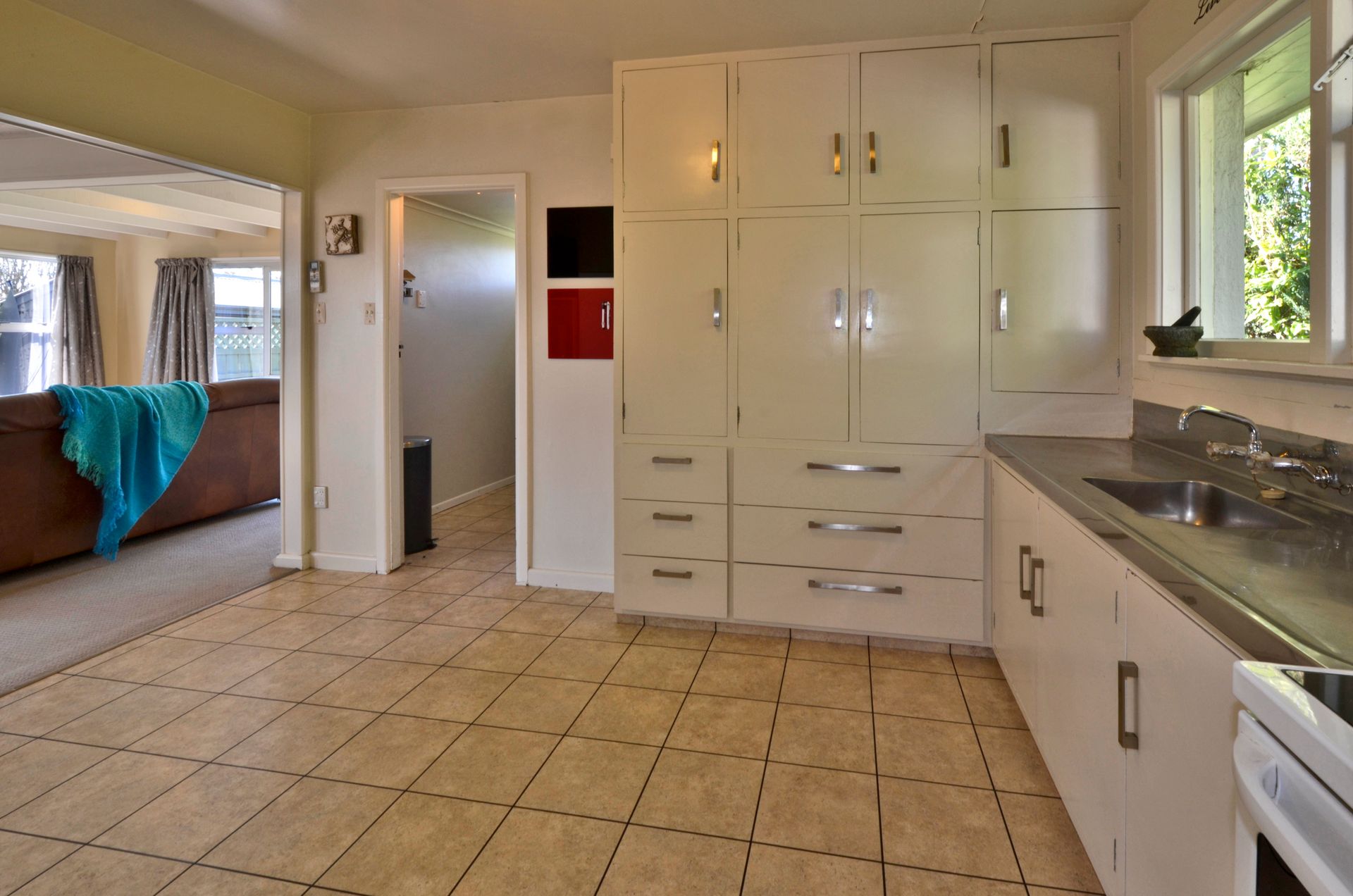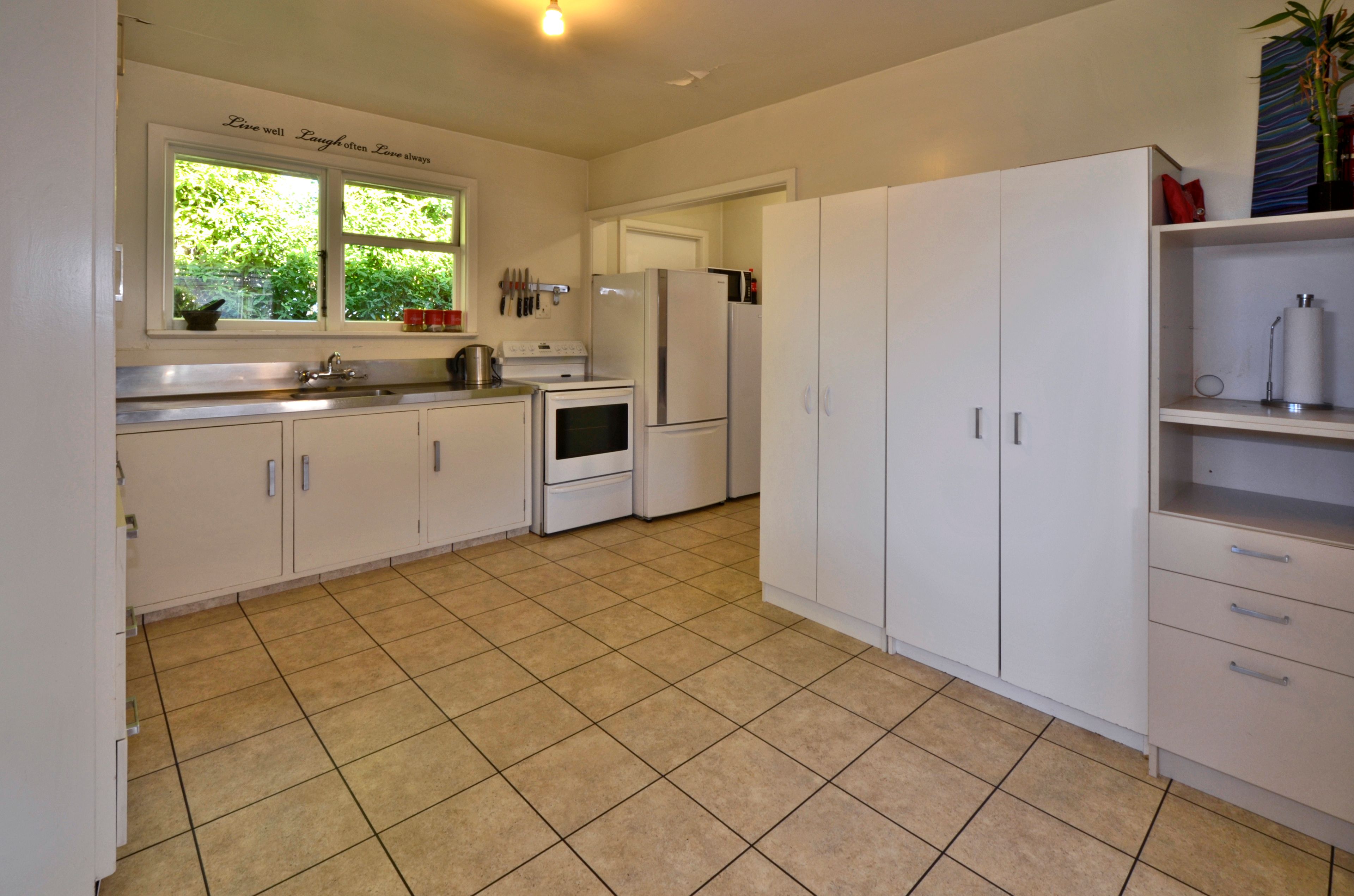 The spacious living area adjoins the large kitchen in an open, flowing layout, which also opens through ranch sliders to the back patio and garden. The heart of the home is kept warm by a central heat pump and enjoys both morning and afternoon sun. Adjacent to the kitchen there are two rooms, one of which is currently being used as a roomy separate laundry, while the other could be a dining alcove, a huge walk-in pantry or convert to the laundry and reassign the other room. One thing is for sure, it's always good to have options and there are plenty here especially when you have the EQC money transferred to you too!