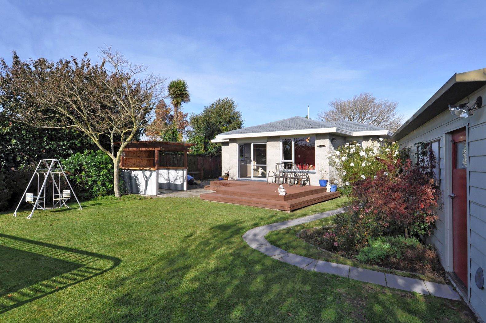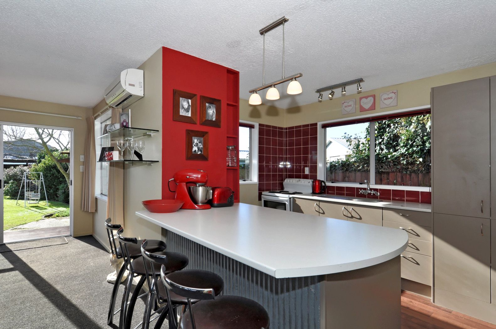 What a brilliant family home. Three bedrooms, could easily be four, new carpet, heat pump, modern kitchen with open plan living, flowing out to a large entertainers decked area. Just ideal for gatherings and parties, even a built-in bar for serving beverages.
