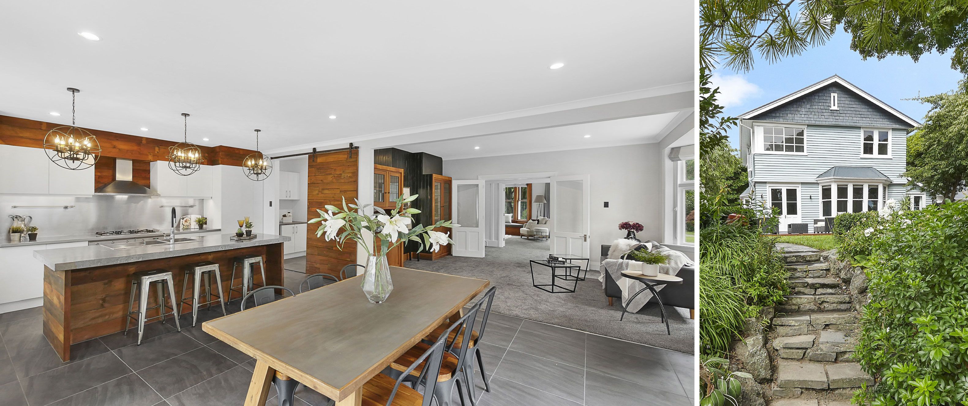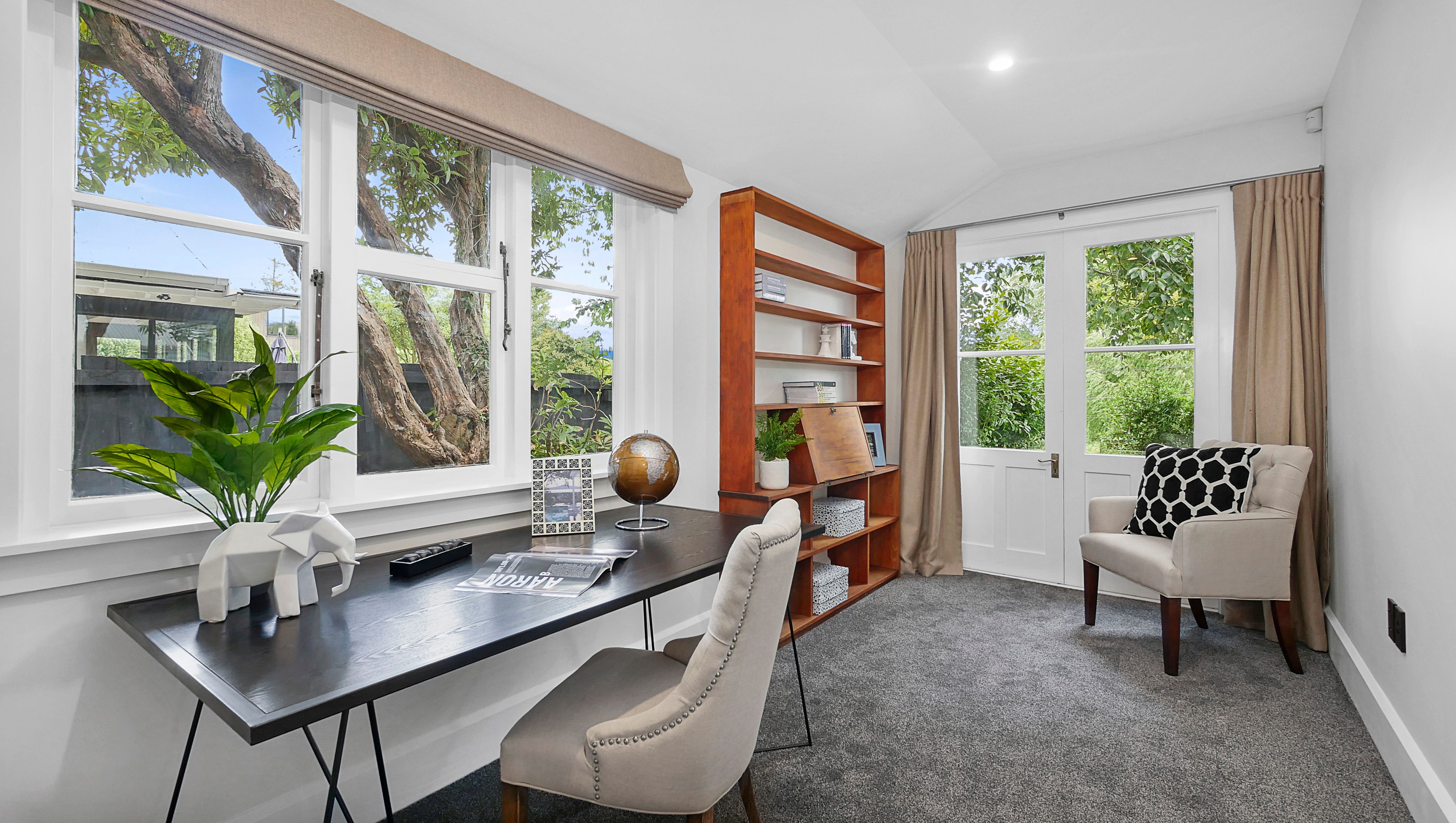 Buyer enquiry over $995,000. This majestic home has been impeccably modernised and sits on an elevated position, overlooking the river in a sought-after location and is fully insured. Striking timber elements throughout the home compliment the crisp white palette and the David Trubridge designed light is magic in the stairway. Contemporary kitchen with feature Rimu sarking scullery door, gas water and hob, polished concrete benchtop, rustic innovative lighting. Generous living spaces with French doors to the wrap around decking areas 4 double bedrooms (ensuite), plus a library or 5th bedroom with french doors to the deck. (powder room next door) Consented Sleep-out with shower and toilet (6th bedroom). 4 toilets in all. Plentiful storage throughout the home and in the attic