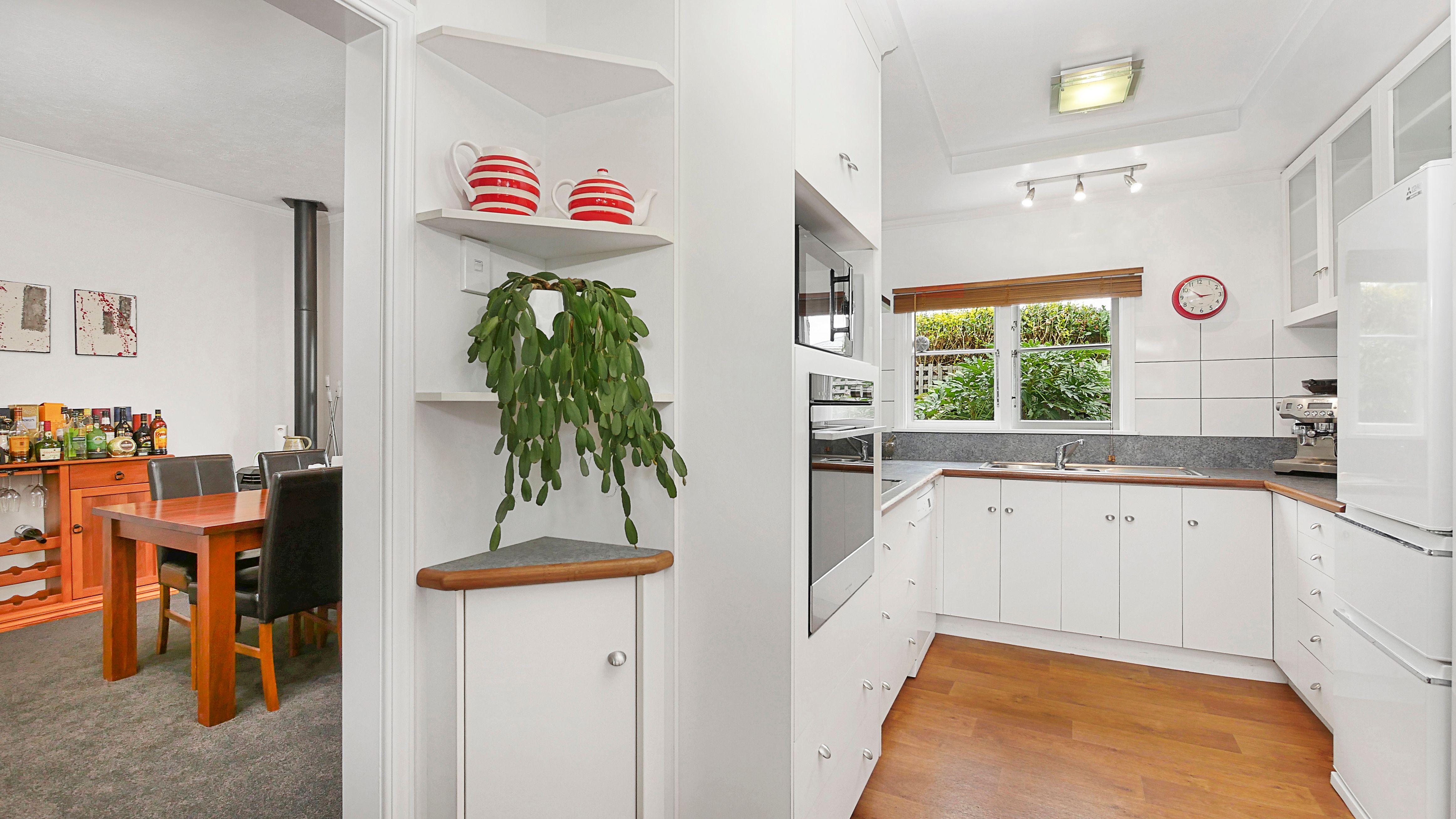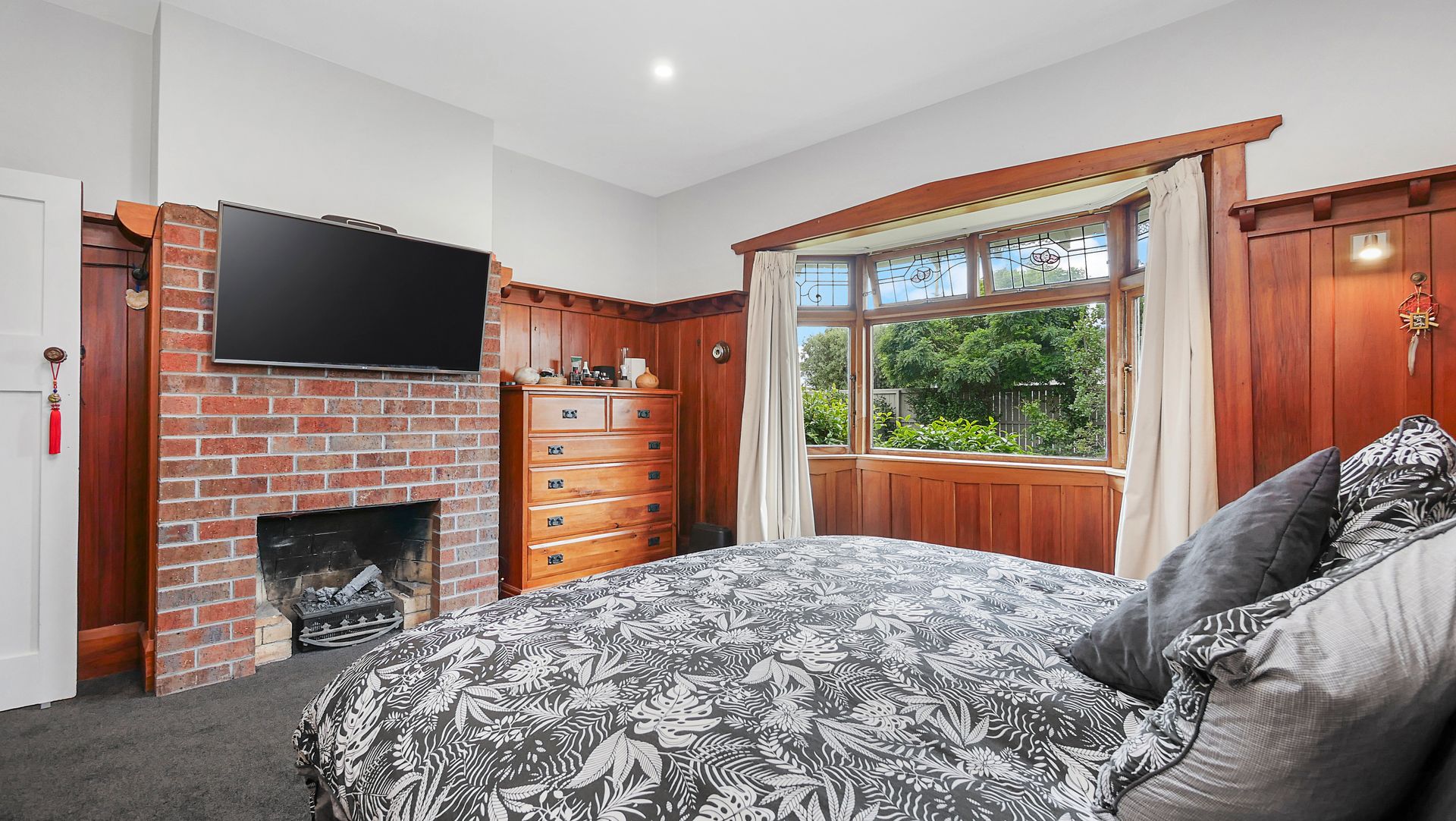 Traditional facades yield to modern tones and on-trend chattels through interconnected kitchen, dining and lounging areas while bedrooms retain period-consistent timber panelling, bay windows with lead-glass insets in the master and guest bedroom. Kitchen and bathroom would easily hold their own for quality and user-friendly functionality. Heating and cooling are well catered for with two heatpumps and a gas fire. The benefit of a separate laundry and second toilet.