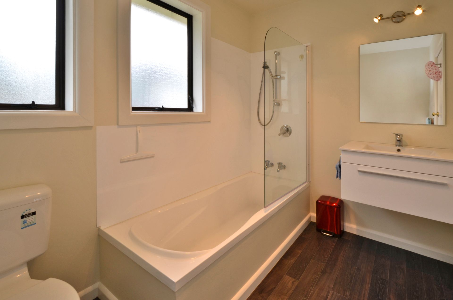 Modern bathroom. Separate living room. Open dining and kitchen including pantry. Aluminium joinery and heat pump. Separate laundry.
