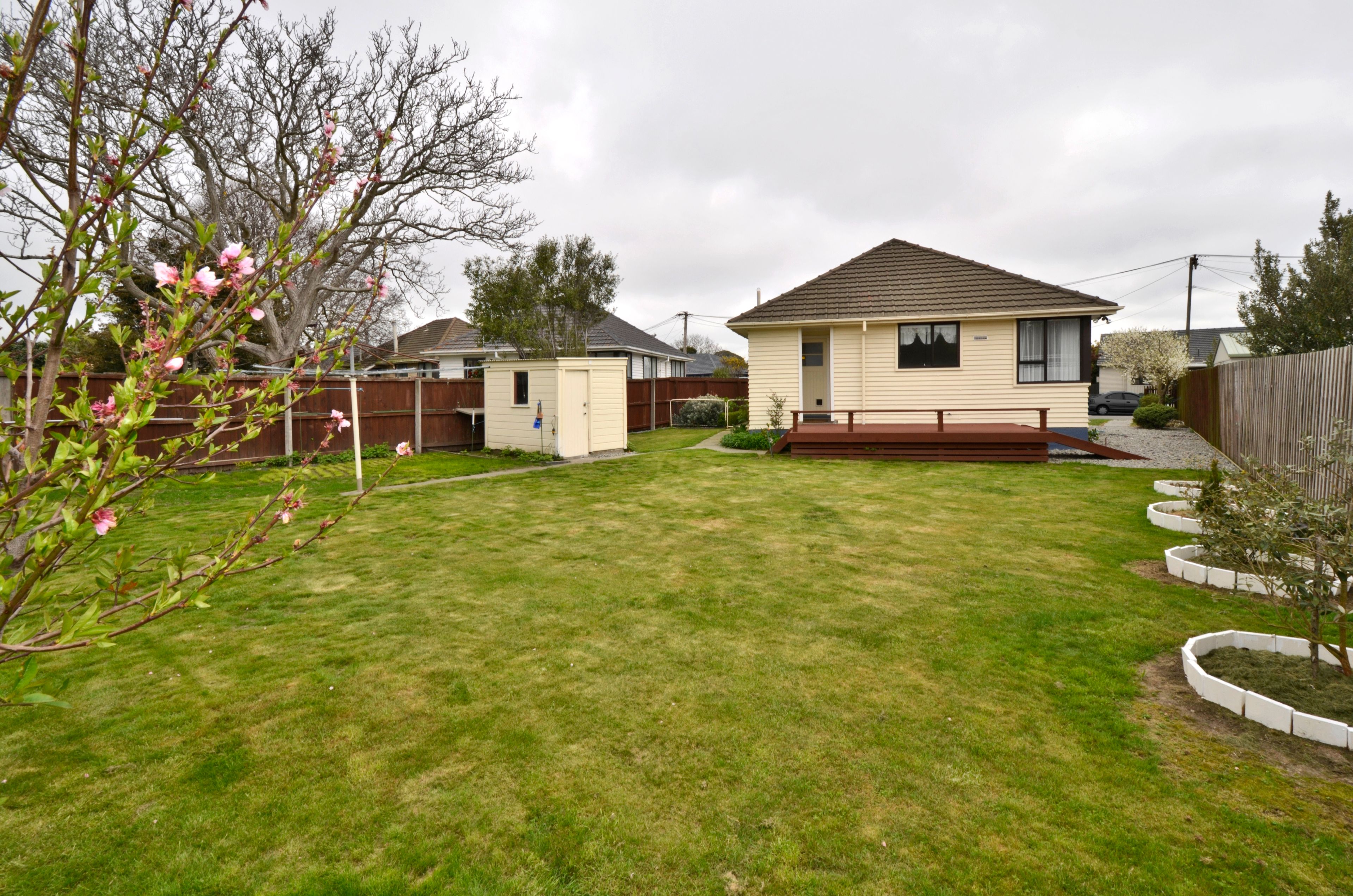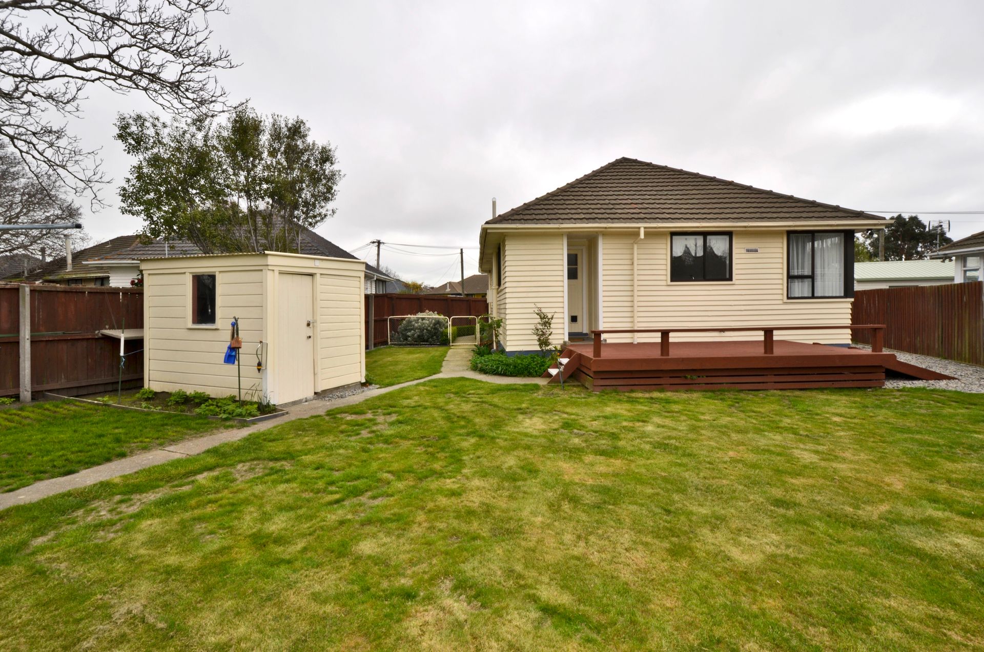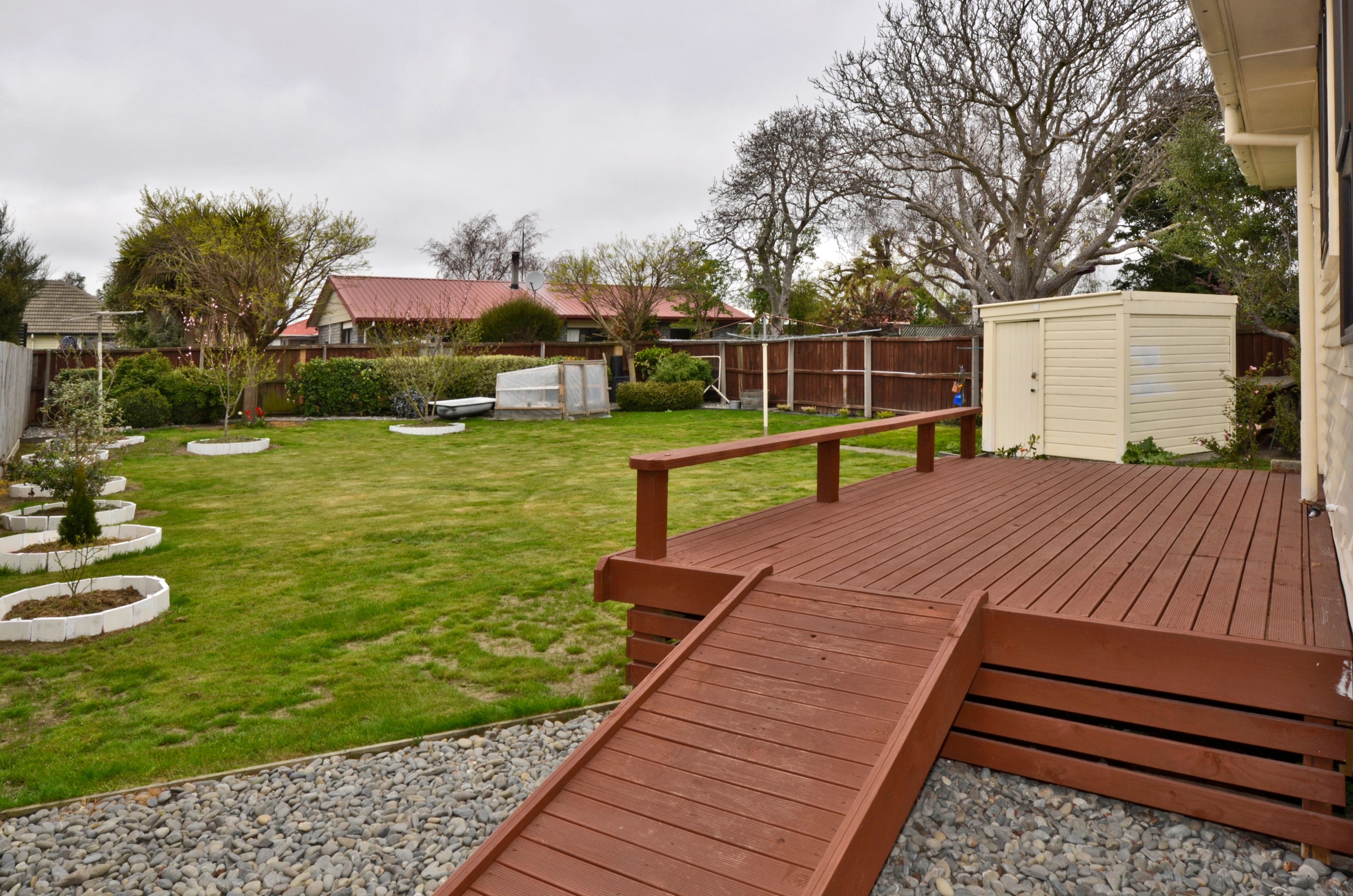 Private backyard TC1, 628m2 section, garden shed. Off-street parking.